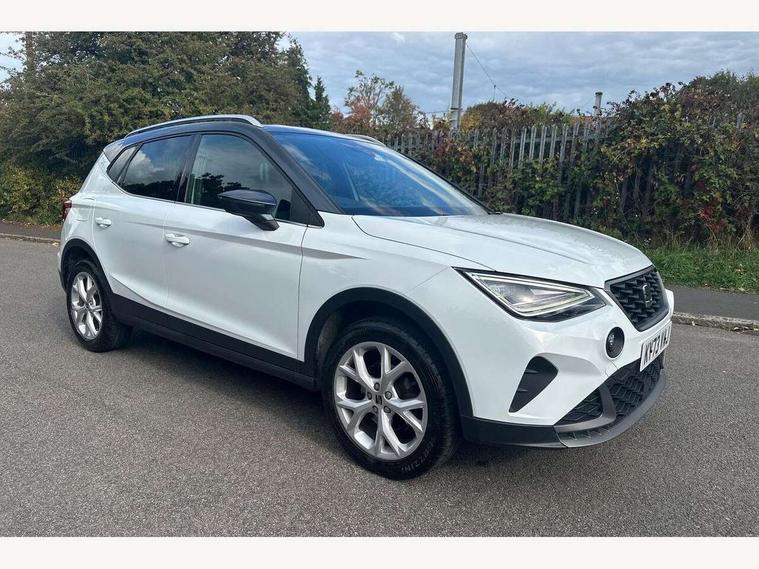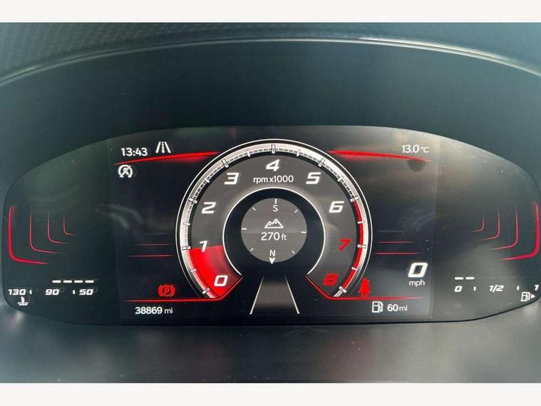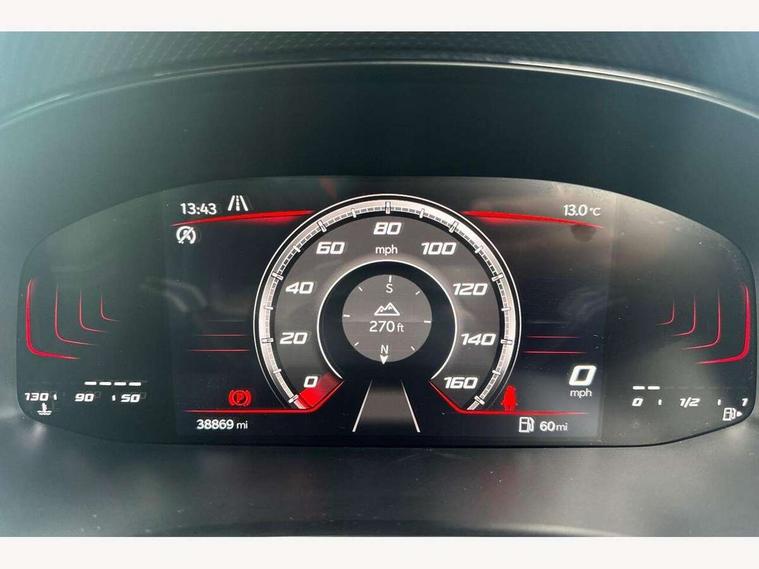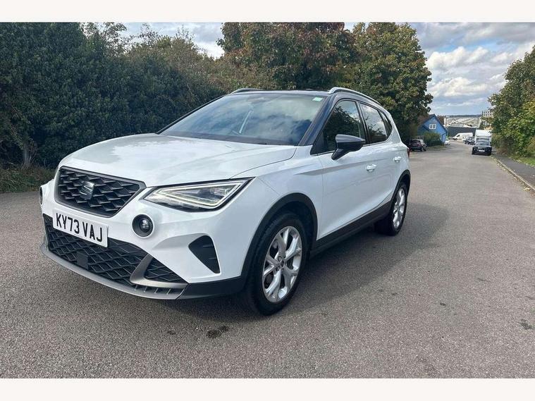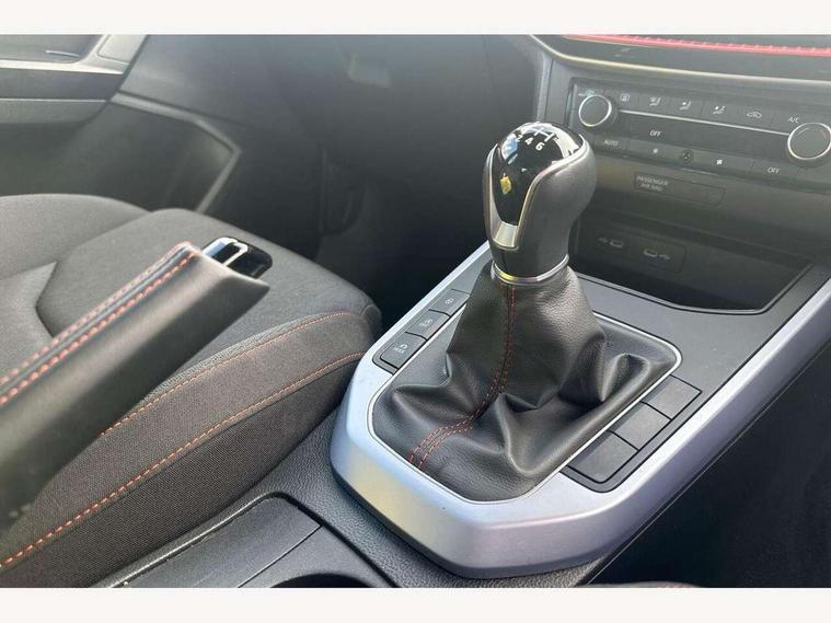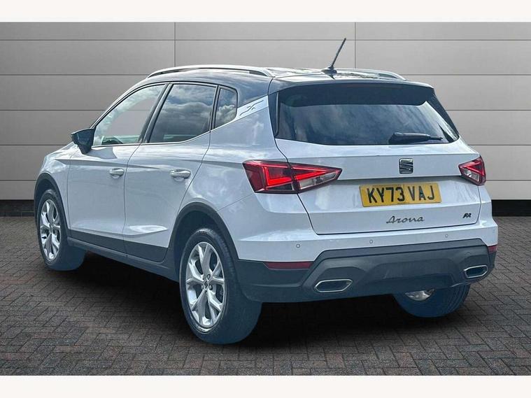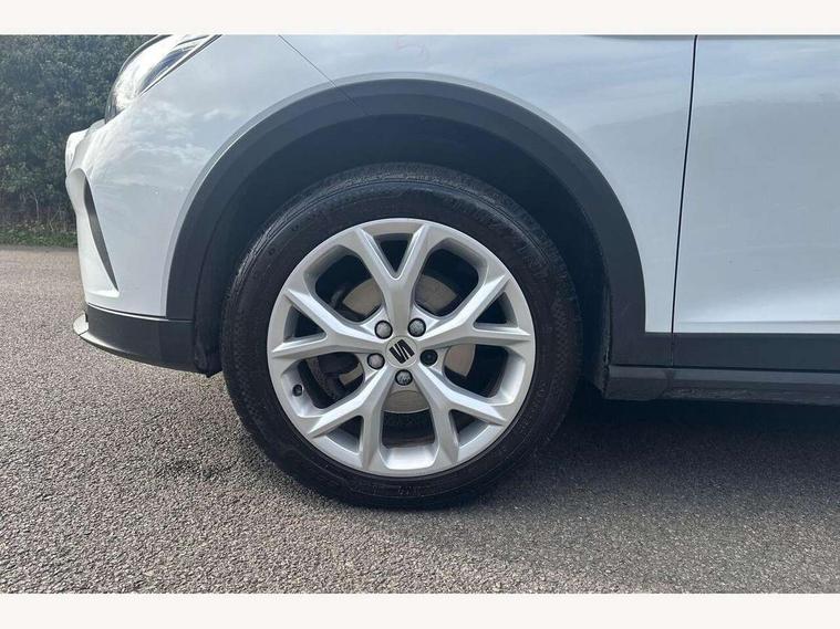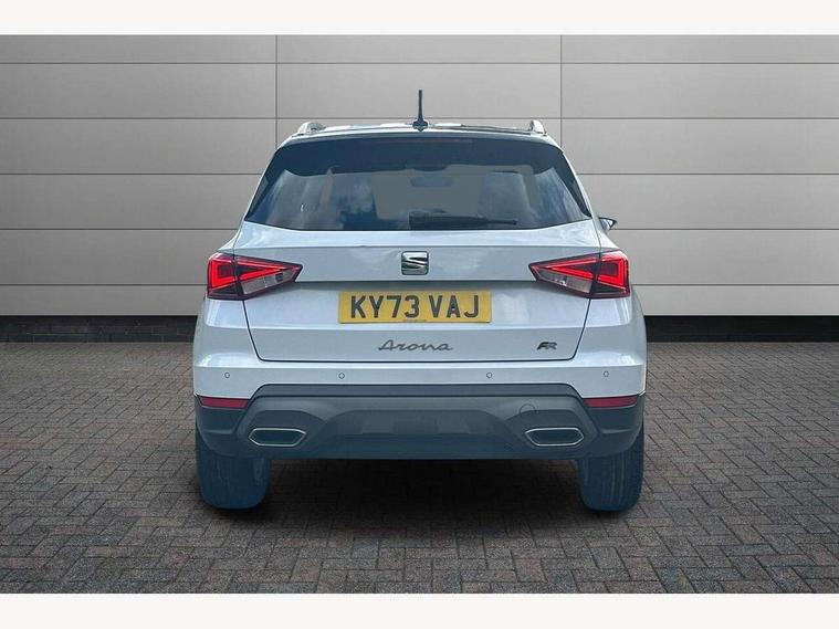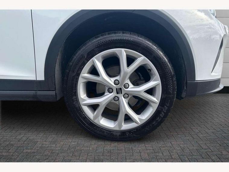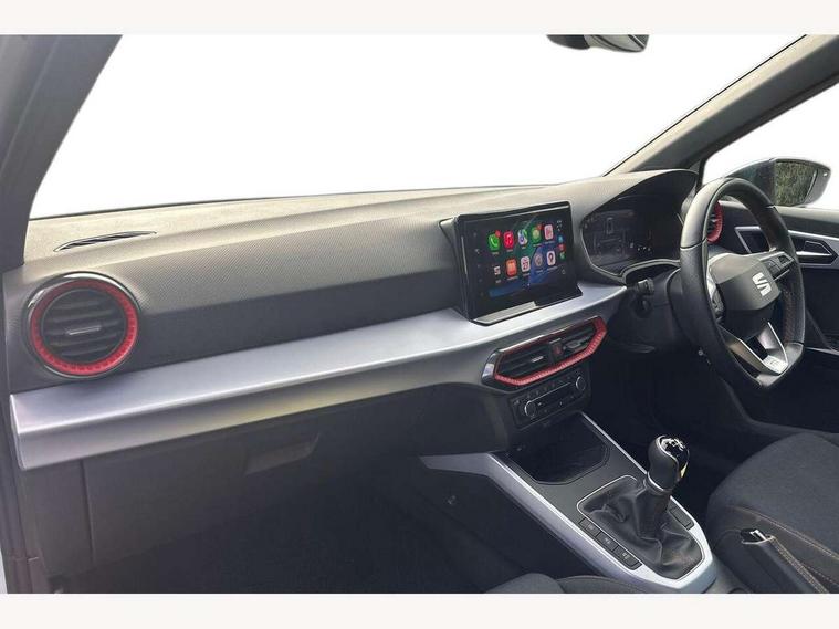 'Lights On' Reminder warning buzzer, 8" Digital cockpit, Digital clock, E-call, Electric speed sensitive power steering, Full Link Smartphone Integration with Mirror Link, Apple Car Play, Google Android Auto with USB Type C cable for Apple and Android compatibility, Lane keeping system, Low fuel warning light, Outside temperature display, Rear parking sensor, RPM counter, Seat connect with safety, service, remote and online, SEAT Drive profile - Four different models normal-sport-eco-individual, steering response, throttle response, Trip computer, Wireless phone charger, 9.2" colour touchscreen with navigation system, voice control and USB port (type c), Bluetooth interface for hands free and audio streaming, DAB digital radio and AM/FM radio, Steering wheel mounted audio controls, Anti theft roof antenna, Auto dimming interior rear view mirror, Automatic activation of hazard warning lights, Body coloured bumpers, Body coloured door handle inserts, Chrome roof rails and window surrounds, Dark tinted rear windows, Electric front/rear windows, Electrically adjustable, heated and folding door mirrors, Front fog lights with cornering function and rear fog light, FULL LED automatic headlights with dynamic headlight range control, coming and leaving home, LED daytime running lights, LED rear tail lights and licence plate lights, Protective side mouldings, Rain sensing wipers, Rear side wing doors, Rear spoiler, Rear window wash/wipe, Roof colour door mirrors, Third brake light, Twin exhaust pipe styling hidden exhaust pipe, Visible VIN plate, Windshield wiper with intermittent control and potentiometer, 2 cupholders, 3 seat bench in 2nd row, 60/40 split folding rear seat, Aircare filter, Black interior roof, Cloth upholstery, Double boot floor, Driver sunvisor with covered mirror + card holder, Dual zone climate control, Front courtesy light with front reading lights, Front sport seats, Gear shift indicator, Height adjustable front seats, Height/reach adjustable steering column, Illuminated boot, Instrument lighting with brightness control, Interior ambient lighting, Interior light in footwell, central console and door panel, ISOFIX points in outer rear seats with top tether anchorage points, Passenger sunvisor with vanity mirror, Perforated flat bottomed leather steering wheel/gear knob/handbrake with red stitching and FR logo, Single front passenger seat, Two front and three rear height adjustable headrests, Interior chrome pack - Arona, 3 point seatbelts on all rear seats, ABS, Active front headrests, Child locks on rear doors, Driver and front passenger airbags with front passenger airbag de activation, front side and curtain airbags, Electronic stability control, Emergency Brake Assist (EBA) and front assist, Front and rear seatbelt reminder, Hill hold control, Multi-Collision braking, Tiredness recognition system, Traction control, Tyre pressure monitoring system, Alarm with back-up horn, Electronic engine immobiliser, Locking wheel bolts, Remote central locking + deadlocks, Tow away protection, Titan black dashboard, 17" Dynamic alloy wheels,