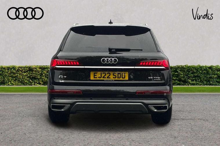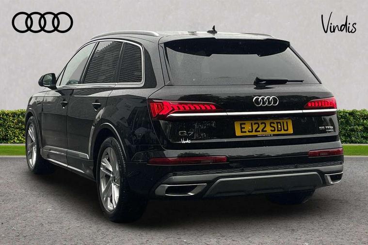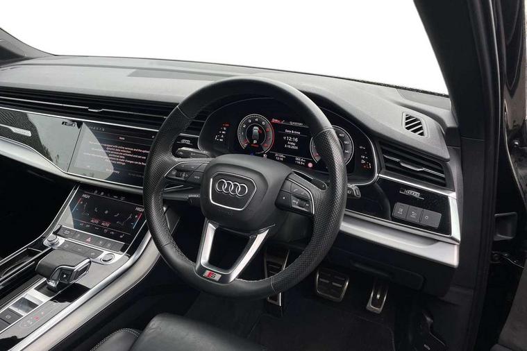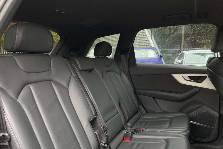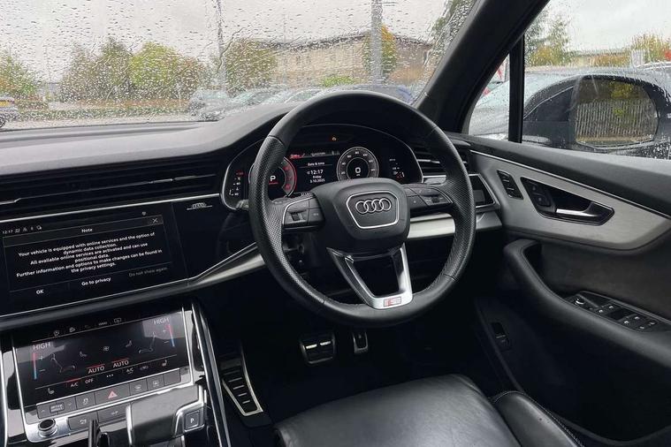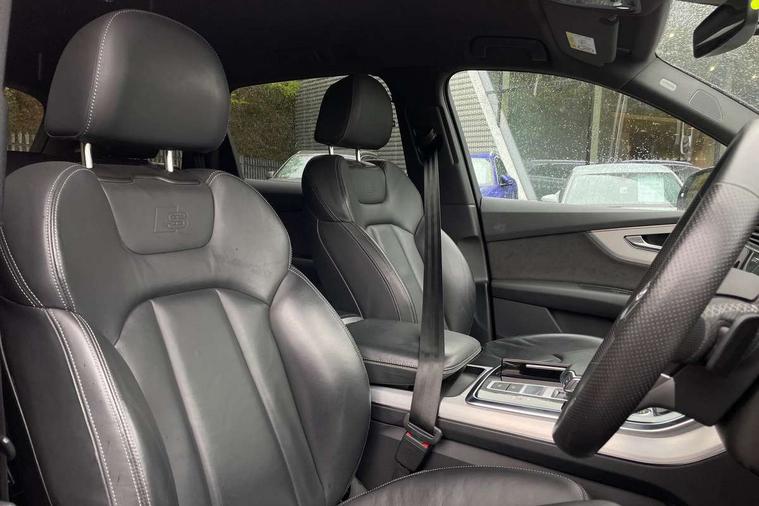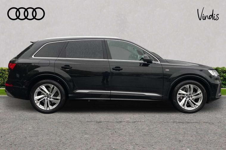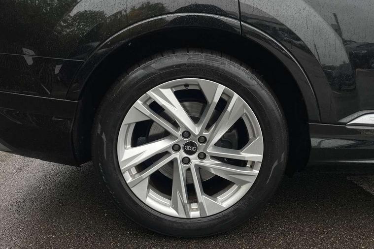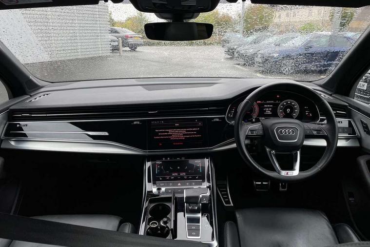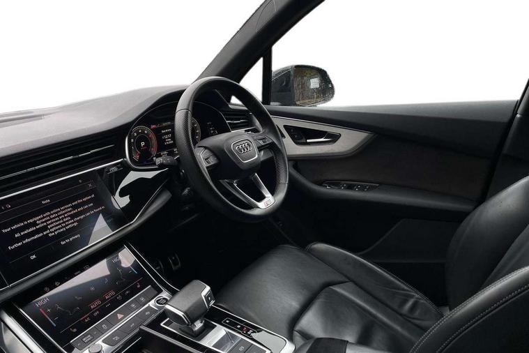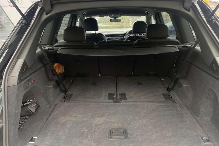 Audi connect safety and service (e-call), Audi connect with Amazon Alexa Integration, Audi drive select (Auto, Comfort, Dynamic, Efficiency, Individual, Off-road and All road), Bluetooth interface, Camera based traffic sign recognition, Electromechanical steering, MMI navigation plus with MMI touch screens includes 10.1" and 8.6" screens with haptic feedback, Natural voice recognition, Parking system plus with 360 degree display (front, rear and side sensors) - acoustic and visual park assist system, Power operated tailgate, Rear view camera, Smartphone interface includes wireless Apple carplay/Android Auto, Start/stop system, 48V Mild hybrid technology, 85 litre fuel tank, Adaptive air suspension, Quattro all wheel drive with self locking centre differential, Audi music interface - front 2 USB-C ports with charger and data functions, Audi sound system with 6 channel amplifier, 180 watt amplifying capacity and 10 loudspeakers including subwoofer, DAB digital radio module, 3rd brake light, Aluminium roof rails, Aluminium window trim, Audi matrix LED headlights with dynamic front and rear indicators, Auto dimming frameless rear view mirror, Body coloured door mirrors, Electrically adj heated/folding + automatically dimming exterior mirrors with memory + automatic kerb side function for passenger side exterior mirror, Heat insulating glass in windshield, Integrated LED indications in door mirrors, LED daytime running lights, LED rear tail lights, Privacy glass - dark tinted rear and rear side windows from B-pillar backwards, Rear side wing doors, Rear wiper, S Line badge on wings, S line bumpers in full body colour paint finish, S line roof spoiler, S line styling side ventilation grilles and side skirts, 2 seat bench in 3rd row, 2 zone automatic climate control, 3 seat bench in 2nd row, 7 seat layout with ISOFIX points for the front passenger seat and rear passenger seat, Black cloth headlining, Comfort front centre armrest, Electric adjustable front seat with 4 way lumbar support, driver memory functionality, Folding rear seats, Front head restraints, Front/rear floor mats, Heated front seats, Illuminated door sill trims with S logo, LED interior ambient lighting, Luggage compartment cover, Luggage compartment sill protection in stainless steel, Rear head restraints, Single front passenger seat, Stainless steel pedals, Sunvisors with illuminated vanity mirrors, 3 point seatbelts on all rear seats, Audi pre sense front, Child locks on rear doors, Driver and front passenger, front side and curtain airbags, Electromechanical parking brake, Electronic Stabilisation Control (ESC) including ABS, ASR and EDL, Extended pedestrian protection measures, Hill hold assist, Seatbelt monitoring, Tyre pressure loss indicator, Warning triangle and first aid kit, Anti theft alarm, Anti-theft wheel bolts and wheel loosening detection, Keyless Go, Remote central locking, Darkened matt brushed aluminium inlays, Tool kit, Tyre repair kit,