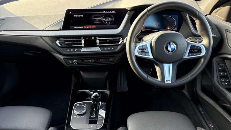 Active guard plus, Attentiveness assist, BMW ConnectedDrive online services, BMW Teleservices, Check Control warning system for monitoring of lights and door/luggage compartment open warning, Cruise control with speed limiter, Eco pro mode, Front axle single joint with specific axle kinematics to minimise drive influences on steering + provide increased rigidity agile driving behaviour, Integrated owners handbook, Lane departure warning system, Oil sensor for level and grade, On board computer, Optimum shift indicator, Personal Profile, Pull away assistant, Rigidly mounted rear subframe - Multi link construction with separate spring / damper configuration and excellent driving characteristics, Speed limit Info including no-overtaking indicator, Aluminium lightweight construction, Anti roll bar front and rear, Balancer shaft, Double VANOS twin scroll turbocharging system, Drive Performance Control, Electronic differential lock, High precision injection, M sport suspension, Petrol Particulate Filter, Twin tube gas filled shock absorbers with degressive characteristic curve, VALVETRONIC engine management, DAB Digital radio, Auto dimming rear view mirror, Automatic headlight beam throw control, Automatic windscreen wipers and automatic headlight, Body colour door handles, Body colour mirror caps, Body colour roof trims, Chrome 'M' logo side designation, Chrome exhaust twin tailpipes round 90mm in left, Chrome kidney grille frame with Satin Aluminium struts, Direction indicator side lights in exterior mirrors, Electrically adjustable exterior mirror with mirror adjustment switch on drivers armrest and aspheric on driver side, convex on passenger side, Fading support, Folding side mirrors with auto dimming/folding wing mirrors with auto dimming, Follow me home headlights, Front and rear bumper system with replaceable deformation elements, Front and rear electric windows with open and close fingertip control, anti trap facility and comfort closing, Front door sill finishers in black plastic with M designation in metallic look, Green tinted heat protection glazing, High gloss shadowline window frame, Recess cover mirror frames and B/C pillar embelisher trim, High level third brake light, Integrated front windscreen with washer jets, LED daytime running lights, LED eyebrow turn indicators, LED front fog lights, Lightweight engineering, Matt black air guide grilles, Matt black wheel arch trim, Model designation on electric bootlid, Nearside reverse light in rear light cluster, Preparation for high beam assistant, Rear fog lights, Rear side wing doors, Rear window wiper, Shark fin antenna, Trailer stabilisation logic, Visible VIN plate, Welcome lighting, 12V power socket in front centre console with blanking plug, 3 rear seat head restraints, 3 seat bench in 2nd row, 3 spoke sports leather steering wheel with black leather and stitching, pearl chrome decorative finish, specific M Badge, Anthracite headlining, Black boot net with lashing eyes, Cargo function on 2nd seat row, Child seat ISOFIX attachment for two outer rear seats and front passenger seat with anchorage points, Conditioned based service, Driver and front passenger backrest net on rear, Driver and front passenger seat heating, Driver side folding compartment in instrument panel, Folding rear clothes hook, Four grab handles integrated in roof lining, Front and rear door pockets with bottle holders, Front and rear side armrest integrated into door trim, Front armrest, Front sports seats, Glove compartment, Height adjustable front head restraints, Luggage compartment for bag hooks on left and right, foldable luggage compartment liner and four lashing eyelets, Manual adjust steering wheel, Multi-function controls for steering wheel, Single front passenger seat, Storage compartment in centre console, Storage compartment in luggage compartment, Stowage of the parcel shelf in luggage compartment trim, Sun visors with vanity mirrors and insert tab, Two front centre console cupholders, Two zone automatic air conditioning, Type C two USB ports in rear centre console, Velour floor mats, Additional interior lighting pack - 1 Series, BMW live cockpit professional pack- 1 Series, Connected pack professional - 1 Series, Interior lights pack - 1 Series, M Sport exterior styling aerodynamics pack - 1 Series, 2 tone horn, 3 point seatbelts on all seats, front pyrotechnic belt tensioners, stopper and belt force limiters, rear coded belt buckles, Airbags - Front driver/passenger, front and rear curtain head protection, front side, manual deactivation of front passenger airbag, Anti lock braking system (ABS) with brake assist, BMW emergency call, Brake drying, Braking readiness, Child proof locking system in rear door, City braking function, Comfort modes, Cornering brake control, Crash sensor activating of airbags, Unlocking doors, hazard warning lights, fuel cut off, interior lighting+activation of safety battery terminal clamp, Driver and front passenger seat belt security check, Dynamic stability control + (DSC+), Dynamic Traction Control - DTC, Electrically operated hand brake including automatic hold function, Front and rear disc brakes, Seatbelt warning, Side impact protection, Tyre pressure monitoring system, Warning triangle and first aid kit, Central locking switch for all doors, fuel filler cap and luggage compartment, Deadlocking function system to all doors, Drive away locking system on all doors and luggage compartment with de-activated in iDrive settings, Locking wheel bolts, Remote control with integrated key with High-gloss Black inlay and M designation and 1 button for open/ close lock, window, open luggage compartment, Start/stop button illuminated in centre console with keyless engine start and auto start stop deactivation button, Thatcham Cat.1 alarm and immobiliser, Wheel slip limitation close to the actuator (ARB), Contrast stitching on instrument panel, 18" Burnished M double spoke bi-colour alloy wheels finished in orbit grey - styl