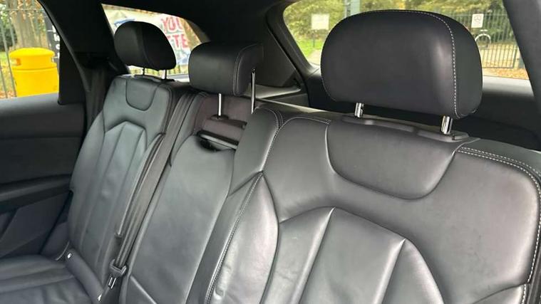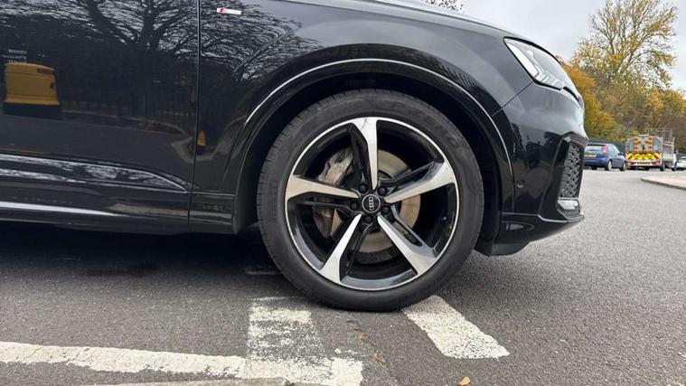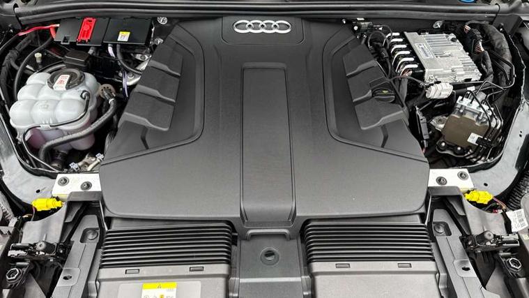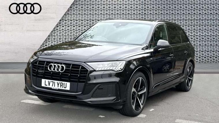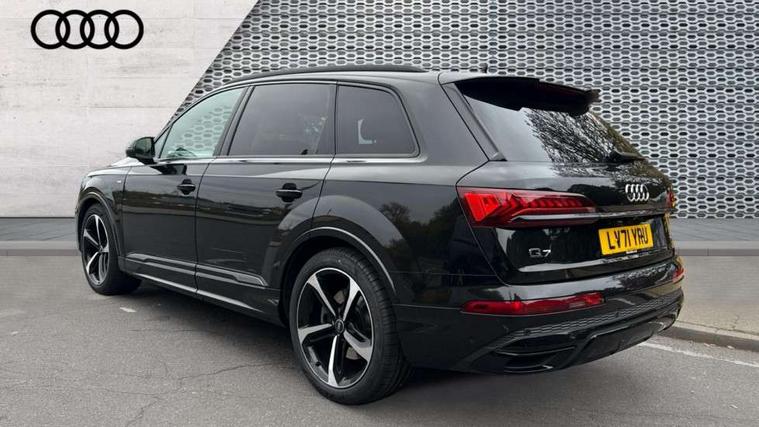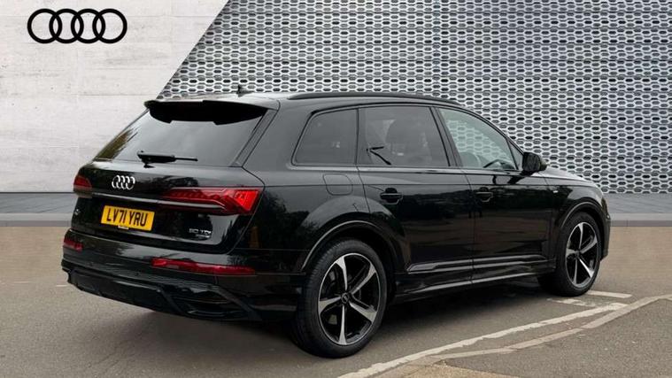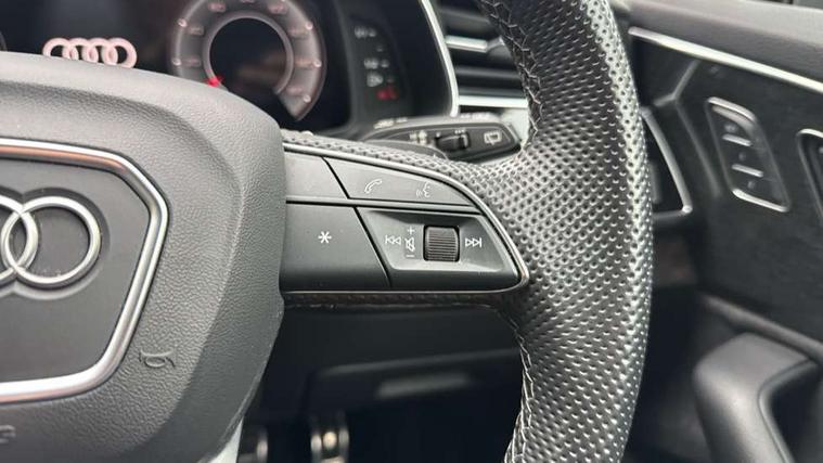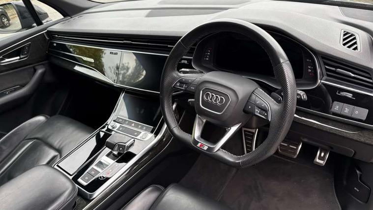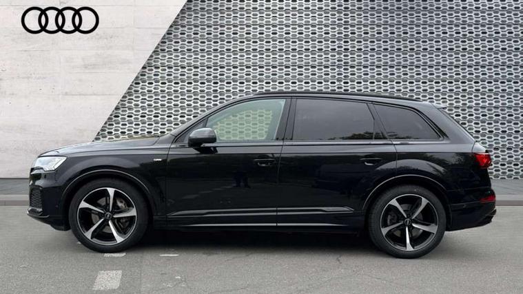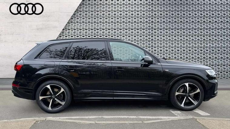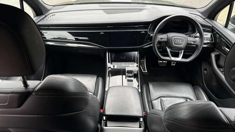 Audi connect safety and service (e-call), Audi connect with Amazon Alexa Integration, Audi drive select (Auto, Comfort, Dynamic, Efficiency, Individual, Off-road and All road), Bluetooth interface, Camera based traffic sign recognition, Electromechanical steering, MMI navigation plus with MMI touch screens includes 10.1" and 8.6" screens with haptic feedback, Natural voice recognition, Parking system plus with 360 degree display (front, rear and side sensors) - acoustic and visual park assist system, Power operated tailgate, Rear view camera, Smartphone interface includes wireless Apple carplay/Android Auto, Start/stop system, 48V Mild hybrid technology, Adaptive air sports suspension, Quattro all wheel drive with self locking centre differential, Audi music interface - front 2 USB-C ports with charger and data functions, Audi sound system with 6 channel amplifier, 180 watt amplifying capacity and 10 loudspeakers including subwoofer, DAB digital radio module, 3rd brake light, Audi matrix LED headlights with dynamic front and rear indicators, Auto dimming frameless rear view mirror, Black roof rails, Bumpers in contrast paint scandium grey finish includes door trim and wheel arch trim strips, inlays in door strip contain quattro embossing, Electrically adj heated/folding + automatically dimming exterior mirrors with memory + automatic kerb side function for passenger side exterior mirror, Heat insulating glass in windshield, Integrated LED indications in door mirrors, LED daytime running lights, LED rear tail lights, Privacy glass - dark tinted rear and rear side windows from B-pillar backwards, Rear side wing doors, Rear wiper, 2 seat bench in 3rd row, 3 seat bench in 2nd row, 4 zone deluxe automatic climate control, 7 seat layout with ISOFIX points for the front passenger seat and rear passenger seat, Black cloth headlining, Comfort front centre armrest, Electric adjustable front seat with 4 way lumbar support, driver memory functionality, Folding rear seats, Front head restraints, Front/rear floor mats, Heated front seats, Illuminated door sill trims with S logo, LED interior ambient lighting, Luggage compartment cover, Luggage compartment sill protection in stainless steel, Rear head restraints, Single front passenger seat, Stainless steel pedals, Sunvisors with illuminated vanity mirrors, Titanium black styling pack - Q7/SQ7, 3 point seatbelts on all rear seats, Audi pre sense front, Child locks on rear doors, Driver and front passenger, front side and curtain airbags, Electromechanical parking brake, Electronic Stabilisation Control (ESC) including ABS, ASR and EDL, Extended pedestrian protection measures, Hill hold assist, Seatbelt monitoring, Tyre pressure loss indicator, Warning triangle and first aid kit, Anti theft alarm, Anti-theft wheel bolts and wheel loosening detection, Keyless Go, Remote central locking, Polished oak trim with grey finish inlay, Tool kit, Tyre repair kit,