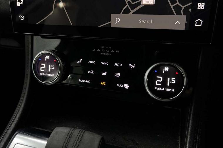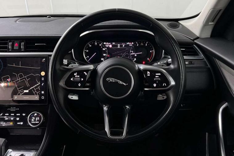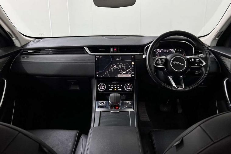 11.4" touchscreen, Android Auto, Apple car play, Bluetooth connectivity, Driver alert system, Driver condition monitor, eCall emergency call system, Eco driving style assistant, Electric power assisted steering, InControl remote, Jaguar Toggle shift selector, Lane departure warning system, Lane keep assist, Outside temperature gauge, Personalisation profile management, Pivi pro connected navigation system with app interface and media storage, Pro services and wifi hotspot, Push button starter, Service interval indicator, Speed proportional steering, Start up sequence with movement in dials and lighting, Traffic sign recognition with adaptive speed limiter, Trip computer, Voice control system, 8 speed automatic transmission, All terrain progress control, All Wheel Drive (AWD), Open differential with torque vectoring by braking, AM/FM radio, Bluetooth streaming, DAB Radio (Digital Audio Broadcasting), Dynamic volume control, InControl apps, InControl protect, iPod integration, 3 flash lane change indicators, 3rd brake light, Approach Illumination, Auto dimming rear view mirror, Automatic headlights, Body colour door mirrors, Electric windows with one touch open/close and anti trap, F-Pace badge, Green tinted glass, Heated front windscreen + heated washer jets, Heated rear window with timer, Jaguar script and leaper, LED tail lights, Non acoustic front windscreen, Rain sensor windscreen wipers, Rear fog lights, Rear metal tread plates, Rear side wing doors, Rear wiper, Trailer stability assist, Variable front intermittent wipers, 12V power point front, 3 rear headrests, 3 seat bench in 2nd row, Air distribution speed, Centre armrest console, Centre console with side storage, Door sill tread plates, Fold flat front seats, Front centre armrest with storage compartment, Front door storage space, Glovebox finisher with jaguar script, Heated steering wheel, Hooks in loadspace, Illuminated glovebox, Interior front door handles with separate locking switches, ISOFIX on outer rear seats, Jaguar sense, Luggage tie downs in loadspace, Mist sensing, Multifunction steering wheel, Overhead lighting console, Overhead stowage for sunglasses, Passive front head restraints, Premium carpet mats, Rear air vents, Rear armrest with twin cupholders, Rear centre headrest, Rear door storage space, Reversible boot floor, Satin chrome gearshift paddles, Shopping bag hook, Single front passenger seat, Split rim leather steering wheel, Sunvisors with illuminated vanity mirrors, Twin front cupholders with cover, Online Pack with data plan - F-Pace, 355mm front brakes and 325mm rear brakes, 3x3 point rear seatbelts, ABS, All surface progress control (ASPC), Brake pad warning light, DSC - Dynamic Stability Control, Electric parking brake (EPB), Emergency brake assist, Front airbags with passenger seat occupant detector, Front and rear seatbelt reminder, Front side airbags, Full length side window curtain airbag, Hill launch assist, Power operated child locks, Torque vectoring brake, Traction control, Tyre pressure monitoring system, Immobiliser, Keyless Start, Locking wheel nuts, Perimeter alarm, Remote central locking, Valet mode,