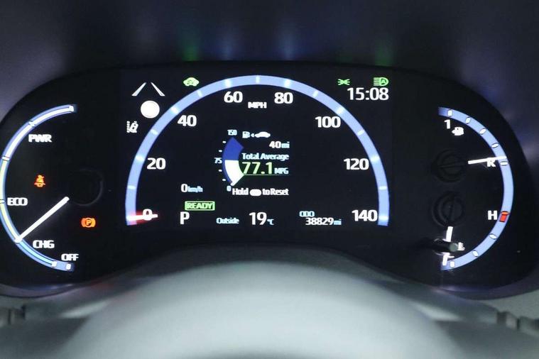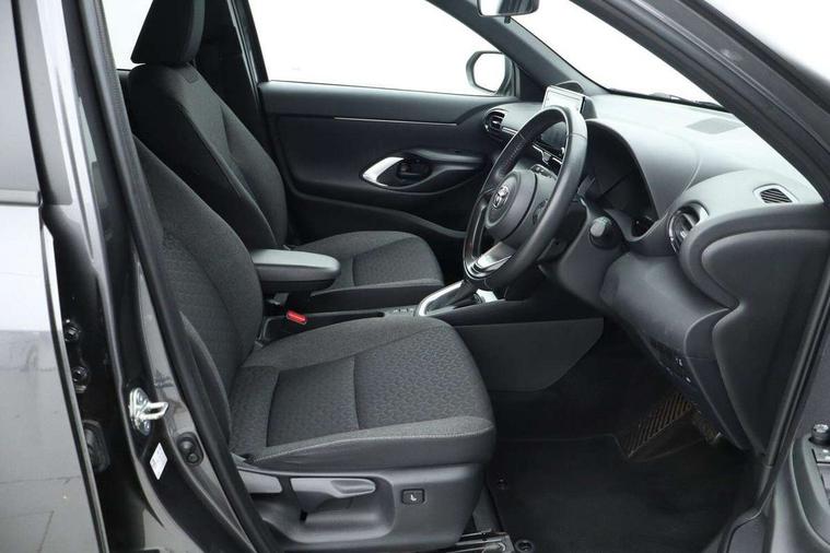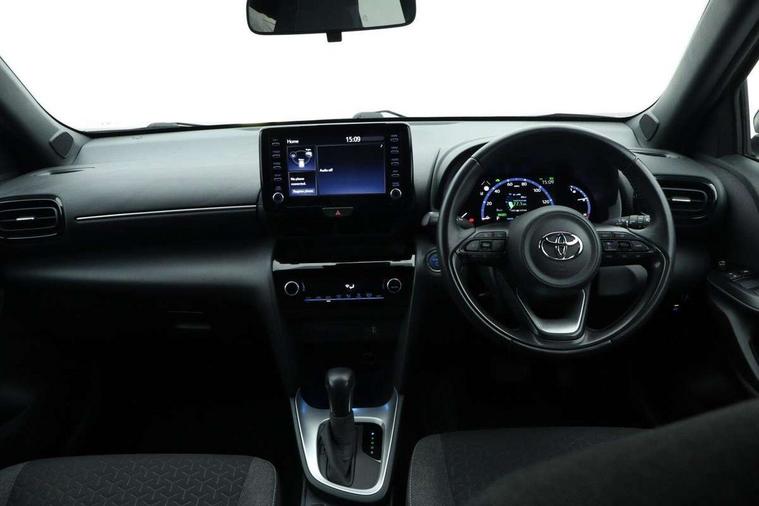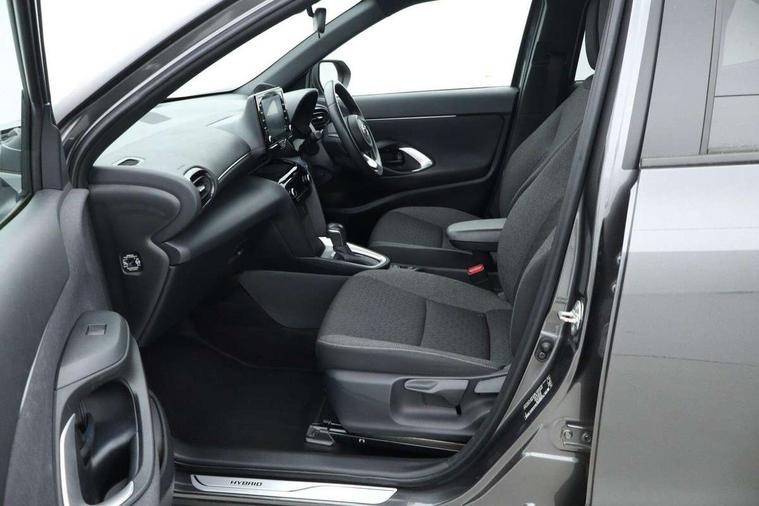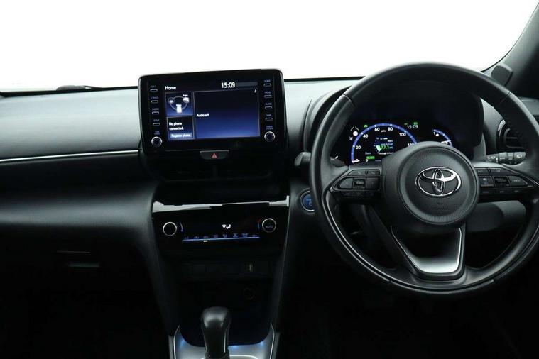 7" Multi information display screen, 8" Toyota touch 2 multimedia system with Smartphone integration with Apple CarPlay and Android auto, Adjustable speed limiter, Bluetooth connectivity, Driver attention alert system, eCall emergency system, Electric power steering, Full range intelligent adaptive cruise control, Hybrid system indicator, Key reminder warning, Lane trace assist, Multimedia, audio, telephone and voice recognition switches on steering wheel, My T Connected services, Pre-collision system enhanced with emergency steering assist, Reversing camera, Road sign assist - RSA, Steering assisted vehicle stability control, 6 speakers, DAB Digital radio, USB connection, 3rd brake light, Acoustic windscreen glass, Aluminium roof rails, Anti-jam protection on power windows, Auto high beam [AHB] with on/off switch, Automatic headlights, Black lower front grille, Black Shark-fin antenna, Black upper front grille, Black wheel arch mouldings, Body colour door handles, Body colour front bumper, Body colour rear bumper, Electric adjustable heated door mirrors, Follow me home headlights, Front and rear electric windows with auto up/down function, Front intermittent wipers, Headlight cut off reminder, Indicators integrated on door mirrors, Intermittent rear wiper, LED daytime running lights guide, LED front fog lights, LED front light guide, LED Indicators, LED projector headlights, LED rear light guide, Manual headlight levelling, Manually retractable door mirrors, Noise reduction layer on windscreen, Privacy glass, Rain sensor, Rear LED lights with sequential indicators, Rear side wing doors, Rear spoiler, Rear window defogger, 12v power outlet - front, 2x Rear coat hooks, 3 seat bench in 2nd row, 3 spoke leather steering wheel, 40:20:40 split folding rear bench seat, Adjustable speed limiter switch on steering wheel, Auto air conditioning, Black roof lining, Boot light, Central armrest, Centre console in light blue ambent lighting, Driver and front passenger personal lights, Fabric door trim, Fabric upholstery, Footwell in light blue ambient lighting, Front console box, Front cup holders, Front head restraints, Glovebox, Height adjustable driver's seat, Height adjustable front passenger seat, Hooks for luggage holding belts, ISOFIX child restraint system, Lane departure alert switch on steering control, Leather gearshift, Light blue ambient lighting on front doors, Manual telescopic and tilting steering wheel, Mirror on driver and passenger sun visor, Pollen air filter, Rear cup holders, Rear head restraints, Single front passenger seat, Soft tonneau cover, 3x3 point rear seat belts, ABS+EBD+Brake assist, Driver and passenger central airbags, Driver and passenger front airbags, Driver and passenger side airbags, Electronic parking brake, Emergency brake light system (EBS), Front seat belt reminder, Hill start assist control (HAC), Passenger airbag on/off switch, Pre-collision system with pedestrian and cyclist detection, Rear door child safety locks, Rear passenger side airbags, Rear seat belt reminder, Traction control, Tyre pressure warning system, Immobiliser, Intrusion alarm, Keyless smart entry with push button start, Power door locks, Power passenger window lock, Remote door lock, Tyre repair kit,