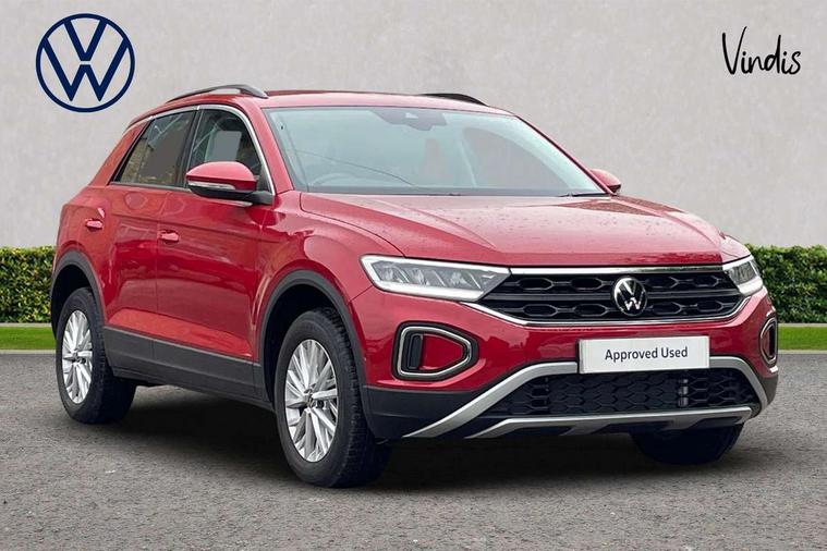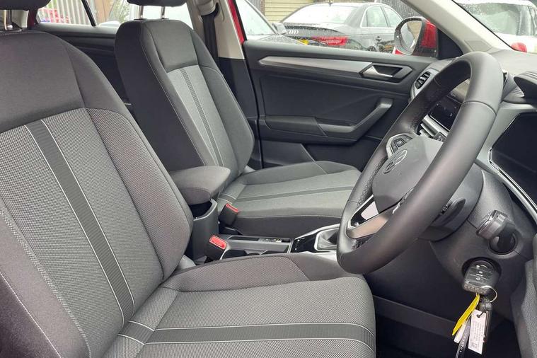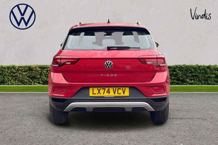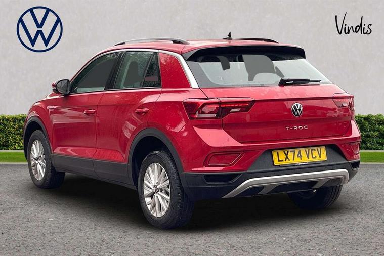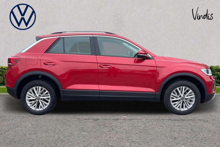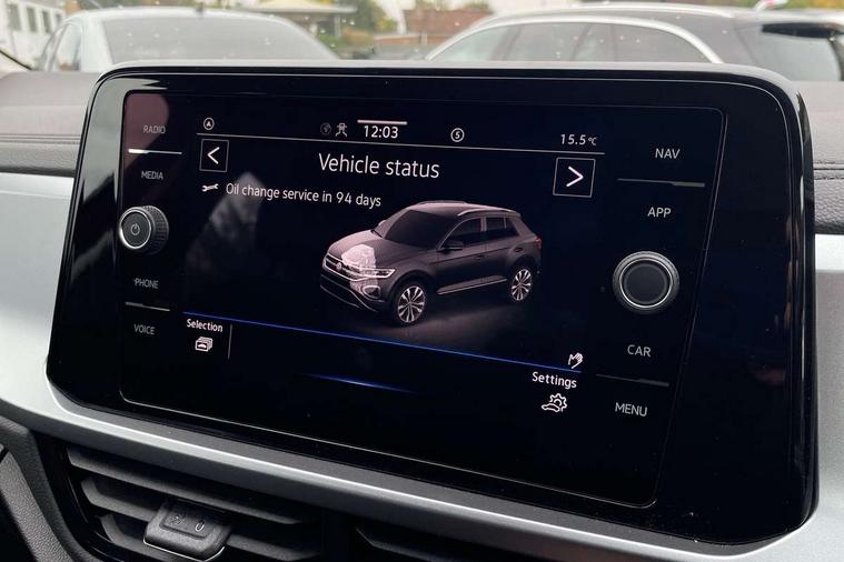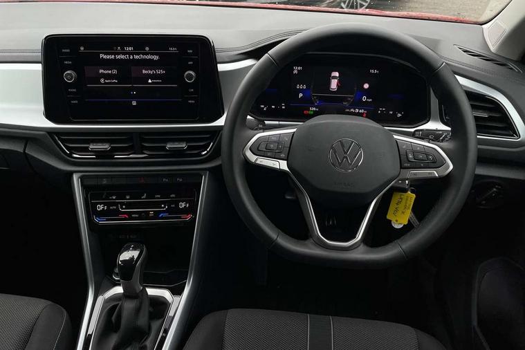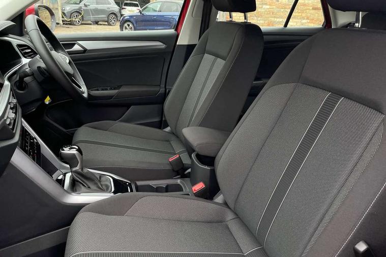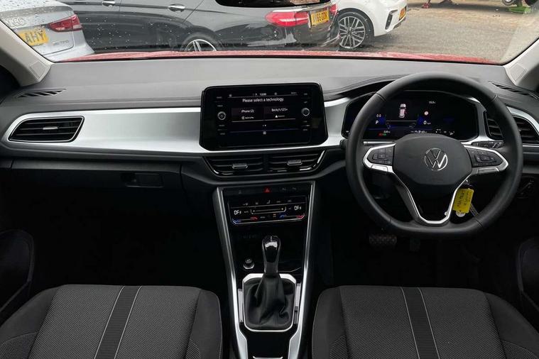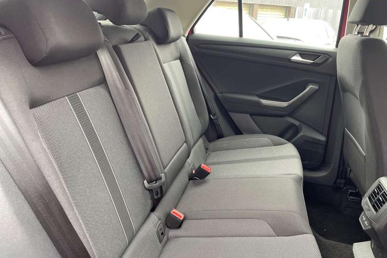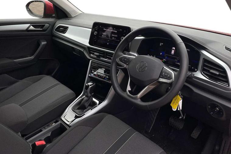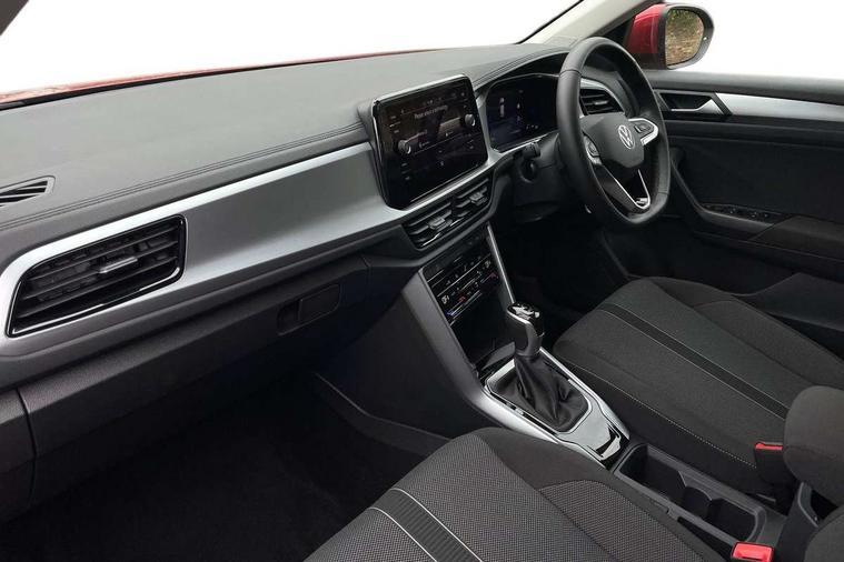 Advanced driver attention and drowsiness monitor, Dynamic road sign display, Emergency call service, Lane keeping system Lane Assist, Mobile phone interface, Modified key software - reduce switch off time for key status change to Long no motion, Online services, Park assist including front and rear parking sensors, Power assisted speed sensitive steering, Service interval indicator, Tailgate/trunk lid release from outside, Think blue trainer driver tips and journey analysis, Warning sound and light for front seatbelts unfastened, Wireless app connect, Wireless Smartphone charger, Battery regeneration during braking, Front shock absorption, Rear shock absorption chassis with increased ride height, Start/stop function with battery regeneration, DAB Digital radio, Diversity antenna for FM reception, Front and rear 6 speakers, Music playback - MP3, WMA and AAC files, Premium USB cable in choice of either Apple or Android smartphone compatibility, SD card slot, Simultaneous pairing of 2 compatible mobile devices, Title and cover art display, We Connect and We Connect Plus functionality, Auto dimming interior rear view mirror, Automatic hazard lights activation under emergency braking, Automatic headlight control with LED separate daytime running lights with coming/leaving home function, Black roof rails, Body coloured bumpers and radiator grille with chrome trim and front fog lamps with chrome bezel, Body coloured exterior mirror housings and door handles, Electrically adjustable and heated door mirrors, Extended roof spoiler, Exterior mirrors aspherical on driver side, convex on front passenger side, External USB type C socket and charging sockets, Front windscreen wiper with intermittent wipe and 4 position delay, Heated rear window, LED 3rd brake light, LED rear combination lamps, LED rear number plate lights, Power windows with comfort operation and circuit breaker, Rain sensor, Rear exhaust tailpipe, Rear fog light on one side and reversing lights on both sides, Rear side wing doors, Rear wash/wipe with intermittent wipe setting, Remote electrically foldable door mirrors, puddle lights and reverse activated passenger's door mirror, 12V power socket in centre console, 3 rear head restraints, 3 seat bench in 2nd row, 4 load lashing points in luggage compartment, Air care climatronic air conditoning system with active combination filter and 2-zone temperature control, Ambient lighting with mirror logo projection, Cloth upholstery, Door and side trim panel in cloth, Drawer under drivers seat, Driver/front passenger seat height adjustment, Front centre armrest, Front comfort sports seats, Front cupholders x 2, Front reading light, Front seat back storage pockets, Glove compartment door with light, Instrument lighting, white adjustable panel illumination, Interior light delay, Isofix child seat preparation, Leather gearshift handle, Load-through provision with cup holder when folded down ('Unsplit rear seat bench, split folding backrest, with centre armrest), Luggage compartment lighting, Lumbar support for driver's and front passengers seat, Non-folding front passenger seat backrest, Single front passenger seat, Storage compartment in left and right luggage area, Storage compartment in rear doors, Storage compartments in driver and front passenger doors, Sunvisors with illuminated vanity mirrors, Variable boot floor, height adjustable and removable, Driver assistance pack without proactive passenger protection - T-Roc Life/Match, 3 point height adj front seatbelts + pretensioners, 3 point seatbelts in outer rear with ECE label, ABS, Child locks on rear doors, City emergency braking and pedestrian monitoring, Driver and front passenger airbag with front passenger airbag deactivation, Driver and front passenger safety-optimised head restraints, Drivers seatbelt reminder, Electronic parking brake, Electronic Stability Control (ESC) inc EDL (Electronic Differential Lock) and ASR (Traction Control), Front and rear passengers curtain airbag system including front side airbags, Front disc brakes, Hill start assist, Predictive pedestrian protection, Rear disc brakes, Two tone horn, Tyre pressure loss indicator, Volkswagen roadside assistance, Alarm with interior protection, Pewter matt decorative inserts for intrument panel, centre console and door panels at the front, Trims for alloy wheels,