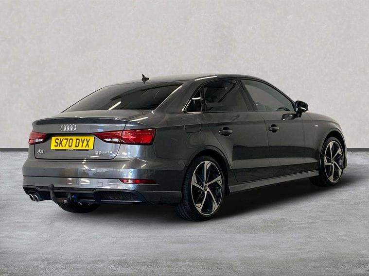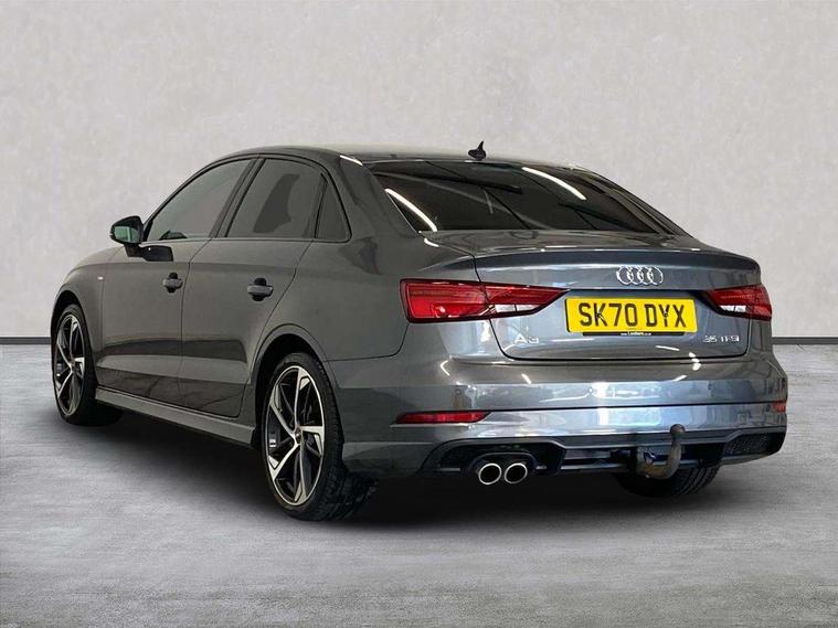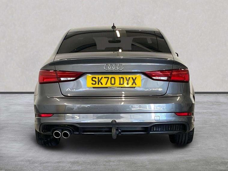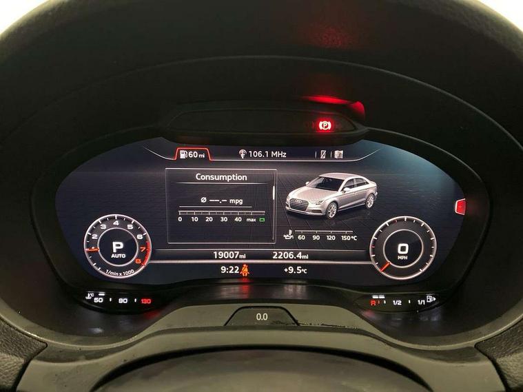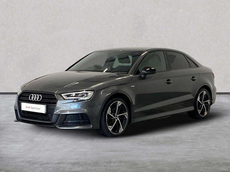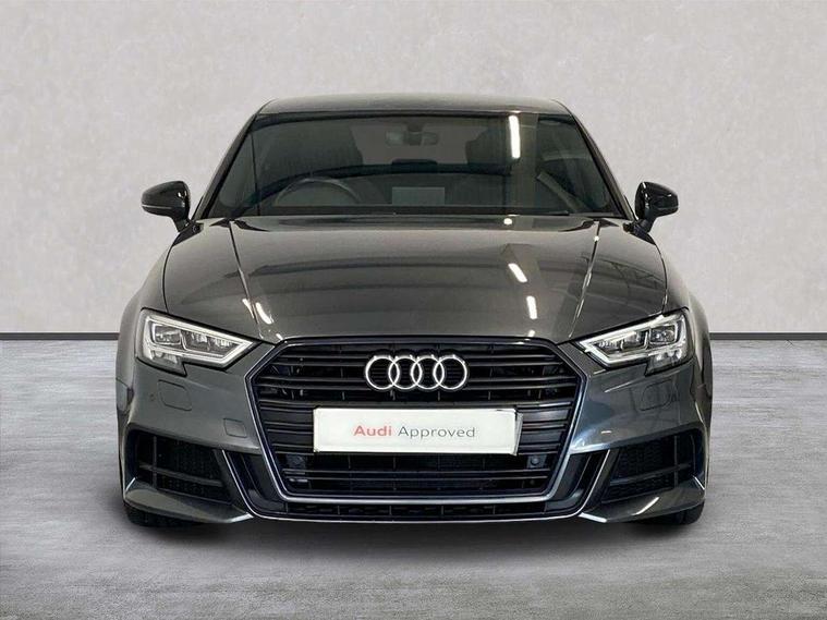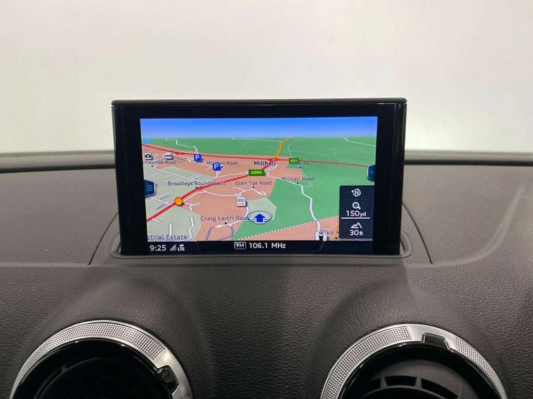 Audi connect, Audi drive select, Audi smartphone interface, Automatic start/stop system, Bluetooth interface, Colour driver's information system display, Electro-mechanical PAS, SD card based MMI navigation, Service indicator, Voice control system, Sports suspension, 2 USB interfaces and Aux-In jack, CD player, DAB Digital radio, MMI radio plus with 7" colour MMI screen and MMI controller, Two SDXC card slots, Auto dimming rear view mirror, Automatic lights and wipers, Black door mirrors, Body colour bumpers, Dual branch tailpipe, Electrically adjustable and heated door mirrors with integrated LED side indicators, Front and rear electric windows, Heated rear window, Heated windscreen washer jets, Model and engine designation badges at rear, Privacy glass - dark tinted rear and rear side windows from B-pillar backwards, S Line badges on the front wings, S Line body styling with high gloss dark chrome radiator grille and rear diffuser in platinum grey, S Line roof edge spoiler, Single chrome exhaust tailpipe, 3 adjustable rear headrests, 3 spoke flat bottomed high multi-function leather sport steering wheel with gearshift paddles, 4 lashing points to secure luggage, 60/40 split folding rear seat, Adjustable front centre armrest, Black cloth headlining, Driver/passenger sunvisors, Dual zone electronic climate control, Front and rear interior lights with delay, Front sport seats with S embossed logo, Front/rear floor mats, Height/depth adjustable steering column, Illuminated door sill trims with S logo, Illuminated glovebox, Illuminated luggage compartment, ISOFIX child seat mounting and Top Tether with front passenger airbag deactivation, Manual height adjustable front seats, Stainless steel pedals, Storage compartments in doors side trims, centre console and under front drivers seat, Black styling pack - A3/S3, LED interior light pack - A3/RS3, Non smoking pack - A3, Storage and luggage pack - A3/RS3, 3 point seatbelts on all seats, ABS/EBD, Active front headrests, Airbags - front driver/passenger, front & rear side, curtain, drivers knee, ASR, EDL, Electromechanical parking brake, ESC - Electronic Stability Control + traction control, Hill hold assist, Predictive pedestrian protection, Seatbelt warning, Tyre pressure warning, Warning triangle and first aid kit, Anti theft alarm, Anti-theft wheel bolts, Immobiliser, Remote control central locking, Aluminium air vent surrounds, Aluminium trim elements, Matt brushed aluminium inlays, 18" 5 arm trapezoid design sport alloy wheels in gloss anthracite black with diamond cut finish, Tool kit, Tyre repair kit,
