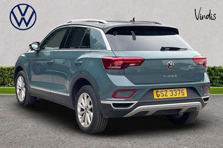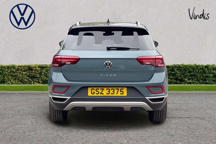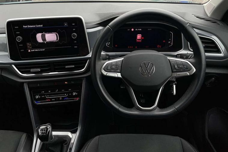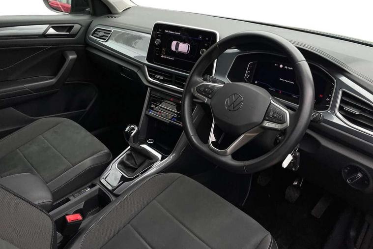 10.25" Digital cockpit pro, Bluetooth mobile phone interface, Driver alert system with fatigue detection, Driver tips and journey analysis, Emergency call service, Lane keeping system Lane Assist, Modified key software - reduce switch off time for key status change to Long no motion, Online services, Park assist including front and rear parking sensors, Service interval indicator, Tailgate/trunk lid release from outside, Think blue trainer driver tips and journey analysis, Warning sound and light for front seatbelts unfastened, Wireless app connect, Battery regeneration during braking, Start/stop function with battery regeneration, Diversity antenna for FM reception, Front and rear 6 speakers, Music playback - MP3, WMA and AAC files, Premium USB cable in choice of either Apple or Android smartphone compatibility, SD card slot, Simultaneous pairing of 2 compatible mobile devices, Title and cover art display, We Connect and We Connect Plus functionality, 3rd brake light, Auto dimming interior rear view mirror, Automatic hazard lights activation under emergency braking, Automatic headlight control with LED separate daytime running lights with coming/leaving home function, Body colour sports bumpers with silver metallic underbody fascia, Dynamic headlight range control with self adjusting whilst driving, Extended roof spoiler, Exterior mirrors aspherical on driver side, convex on front passenger side, External USB type C socket and charging sockets, Front windscreen wiper with intermittent wipe and 4 position delay, Heated rear window, LED Plus headlamps, LED rear combination lamps, LED rear number plate lights, LED tail lamp rear comination lamps, Light mode for poor weather, rain, fog or snow, Power windows with comfort operation and circuit breaker, Rain sensor, Rear exhaust tailpipe, Rear fog light on one side and reversing lights on both sides, Rear side wing doors, Rear wash/wipe with intermittent wipe setting, Remote electrically foldable door mirrors, puddle lights and reverse activated passenger's door mirror, 12V power socket in centre console, 3 rear head restraints, 3 seat bench in 2nd row, 4 load lashing points in luggage compartment, Air care climatronic air conditoning system with active combination filter and 2-zone temperature control, Chrome plated radiator grille inserts, air vent surrounds and light switch surrounds, Door and side trim panel with leatherette insert, Drawer under drivers seat, Front + rear carpet mats, Front centre armrest, Front comfort sports seats, Front cupholders x 2, Front footwell illumination, Instrument lighting, white adjustable panel illumination, Interior ambient lighting and surround lighting, Interior light delay, Isofix child seat preparation, Leather gearshift handle, LED interior light with switch off delay/dimmer and 2 front/rear LED reading lights, Load-through provision with cup holder when folded down ('Unsplit rear seat bench, split folding backrest, with centre armrest), Luggage compartment lighting, Non-folding front passenger seat backrest, Single front passenger seat, Storage compartment in left and right luggage area, Storage compartment in rear doors, Storage compartments in driver and front passenger doors, Sunvisors with illuminated vanity mirrors, Variable boot floor, height adjustable and removable, Driver assistance pack without proactive passenger protection - T-Roc, 3 point height adj front seatbelts + pretensioners, 3 point seatbelts in outer rear with ECE label, ABS, Child locks on rear doors, Driver and front passenger airbag with front passenger airbag deactivation, Driver and front passenger safety-optimised head restraints, Drivers seatbelt reminder, Electronic parking brake, Electronic Stability Control (ESC) inc EDL (Electronic Differential Lock) and ASR (Traction Control), Front and rear passengers curtain airbag system including front side airbags, Front assist with city emergency braking and pedestrian monitoring, Front seat side impact airbags, Predictive pedestrian protection, Rear disc brakes, Single tone horn, Tyre pressure loss indicator, Volkswagen roadside assistance, Alarm with interior protection, Anti-theft alarm system with interior monitoring, backup horn, and towing protection, Remote central locking with SAFELOCK, radio remote control with 2 remote control folding keys, Trims for alloy wheels,