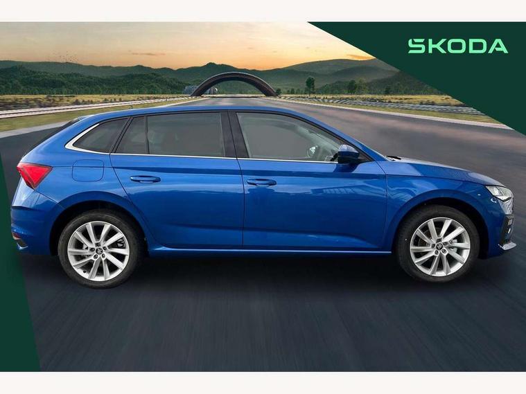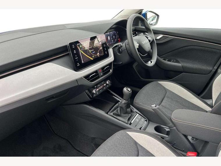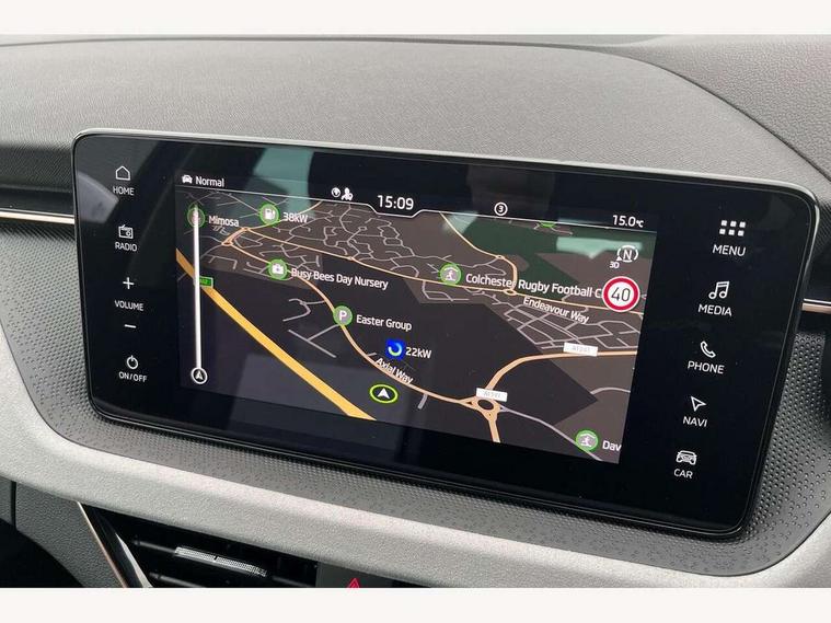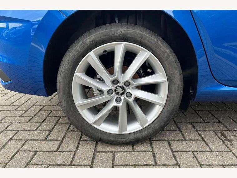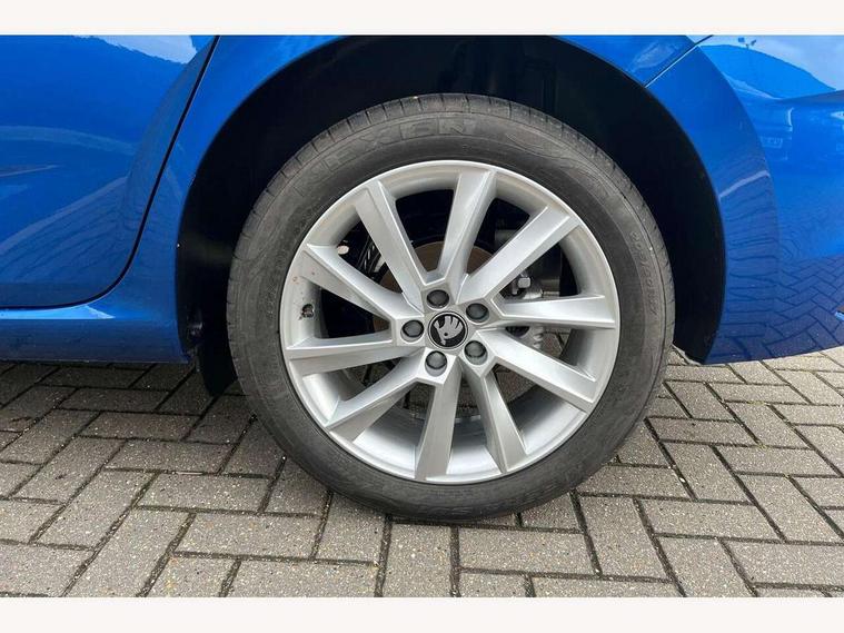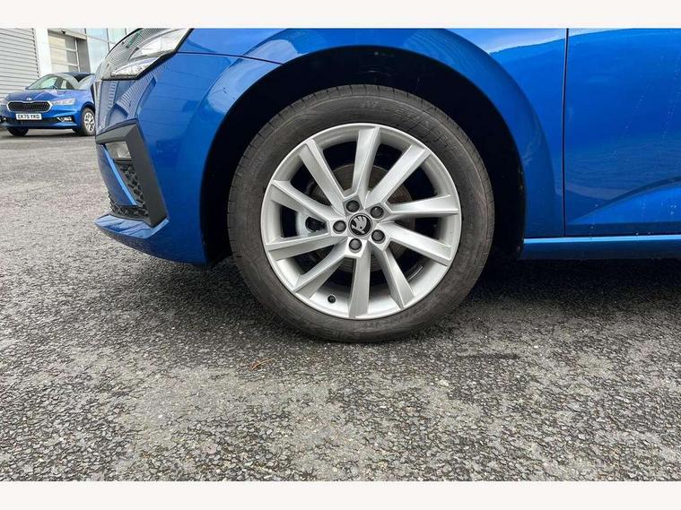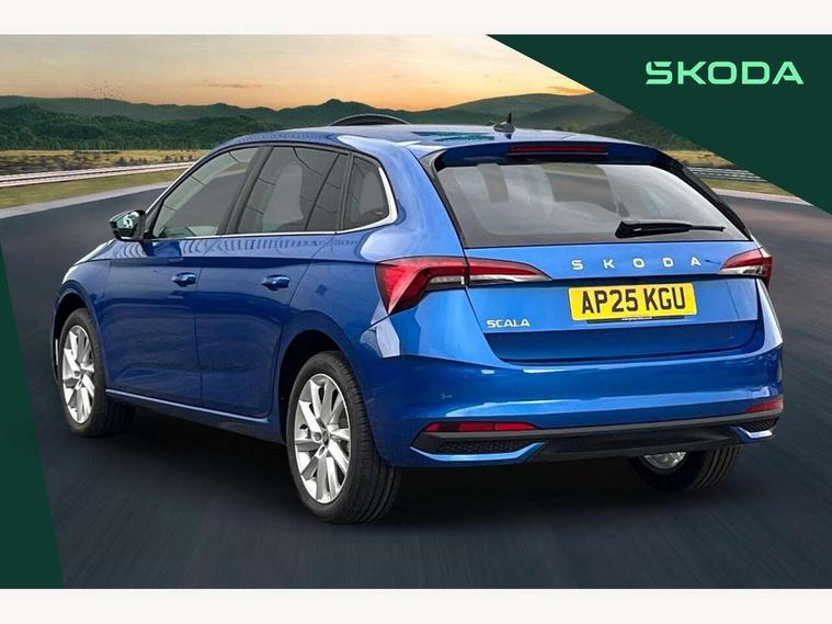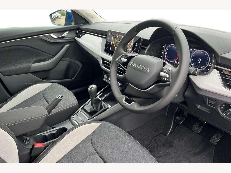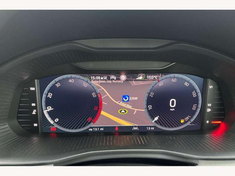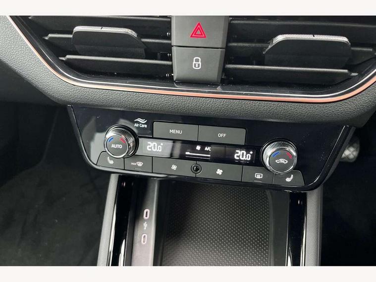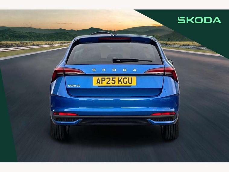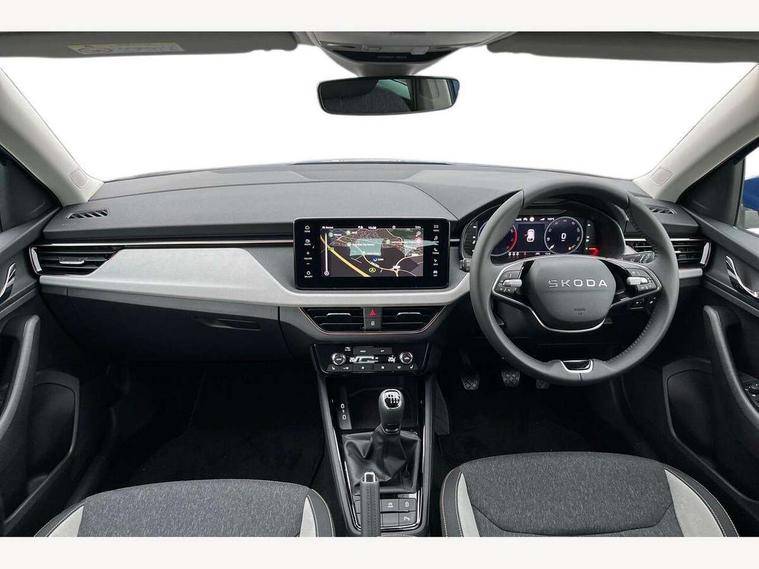 Advanced driver attention and drowsiness monitor, Bluetooth, e-Call (emergency call), Front assist system, PAS, Rear parking sensors, Rear view camera, Speed limiter, Tailgate, Traffic sign recognition, Virtual Cockpit - 10.25" digital display, Voice control system, Wireless smartlink, 4 USB C ports, 8 Speakers, 9.2" Skoda navigation display, DAB radio, Auto dimming rear view mirror, Automatic headlamp activation with Coming home and Leaving home feature, Automatic high/low beam, Automatic intermittent wipers, Body colour bumpers, Body colour door mirrors and handles, Chrome moulding around grille, Chrome window frames, Front and rear electric windows, Heated rear window, LED 3rd brake light, LED brake lights, LED daytime running lights, LED front turning lights, LED high beam, LED low beam, Light sensors, Privacy glass, Rear LED fog light, Rear side wing doors, Rear wiper, Tinted windows, Unique dark chrome design logo on alloy wheels, 12V socket in luggage compartment, 3 seat bench in 2nd row, Ambient lighting in white/red, Black / Copper armrest stitching, Cargo elements, Chrome inner door handles, Copper hotstamping, Door inserts in accent black, Driver and passenger sun visors with vanity mirror, Dual zone climate control, Front and rear roof lights, Front centre armrest, Front head restraints, Glasses storage in roof liner, Height adjustable driver seat, Height adjustable passenger seat, Ice scraper, Illuminated glove compartment, Inner circulation control with pollen filter, ISOFIX for front passenger seat, Isofix preparation for back seats, Leather gearknob and handbrake lever, Lodge cloth upholstery, Luggage net under rear parcel shelf, Manual lumbar support for front seats, Net package and top tether hooks in boot space, Pearl grey ceiling, Pocket on the back of both front seats, incl. mobile phone pockets, Rear centre armrest, Single front passenger seat, Skoda lettering on steering wheel, Textile floor mats, Third rear headrest, Ticket holder, Top tether for front passenger seat, Umbrella in driver's door, Convenience pack without rear camera - Scala, 3x3 point rear seatbelts, ABS, Child locks, Curtain airbags and front side airbags, Disc brakes, Driver and front passenger airbags, ESP, Hill hold control, Manual leather parking brake, One tone horn, Passenger airbag switch off function, Seatbelt reminder for driver and front passenger, Tyre pressure monitoring system, Anti theft alarm system with interior monitoring, backup horn and towing protection, Anti-theft wheel bolts, Remote central locking with 2 remote folding keys, SAFE function for remote central locking, Decorative inserts,