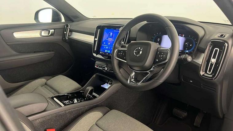 12.3" Progressive Driver Display, 360 degree surround view parking camera with side proximity sensors, 9" centre console portrait touch screen, Adjustable steering wheel force, Bluetooth hands free telephone kit, Cruise control, E-call, Front park assist, Google automatic services - Nav with google maps, apple carplay/android auto, voice recognition with google assistant, Hands free power tailgate, Lane keep assist with driver alert control, Oncoming Lane Mitigation, Rear park assist, Speed limiter, Speed sensitive steering, Wireless/Inductive Mobile Phone Charging, Dynamic chassis, DAB Digital radio, High performance sound, 8 speakers/250W, front USB and 2 rear type C USB, Steering wheel mounted remote controls, Adaptive brake lights with high level LED brake lights, Auto dimming feature for exterior door mirrors, Auto dimming interior mirror, Automatic headlamp levelling, Automatic LED Headlights + Active high beam incorporating daytime running lights, Front aluminium tread plates, Front and rear electric windows, High gloss black front and rear skid plate, High gloss black mesh front grille with high gloss black surround, High gloss black window trim, Home safe and approach lighting, Integrated roof rails in high gloss black, LED front fog lights, Puddle lights, Rain sensor with automatic windscreen wiper activation, Rear side wing doors, Rear wiper, Roof antenna, Roof spoiler, Visible VIN plate, 12V socket in front tunnel console and luggage compartment, 2-Zone electronic climate control with CleanZone air quality system and pollen filter, 3 seat bench in 2nd row, 3 Spoke tailored steering wheel with chrome trim, 60/40 versatile split folding rear seat, A-pillar parking ticket holder, Centre console cupholders and storage, Flexible load floor and grocery bag holder, Floor mats, Front door pocket, front cupholder, ambient front door, rear reading, rear courtesy, instrument panel and tailgate lighting, Front footwell illumination, Front headrests, Front reading light and theatre lighting, Front seat cushion extensions, Front tunnel pocket, Glovebox bag hook, Heated front seats, Height adjustable passenger seat, Height/reach adjustable steering column, High gloss centre tunnel deco, Illuminated glovebox, Illuminated luggage compartment, Illuminated vanity mirrors, Integrated waste bin, Isofix attachments on outer rear seats, Load protection net, Multi directional lumbar support, Power driver seat with memory + exterior mirrors memory, Rear armrest / integral cup holders / storage tray, Rear headrests, Single front passenger seat, Underfloor cargo storage, Climate pack without heated front seats - XC40, 3x3 point rear seatbelts, City safety with steering support with Pedestrian + cyclist + front collision warning with full auto brake and rear auto brake, Drivers knee airbag, Dual stage driver/passenger airbags, Electronic parking brake with auto hold, First aid kit, Front and outer rear seatbelt reminder and pretensioners, Front seats SIPS airbags, Hill descent control, Hill start assist, Inflatable curtain, Passenger airbag cut-off device, Power child locks on rear doors, Road sign information display, Run off Road Mitigation, Run off Road Protection, SIPS (Side Impact Protection System), Slippery road and hazard light alert, Stability and Traction Control with Spin control, Engine Drag Control and Corner Traction Control, Tyre pressure monitoring system, Vehicle deceleration control with Anti-lock Brake System, Electronic Brake Distribution and Emergency Brake Assist, Warning triangle, WHIPS whiplash protection system - front, Anti-theft alarm including immobiliser/volume sensor + level sensor, Key integrated remote control central locking + fuel flap with deadlocking system and auto open/close power windows, Keyless drive includes keyless entry and keyless start, Locking wheel nuts,