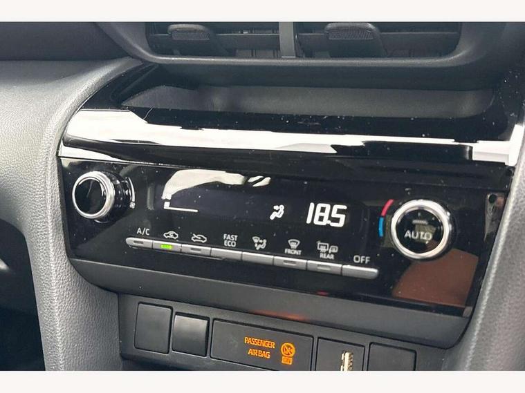 4.2" multi information display, 8" Toyota touch 2 multimedia system with Smartphone integration with Apple CarPlay and Android auto, Adjustable speed limiter, Bluetooth connectivity, Digital speedometer, Driver attention alert system, eCall emergency system, Electric power steering, Full range intelligent adaptive cruise control, Hybrid system indicator, Key reminder warning, Lane trace assist, Multimedia, audio, telephone and voice recognition switches on steering wheel, My T Connected services, Pre-collision system enhanced with emergency steering assist, Reversing camera, Road sign assist - RSA, Steering assisted vehicle stability control, 6 speakers, DAB Digital radio, USB connection, 3rd brake light, Acoustic windscreen glass, Anti-jam protection on power windows, Auto high beam [AHB] with on/off switch, Automatic headlights, Black lower front grille, Black Shark-fin antenna, Black upper front grille, Black wheel arch mouldings, Body colour door handles, Body colour front bumper, Body colour rear bumper, Electric adjustable heated door mirrors, Follow me home headlights, Front and rear electric windows with auto up/down function, Front intermittent wipers, Halogen projector headlights, Headlight cut off reminder, Indicators integrated on door mirrors, Intermittent rear wiper, LED daytime running lights, LED Indicators, Manual headlight levelling, Manually retractable door mirrors, Noise reduction layer on windscreen, Rain sensor, Rear side wing doors, Rear spoiler, Rear window defogger, 12v power outlet - front, 2x Rear coat hooks, 3 seat bench in 2nd row, 3 spoke leather steering wheel, 60/40 split folding rear seat, Adjustable speed limiter switch on steering wheel, Auto air conditioning, Boot light, Central armrest, Driver and front passenger personal lights, Fabric door trim, Fabric upholstery, Front console box, Front cup holders, Front head restraints, Glovebox, Grey roof lining, Height adjustable driver's seat, Height adjustable front passenger seat, ISOFIX child restraint system, Lane departure alert switch on steering control, Leather gearshift, Manual telescopic and tilting steering wheel, Mirror on driver and passenger sun visor, Pollen air filter, Rear head restraints, Single front passenger seat, Soft tonneau cover, 3x3 point rear seat belts, ABS+EBD+Brake assist, Driver and passenger central airbags, Driver and passenger front airbags, Driver and passenger side airbags, Electronic parking brake, Emergency brake light system (EBS), Front seat belt reminder, Hill start assist control (HAC), Passenger airbag on/off switch, Pre-collision system with pedestrian and cyclist detection, Rear door child safety locks, Rear passenger side airbags, Rear seat belt reminder, Traction control, Tyre pressure warning system, Immobiliser, Intrusion alarm, Keyless smart entry with push button start, Power door locks, Power passenger window lock, Remote door lock, 16" 10 spoke alloy wheels, Tyre repair kit,