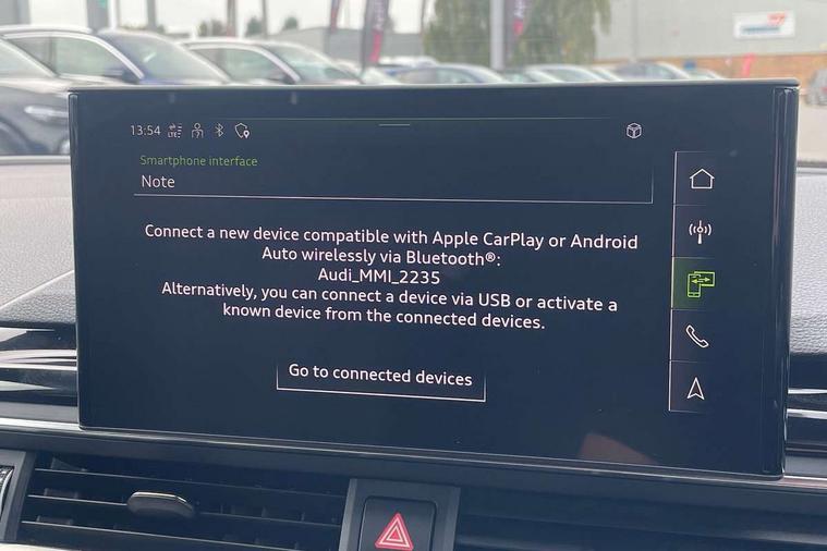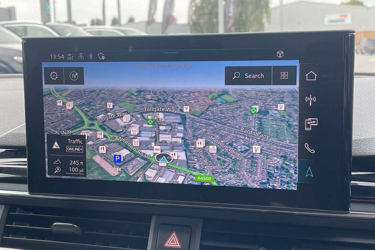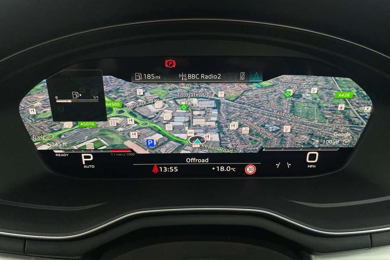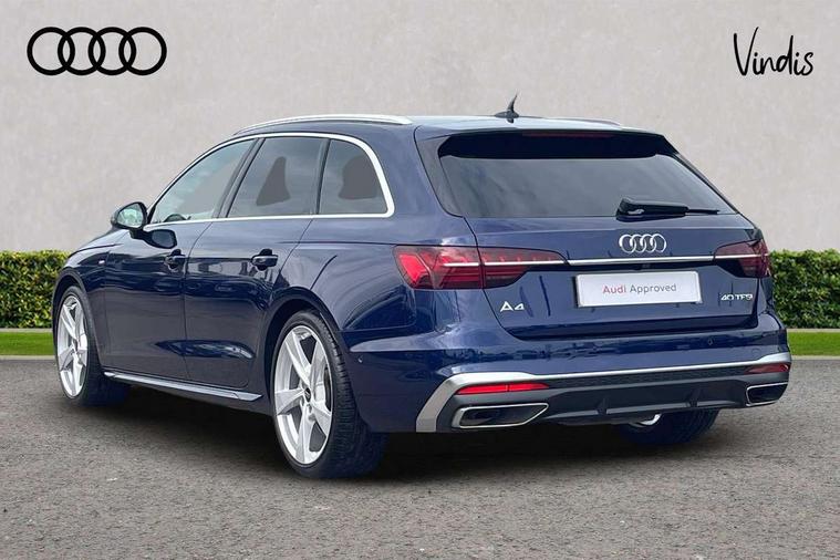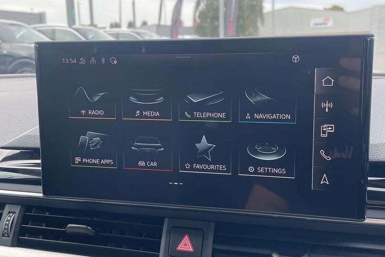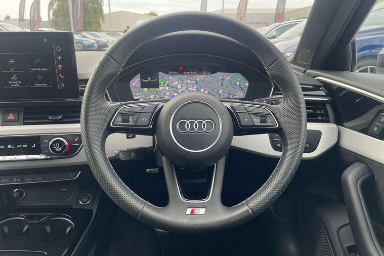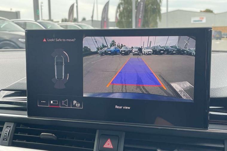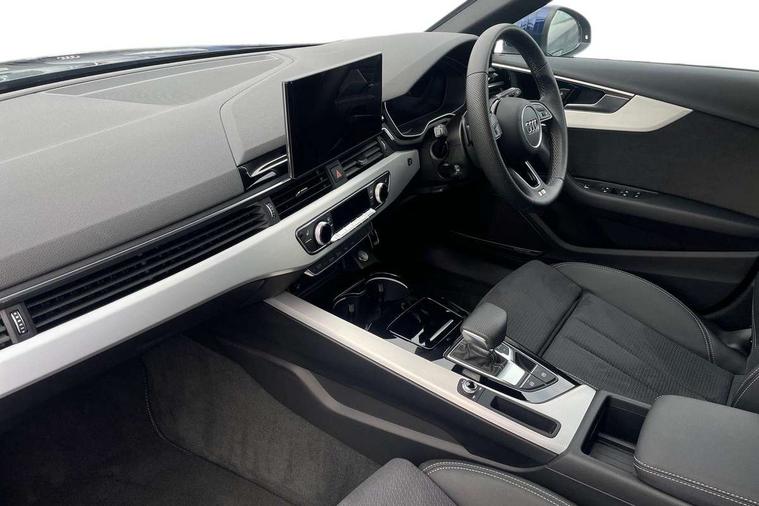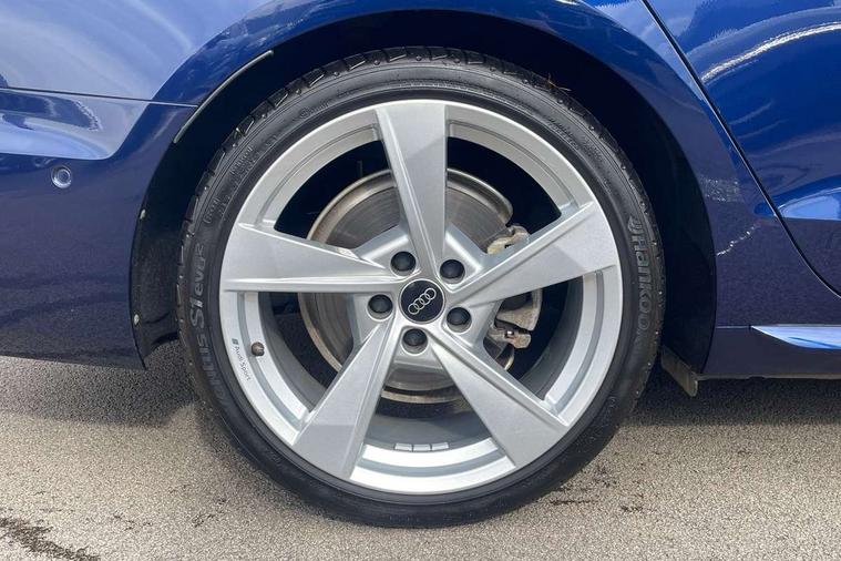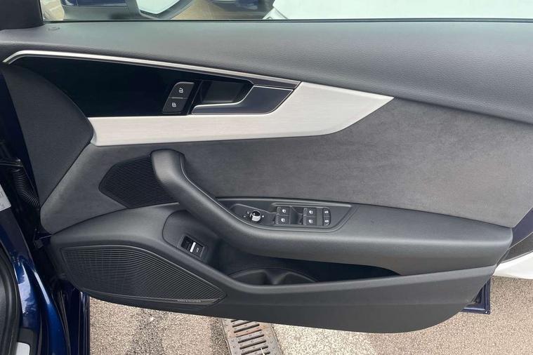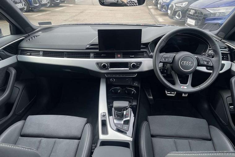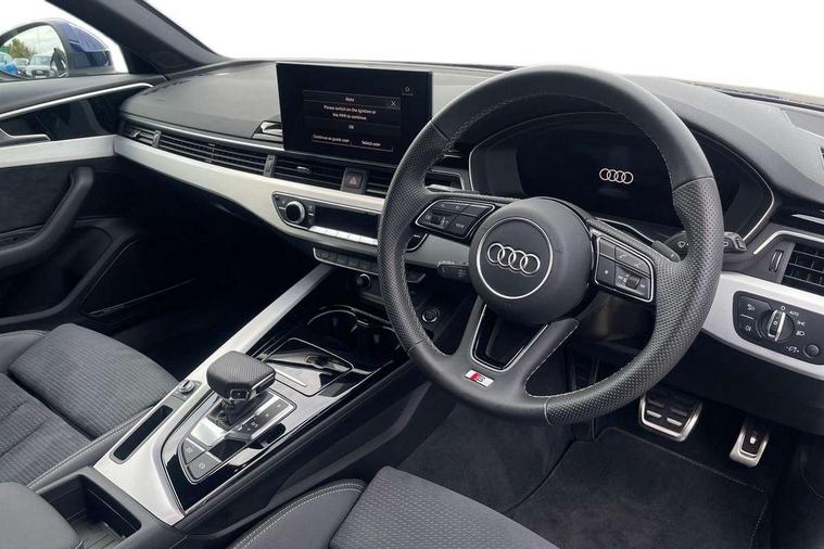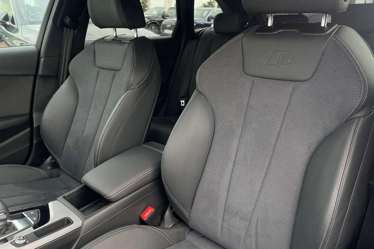 Audi connect safety and service (e-call), Audi drive select, Audi smartphone interface, Audi virtual cockpit, Automatic start-stop system with coasting functionality and efficiency programme, Bluetooth interface, Camera based traffic sign recognition, Electromechanical power steering, Email, calendar and text messages displayed via MMI, Front and rear parking sensors, Lane departure warning, MMI Navigation plus with MMI touch includes 10.1" high resolution colour MMI display, 3D map, Power operated tailgate, Rear view camera, Voice control system, 54 litre fuel tank, Sports suspension lowered by 23mm, 2 USB charging ports, 8 passive loudspeakers, DAB digital radio reception, Aluminium roof rails, Auto dimming rear view mirror, Body colour door handles, Body colour front spoiler lip, Body colour side sill trim, Body coloured door mirrors, Electric adjustable/heated/folding door mirrors with auto dimming, Grained matt black side air inlets with matt aluminium silver inlay, High beam assistant, Honeycomb structure radiator grille in grained matt black, LED headlights with LED rear lights + dynamic rear indicators + headlight adjustment and high beam, turning light + LED daytime running lights, LED third brake light, Matt aluminium silver tailpipe trim, Privacy glass, Rain and light sensors, Rear side wing doors, Rear wiper, S Line badges on the front wings, S line front and rear bumpers with side skirts, S Line rear diffuser in matt anthracite black with trim strip in matt aluminium silver, S Line roof edge spoiler, Variable intermittent front wash/wipe, Windscreen with acoustic glazing, 3 spoke high multi-function sports leather steering wheel grips in perforated leather with S badging including paddle shift, 4 way electric lumbar support for driver and front passenger, 40/20/40 split folding 3 rear seat bench in 3 parts with rear centre armrest, Black carpets, Black cloth headlining, Black perforated leather gearknob, Contrast stitching on seats, steering wheel and gear lever gaiter, Deluxe 3 zone electronic climate control, Electric load area cover, Front and rear head restraints, Front centre armrest, Heated front seats, Illuminated door sill trims with S logo, ISOFIX child seat mounting and top tether, Manual seat adjustment, Single front passenger seat, Stainless steel pedals and foot rest, High gloss package - A4, LED Interior light pack - A4/S4, 3 rear seatbelts, 6 airbags - Driver, front passenger, curtain and side windows, Attention and drowsiness assist, Electronic Stabilisation Control (ESC) including ABS, ASR and EDL, Hill hold assist, Multi collision brake assist, Pop-up bonnet for pedestrian protection, Pre sense city, Rear door child safety locks, Seatbelt monitoring, Warning triangle and first aid kit, Anti theft alarm, Anti theft wheel bolts, Central locking, Keyless Go, Matt brushed aluminium inlays, Tool kit, Tyre repair kit,