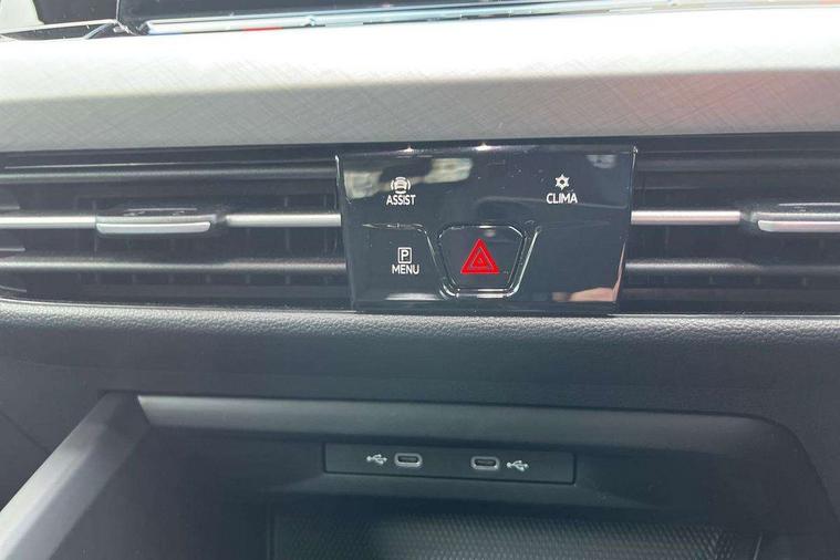 Adaptive cruise control (ACC) with speed limiter and front assist (reacting to vehicles pedestrians and cyclists), Car2X communication, Digital cockpit pro - 10.25" high resolution TFT dash display screen with customizable menus and information, Driver alert system, Dynamic road sign display, eCall - Emergency call service for SOS calls to emergency response, Lane assist, Mobile phone interface with wireless inductive charging function, Multifunction camera for distance control, Power assisted speed sensitive steering, Speedo, rev counter, electronic odometer, trip, service interval display, exterior temperature and fuel gauge, Start/Stop function, USB-C ports in the front and rear centre console with increased charging performance, Warning buzzer and light for front seatbelts unfastened, Wireless app connect, Petrol Particulate Filter, XDS electronic differential lock for improved traction and handling, Premium USB cable in choice of either Apple or Android smartphone compatibility, Ambient lighting, exterior illuminated styling elements at the sides, Auto dimming rear view mirror, Automatic headlamp activation with Coming home and Leaving home feature, Automatic headlights, Body colour bumpers, Body colour door handles, Body colour door mirrors with integrated indicators, Body colour rear roof spoiler, Electrically heated and adjustable door mirrors with memory feature, Front and rear electric windows, Heat insulating glass windscreen, Heated rear windscreen, High level 3rd brake light, Highway light, LED License plate illumination, Rain sensor, Rear fog light on one side and reversing lights on both sides, Rear lights incorporating LED technology, Rear side wing doors, Rear windscreen washer and wiper with interval delay, Welcome light, 10 colour interior ambient lighting, 12V socket in front centre console, 12V socket in luggage compartment, 3 rear head restraints, 3 seat bench in 2nd row, Drivers and front passengers sun visors with vanity mirrors, Front centre armrest with storage compartment, Front cupholders x 2, Front passenger seat, Front passenger seat lumbar adjustment, Front reading lights x 2 incorporating LED technology, Glovebox, Height adjustable passenger seat, Height and reach adjustable steering wheel, Isofix child seat preparation for 2 rear child seats and front passenger seat, Luggage compartment lighting, Maze cloth upholstery, Removable luggage compartment cover, Soul black instrument panel, Split folding backrest with centre armrest and unsplit rear seat bench, Storm grey roof lining in recycled material, Woven fabric storage compartments in front and rear doors, 3 point height adj front seatbelts + pretensioners, 3 rear three point seatbelts, ABS, Child locks on rear doors, Driver and front passenger airbag with front passenger airbag deactivation, Drivers and front passengers safety optimised head restraints, Electronic parking brake with auto hold, ESC (Electronic Stability Control), Extended pedestrian protection measures, Front centre airbag, Front disc brakes, Front side airbags with curtain airbags, Rear disc brakes, Two tone horn, Tyre pressure monitoring system, Alarm with interior protection and deactivation via infotainment system, Electronic engine immobiliser, High gloss black centre console, Silver silk decorative inserts in dash and front door panels,