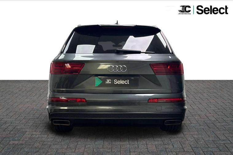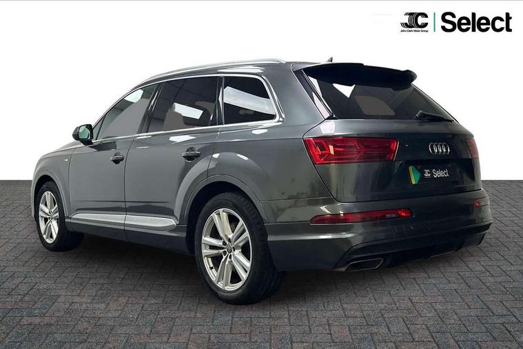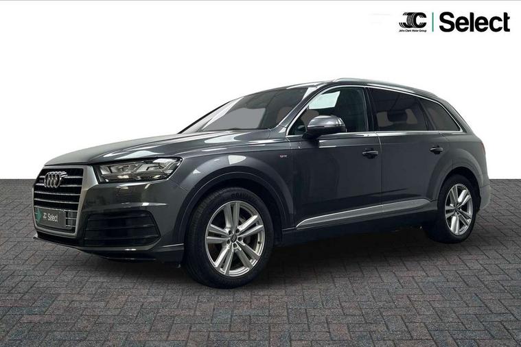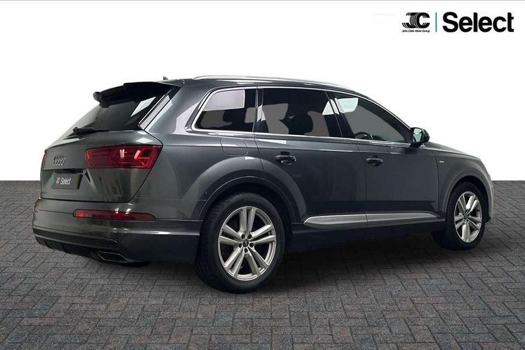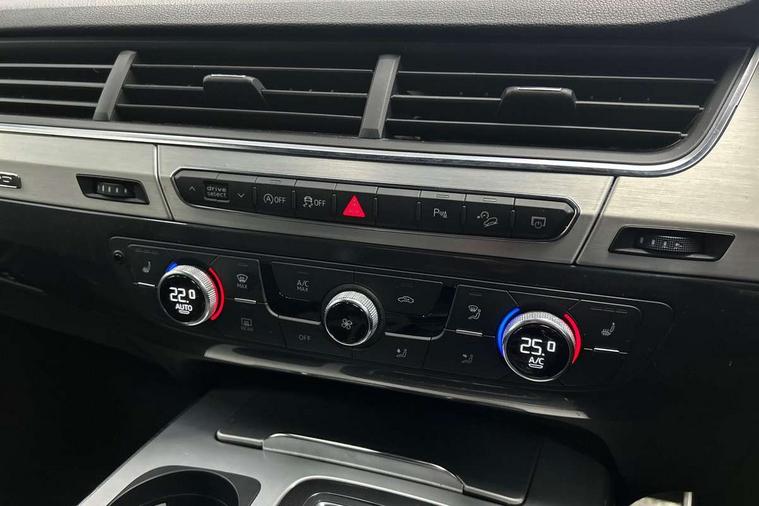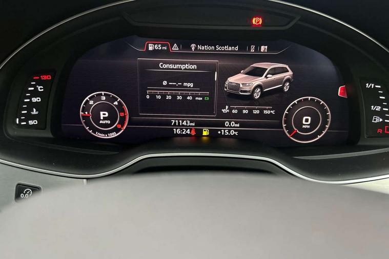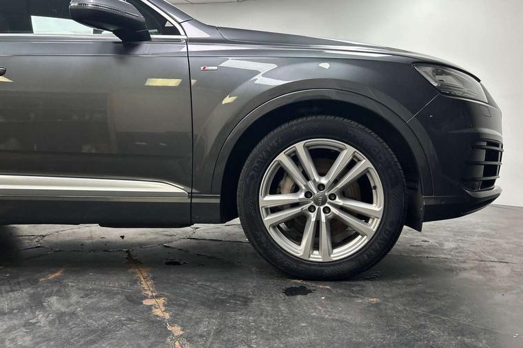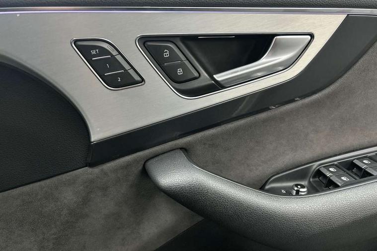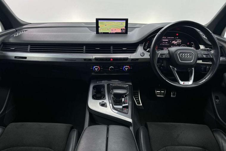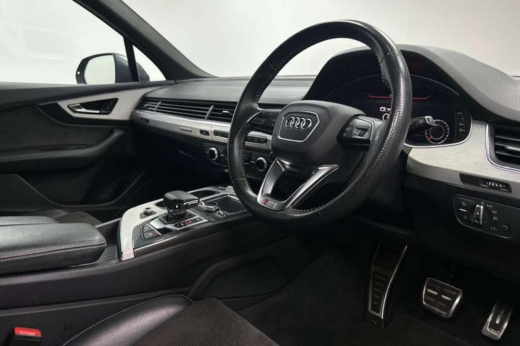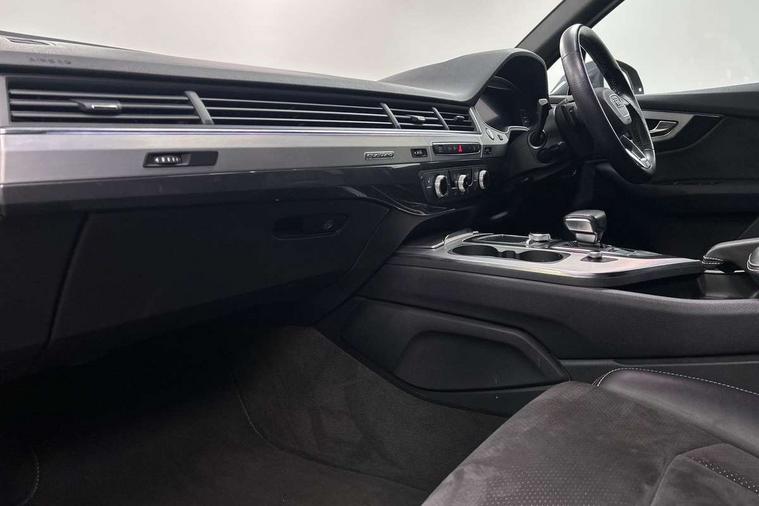8.3" central fold-down colour display with high-resolution graphics, Audi connect safety and service (e-call), Audi drive select, Audi phone box with wireless charging, Audi smartphone interface, Audi virtual cockpit - 12.3" high-resolution LCD display with fully customisable instrument cluster, Colour driver's information system display, MMI - Multi Media Interface control system, MMI navigation plus with MMI touch, Mobile phone preparation with bluetooth interface, Power tailgate, Service interval indicator, Servotronic speed related PAS, Speed limiter, Stop/start system, Voice control system, Adaptive air suspension, 2 USB ports, 2x SD card slot, Audi music interface, Aux-in socket, DAB digital radio module, DVD System, MMI radio plus, Acoustic windscreen, Auto dimming rear view mirror, Electric front+rear windows, Electric/heated/folding door mirrors with memory, Green tinted heat insulating glass, Headlight washers, High beam assist, LED daytime running lights, Loading sill protector in stainless steel, Platinum grey front lip spoiler, Privacy glass, Rain and light sensors, Rear wiper, Roof spoiler, S Line badge on wings, S Line body styling, S Line front and rear bumpers, 2 cupholders in front centre console, 35/30/35 split fold 2nd row seats, Door sill trims with S line logo, Electric 3rd row 50/50 split/fold, Electrically adjustable front seats with electric 4- way lumbar support and driver memory function, Front ashtray and cigar lighter, Front centre comfort armrest with storage + cupholders, Front head restraints, Front/rear floor mats, Gearshift paddles, ISOFIX child seat mounting for 6 passenger seats with front passenger airbag deactivation includes top tether, Leather gear knob, Luggage compartment cover, Rear centre armrest with 2 cupholders, Rear headrests, Stainless steel pedals, Sunvisors with illuminated vanity mirrors, Tool kit, Interior light pack - Q7, 3 point seatbelts on all seats, ABS+Electronic Brake force Distribution, Curtain airbags, Driver and passenger airbags, EDL + ASR, Electrically operated child locks on rear doors, Electromechanical parking brake, Electronic stability control, ESP, Front side airbags, Hill descent control, Hill hold assist, Seatbelt warning, Traction control, Tyre pressure loss indicator, Warning triangle and first aid kit, Advanced key, Anti theft alarm, Anti-theft wheel bolts, Immobiliser, Keyless Go access/ignition system, Remote central locking, Chrome door inserts, Tyre repair kit,