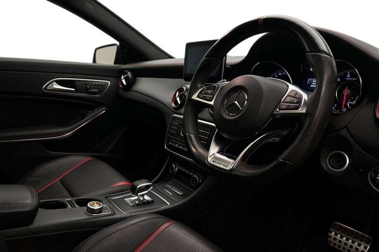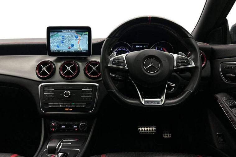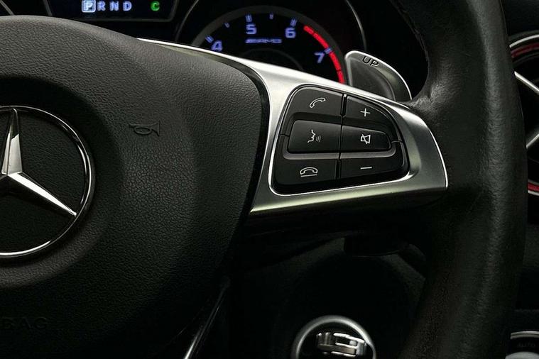 7" tablet style colour display, Active park assist with parktronic system, AMG speed sensitive sports steering, Attention assist, Bluetooth system, Collision prevention assist plus, Outside temperature gauge, Service indicator (ASSYST), Trip computer, DAB Digital radio, Media interface, Mercedes Audio 20 radio/single CD, USB connection, Adaptive brake lights, AMG body styling, Automatic headlights, Automatic rain sensing wipers, Bi-Xenon headlights with LED day running lights, Black high gloss beltline, Body colour bumpers, Body colour door handles, Electric adjustable heated door mirrors, Front and rear electric windows, Heated rear window with timer, Privacy glass, Twin black chrome exhaust pipes, 1/3 to 2/3 split folding rear seats, AMG floor mats, AMG illuminated door sills, AMG performance seats, Auto Mercedes-Benz child seat recognition sensor, Black roof lining, Dual zone climate control, Front centre armrest with storage box, Front footwell lights, Front head restraints, Gearshift paddles, Height adjustable front seats, Height/reach adjustable steering column, Illuminated glovebox, Isofix rear child seat fastenings, Leather gear knob, Load securing rings in luggage compartment, Multifunction steering wheel, Reading lights, Rear footwell lights, Rear head restraints, Sports pedals with rubber studs, Storage compartment under load area floor, Sunvisors with illuminated vanity mirrors, Tie down hooks in luggage area, Twin console mounted cup holders, 3x3 point rear seatbelts, ABS with Brake Assist, AMG high performance braking system, Child proof door locks, Drivers knee airbag, Dual stage driver/passenger airbags, Electronic parking brake, ESP with ASR, Front and rear seatbelt reminder, Front side airbags, Hill start assist, Tyre pressure monitoring system, Warning triangle and first aid kit, Window airbags, Anti theft alarm system, Immobiliser, Remote central locking, Black air vent surrounds with red insert, Tirefit,