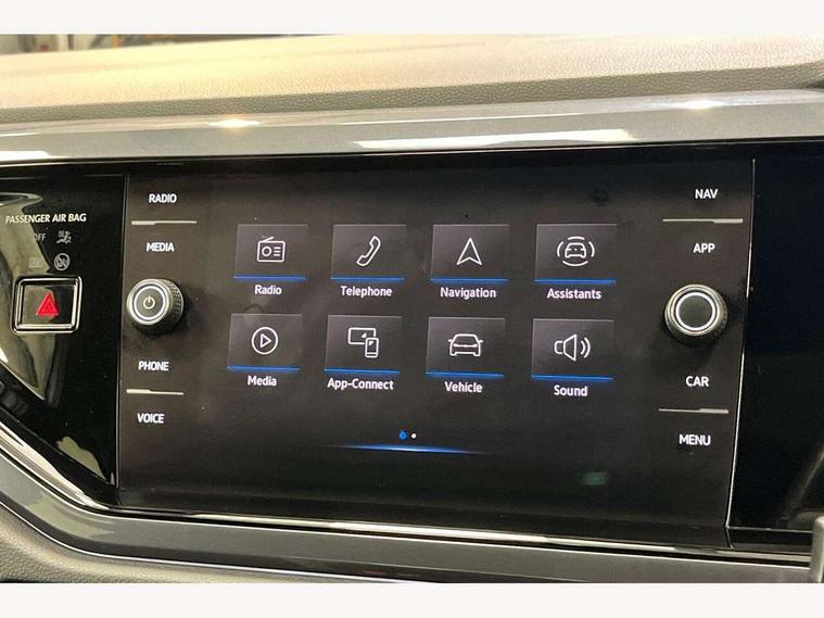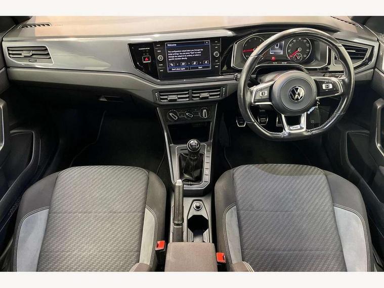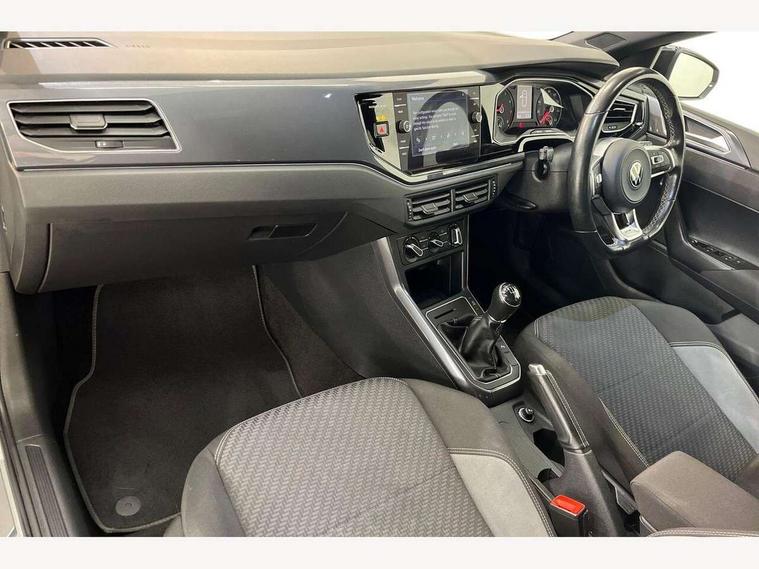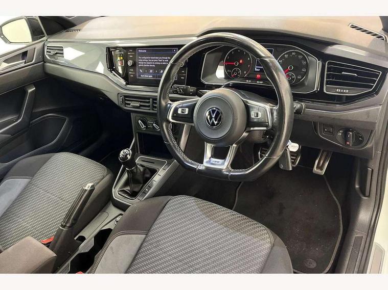 Digital clock, Driver alert system, Emergency call service, Lights on warning, Multifunction computer plus, Power assisted speed sensitive steering, Speedo and rev counter, electronic odometer, trip, service interval display and fuel gauge, Start/stop system, Volkswagen connect, Warning buzzer and light for front seatbelts unfastened, Wireless app connect, Battery regeneration during braking, Galvanished body, Diversity antenna for FM reception, Front and rear 6 speakers, Black grille with chrome surround, Body colour door handles, Body coloured side sills, Chrome trimmed strip on lower bumper, Electric front windows, Electrically adjustable and heated door mirrors with reverse activated kerb view adjustment on passenger's side, Front windscreen washers and wipers with 4 speed intermittent delay, Heated rear window with auto timer, High level 3rd brake light, LED darkened rear light clusters, LED daytime running lights, LED rear number plate lights, Left and right chrome effect trapezoid fascia exhaust tailpipe surrounds, Rear diffuser, Rear electric windows, Rear windscreen washer and wiper with interval delay, reverse activated, Unique R Line badging, 2 bag hooks in luggage compartment, 2 front cupholders and 12 V socket with cover, 3 rear head restraints, 60/40 split folding rear seat, Ambient lighting in front foorwell, front/rear door and dashboard light strips, Carbon flag cloth upholstery, Centre console storage with open storage compartment, Chrome-plated electric mirror adjustment switch surround, Chrome-plated electric window button surround, Driver and front passenger seat height adjustment, Driver and front passenger sunvisors with illuminated vanity mirrors, Dust/pollen filter, Folding rear seat backrest, Front + rear carpet mats, Front head restraints, Front seat backrest storage pockets, Front sport seats with lumbar adjustment and R line logo on seat backrest, Gear lever gaiter in black trim surround, Glovebox, Handbrake grip button in chrome effect, Height/reach adjustable steering column, Instrument lighting, adjustable panel illumination, Interior light with delay, Isofix Preparation 2 Rear child seats, Leather gear knob and handbrake grip, LED interior lighting - 2 reading lights front and rear with interior delay and dimming function, Luggage compartment cover, removable, Luggage compartment lighting, Luggage compartment with variable load floor, Stainless steel pedals, Storage compartment in front doors, Storage compartment in rear doors, Storage compartment under front seats, Three spoke leather trimmed multifunction steering wheel with aluminium inserts and R Line Logo, Titanium black roof lining and sun visors, Unique R Line door sill protectors, Light and sight pack - Polo, R Line styling pack - Polo, 3 point height adj front seatbelts + pretensioners, 3x3 point rear seatbelts, ABS, Automatic post collision braking, Driver/front passenger airbag, Drivers and front passengers safety optimised head restraints, ESP with EDL + ASR, Front and rear passenger curtain airbags, Front passenger airbag deactivation, Front seat side impact airbags, Front/rear disc brakes, HBA (Hydraulic Brake Assist), Hill hold control, Single tone horn, Tyre pressure monitoring system, Alarm with interior protection and deactivation via infotainment system, Electronic engine immobiliser, Remote central locking with 2 remote folding keys, Chrome plated air vent surround, Chrome plated instrument surrounds, Shadow steel decorative inserts,