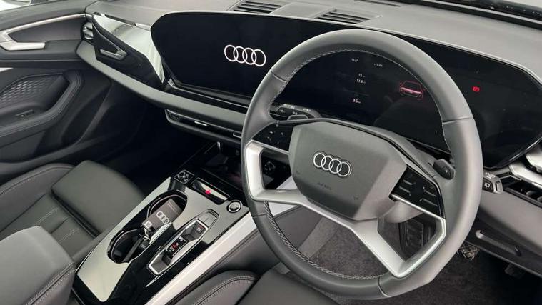 Adaptive cruise control, Advanced driver attention and fatigue montior, Audi application store, Audi assistant, Audi connect emergency call and service, Audi drive select, Audi smartphone interface, Audi virtual cockpit plus with 11.9" OLED colour display, Automatic start/stop system with coasting functionality, Camera based traffic sign recognition, Intersection assist, Lane departure warning, MMI navigation plus with high resolution 14.5" OLED touchscreen colour display, Park assist plus, Parking system plus with 360 display, Progressive steering with servotronic, Rear view camera, Swerve assist and turn assist, Traffic sign based speed limiter, Comfort suspension, 2 USB-C ports in both the front and rear, Audi sound system impressive sound with 10 loudspeakers including centre speaker and subwoofer, 6-channel amplifier with a total output of 180 watts, DAB digital radio reception, Smartphone compartment with wireless charging, Aluminium roof rails, Aluminium window trims, Auto dimming rear view mirror, Body colour door mirrors, Door mirrors - electrically adjustable, heated, folding and auto dimming on both sides, Front and rear electric windows, Front door sill trims with aluminium inlays, illuminated, High beam assist, LED headlights Plus incl. digital daytime running lights, turning light, all-weather light, motorway light, manouevring light and intersection light, LED rear lights pro incl. dynamic rear indicators and illuminated light strip with animated coming and leaving home function, LED third brake light, Rear and side windows with heat insulating glass, Rear side wing doors, Rear wash/wipe, Sport bumpers, radiator grille and diffuser in scandium grey and diffuser insert in matt selenite silver, White rhombus logo projection light in exterior mirrors, Windscreen with acoustic glazing, 3 rear headrests, 3 seat rear bench, 3-zone automatic climate control, 40:20:40 split folding rear seat bench with centre armrest and cup holders, Comfort front centre armrest, Front and rear floor mats, Front seats with manual adjustment for position and 4-way electric lumbar support, Front sport seats with integrated head reastrains, Heated front seats, i-Size child seat mounting on the front passenger side and outer rear seats, i-Size and top tether on the outer rear seats, Luggage compartment lid, electrically opening and closing, Manual steering column height and depth adjustment, Rock grey cloth headlining, Single front passenger seat, Twin leather upholstery, Twin spoke leather steering wheel with multi-function buttons with touch control, shift paddles and trim in chrome look, Ambient lighting package plus - A5, 3x3 point rear seat belts, Driver airbag, Electric child safety locks, First aid kit with warning triangle and vests, Front emergency brake assist, Front passenger airbag, Front passenger airbag deactivation, Front side airbags with head airbag system and front interaction airbag, Hill hold assist, Seat belt monitoring with rear seat occupant reminder, Tyre pressure loss indicator, Anti theft alarm, Anti-theft wheel bolts, Keyless Go, Accent surfaces and control buttons in gloss black, Black dashboard with contrast stitching, Inlays in matt brushed aluminium, silver, Softwrap in leatherette with contrast stitching, Upper and lower interior elements in leatherette, Tyre repair kit,