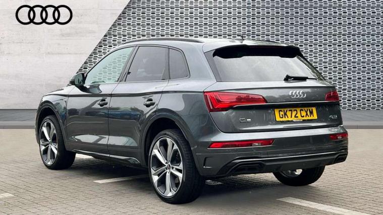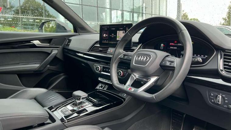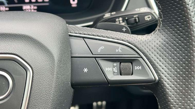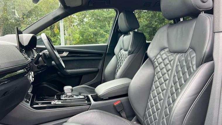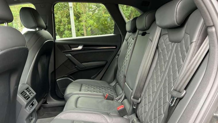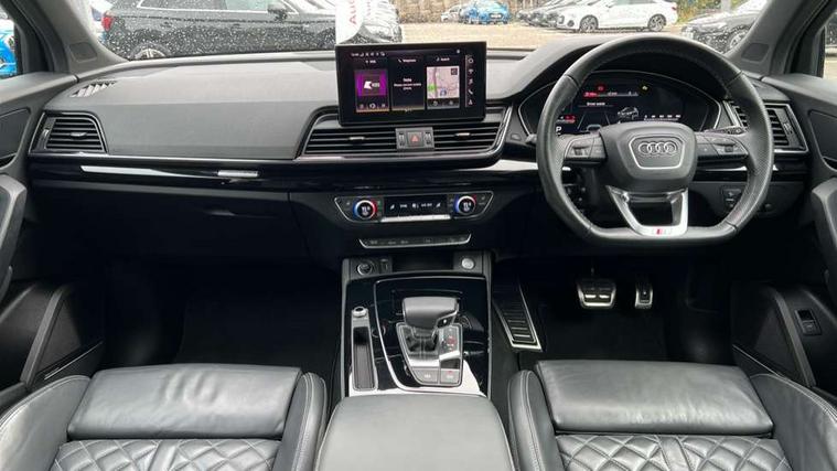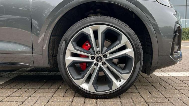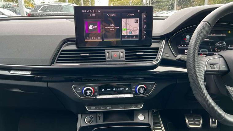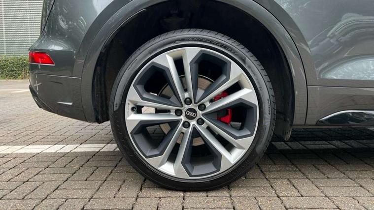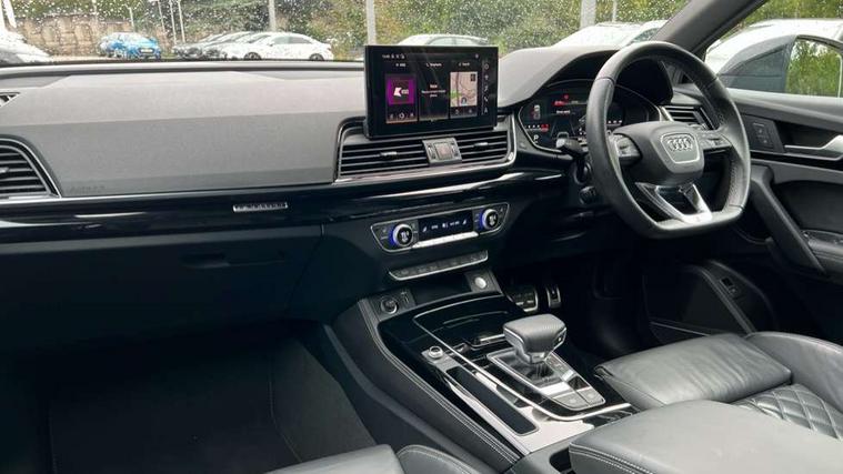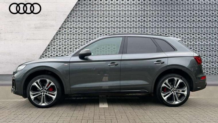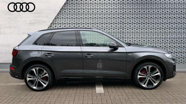 Audi connect safety and service (e-call), Audi connect with Amazon Alexa Integration, Audi drive select, Audi virtual cockpit plus with 12.3" screen and three different layout designs, Audi wireless smartphone interface, Automatic start-stop system with coasting functionality and efficiency programme, Bluetooth interface, Electro - mechanical power assisted steering, MMI navigation plus with 10.1" touch screen, Power tailgate, Reversing camera, Service interval indicator, Voice control system with Audi hotword activation "Hey Audi", Diesel particulate filter, Quattro on demand, S line sports suspension, 2 x USB charging port with aux input socket, DAB Digital radio, Acoustic windscreen, Audi matrix LED headlights with dynamic front and rear indicators, Audi rings at front and rear in black, Audi rings decal on rear doors, Auto dimming door mirrors, Auto dimming rear view mirror, Automatic headlights and windscreen wipers, Black door mirrors, Black roof rails, Body colour bumpers, Body colour underbody protection, Chrome plated exhaust trims, Daytime running lights, Door sills in Selenite silver, Electric adjustable/heated/folding door mirrors, Front air inlet surrounds in titanium black, Front and rear electric windows, Headlight washers, High gloss black B pillar trims and triangular rear door trim, High level LED brake light, Rear chrome trim strip below lights, Rear privacy glass and rear side windows, Rear side wing doors, Rear wiper, Roof bars, S Line rear spoiler, 3 rear headrests, 4 way electric lumbar support for driver and front passenger, 40:20:40 split folding 3 rear bench seat in 2nd row with rear centre armrest, Black cloth headlining, Comfort front centre armrest, Contrast stitching on seats, steering wheel and gear lever gaiter, Deluxe 3 zone electronic climate control, Electrically adjustable front seats, Fine Nappa leather upholstery with diamond pattern contrast stitching + front sport seats with S embossed logo, Front/rear floor mats, Gear lever in black leather, Heated front seats, Height adjustable front head restraints, Height/reach adjustable steering column, Illuminated door sill trims with S logo, ISOFIX child seat mounting and top tether, Rear seat bench plus, Removable luggage compartment floor, Single front passenger seat, Stainless steel pedals, Sunvisors with vanity mirrors, Black styling package - Q5 Edition 1, Extended interior upholstery pack - Q5, Extended LED Interior multi coloured Lighting Pack - Q5, 3 point seatbelts on all seats, 6 airbags - Driver, front passenger, curtain and side airbags, Electrically operated child locks on rear doors, Electromechanical parking brake, Electronic stabilisation control including ABS, ASR and EDL, Front and rear brake calipers painted in red, Front passenger airbag deactivation, Hill descent control, Hill hold assist, Multi collision brake assist, Pop-up bonnet for pedestrian protection, Pre sense city, Seat belt force limiter, Seatbelt monitoring, Tyre pressure warning, Warning triangle and first aid kit, Anti theft alarm, Anti-theft wheel bolts, Keyless Go access/ignition system, Remote central locking, Piano black finish inlay,