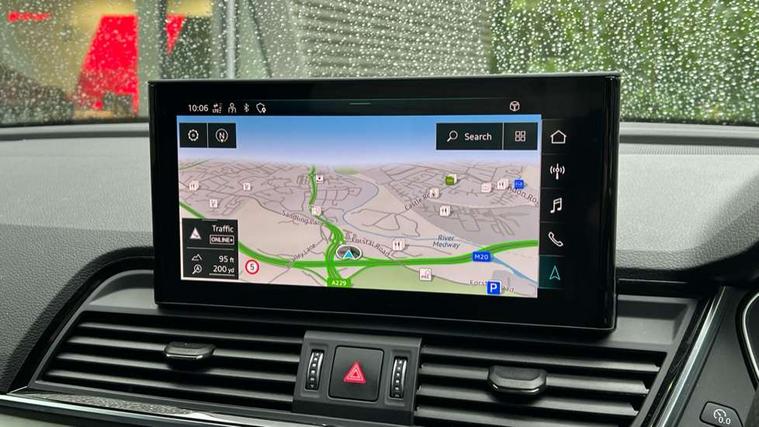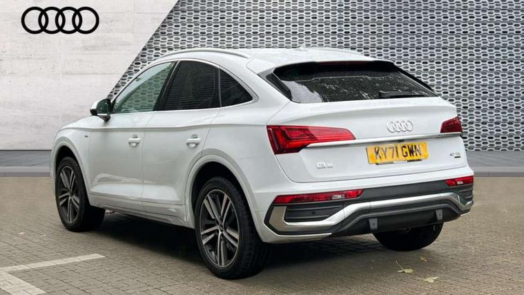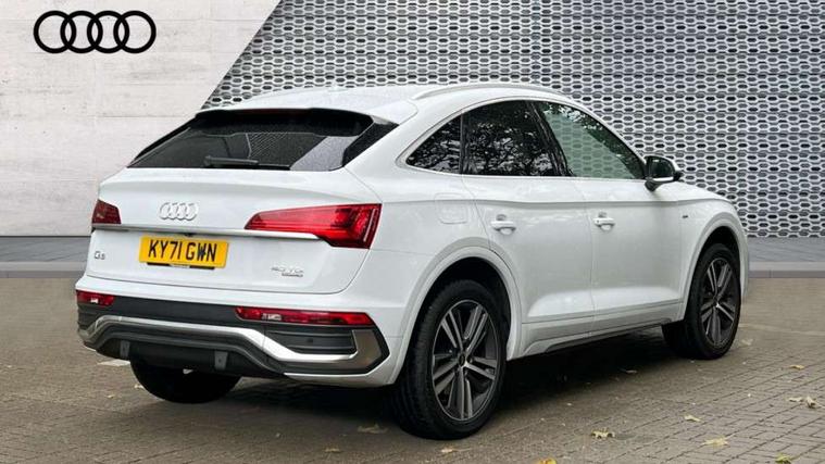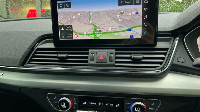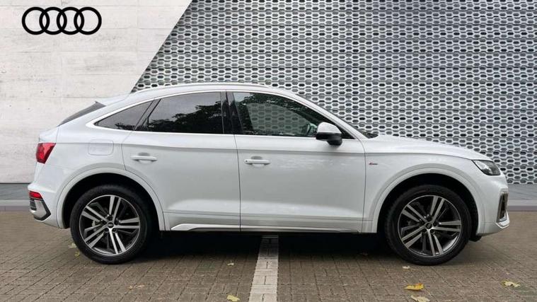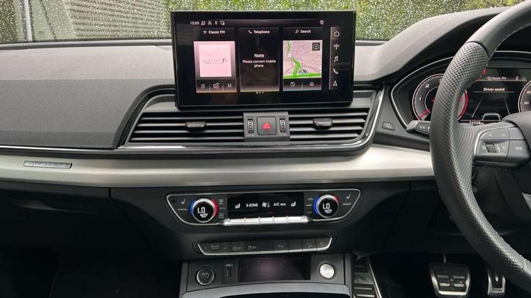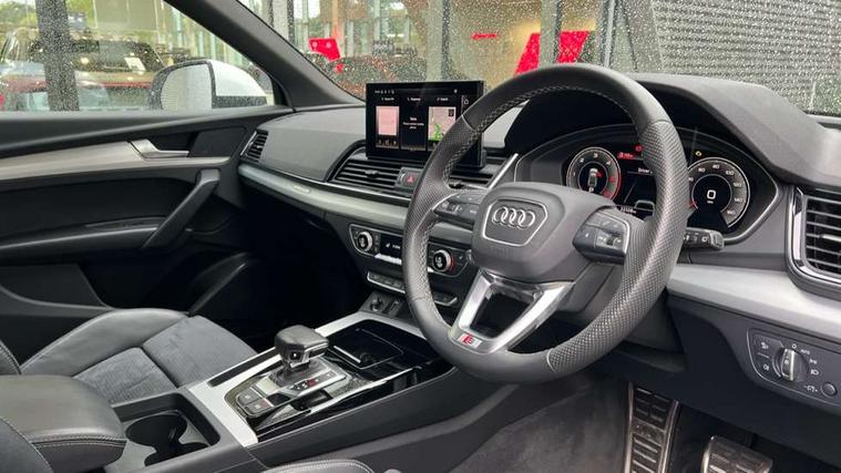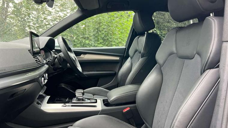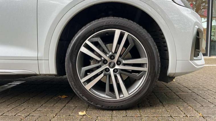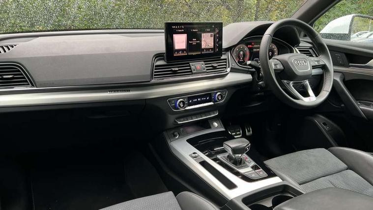 Audi connect safety and service (e-call), Audi connect with Amazon Alexa Integration, Audi drive select, Audi virtual cockpit plus with 12.3" screen and three different layout designs, Audi wireless smartphone interface, Automatic start-stop system with coasting functionality and efficiency programme, Bluetooth interface, Electro - mechanical power assisted steering, MMI navigation plus with 10.1" touch screen, Power tailgate, Reversing camera, Service interval indicator, Voice control system with Audi hotword activation "Hey Audi", Diesel particulate filter, Quattro on demand, S line sports suspension, DAB Digital radio, Acoustic windscreen, Aluminium roof rails, Audi matrix LED headlights with dynamic front and rear indicators, Auto dimming door mirrors, Auto dimming rear view mirror, Automatic headlights and windscreen wipers, Body colour door mirrors, Body colour rear diffuser with matt aluminium silver surrounds, Body colour underbody protection, Chrome plated exhaust trims, Daytime running lights, Door sills in Selenite silver, Electric adjustable/heated/folding door mirrors, Front air inlet surrounds in aluminium, Front and rear electric windows, Front radiator grille in honeycomb design, Headlight washers, High level LED brake light, Lower bumpers painted in contrast Manhattan grey, Rear chrome trim strip below lights, Rear privacy glass and rear side windows, Rear side wing doors, Rear spoiler, Rear wiper, Roof bars, S Line badges on the front wings, S Line front and rear bumpers, S Line side skirts, 2 x USB charging port with aux input socket, 3 rear headrests, 40:20:40 split folding 3 rear bench seat in 2nd row with rear centre armrest, Black cloth headlining, Comfort front centre armrest, Contrast stitching on seats, steering wheel and gear lever gaiter, Deluxe 3 zone electronic climate control, Front head restraints, Front/rear floor mats, Gear lever in black leather, Heated front seats, Height/reach adjustable steering column, Illuminated door sill trims with S logo, ISOFIX child seat mounting and top tether, Manual seat adjustment with 4-way electric lumbar support, Removable luggage compartment floor, Single front passenger seat, Stainless steel pedals, Sunvisors with vanity mirrors, Trunk roller cover, High gloss pack - Q5, LED interior light pack - Q5, 3 point seatbelts on all seats, 6 airbags - Driver, front passenger, curtain and side airbags, Electrically operated child locks on rear doors, Electromechanical parking brake, Electronic stabilisation control including ABS, ASR and EDL, Front passenger airbag deactivation, Hill descent control, Hill hold assist, Multi collision brake assist, Pop-up bonnet for pedestrian protection, Pre sense city, Seat belt force limiter, Seatbelt monitoring, Tyre pressure warning, Warning triangle and first aid kit, Anti theft alarm, Anti-theft wheel bolts, Keyless Go access/ignition system, Remote central locking, Matt brushed aluminium inlays,