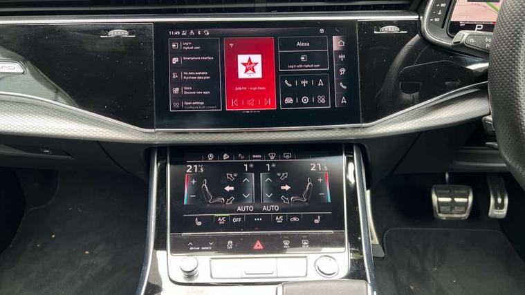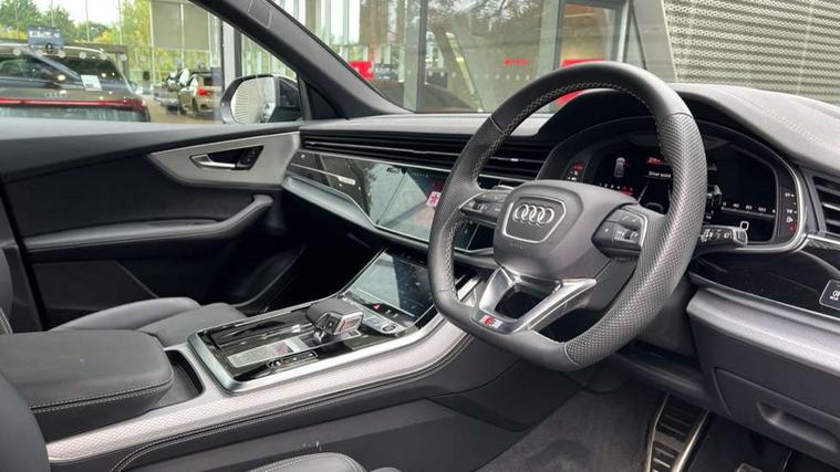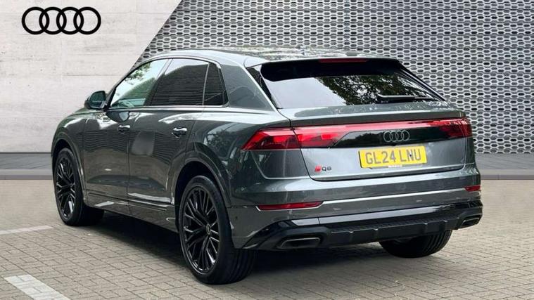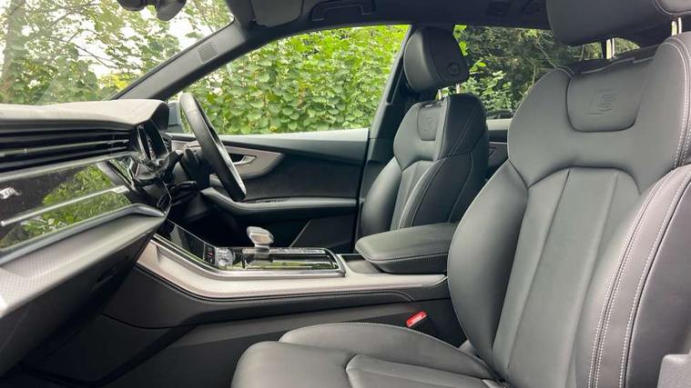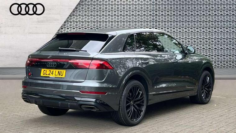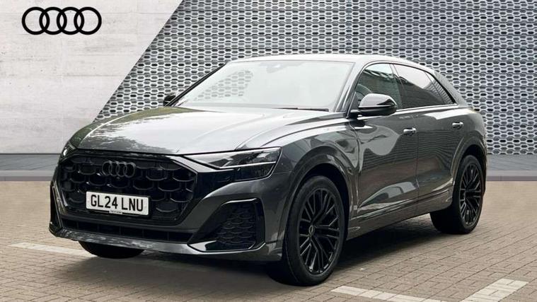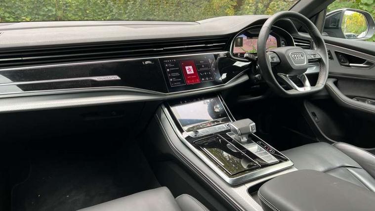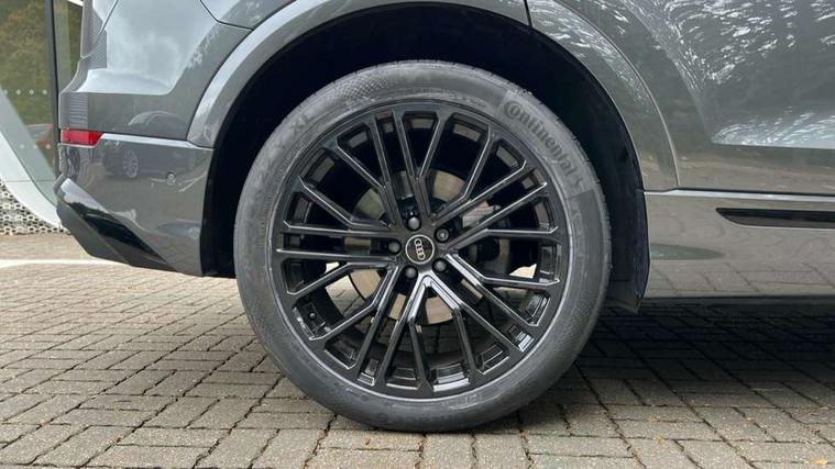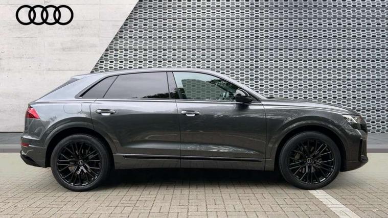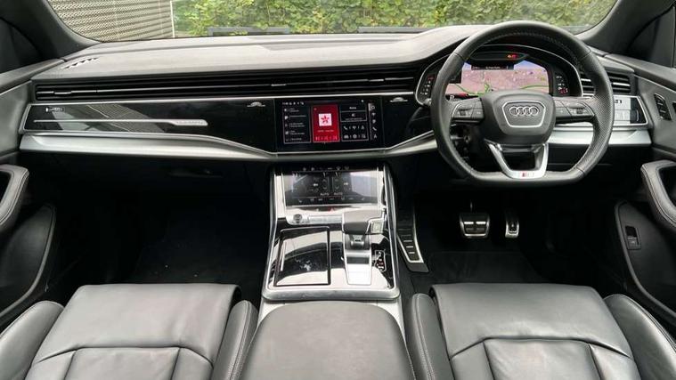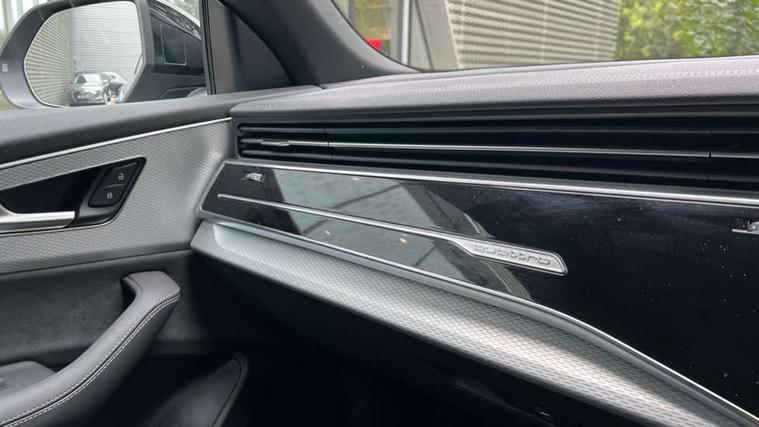 10.1" and 8.6" Dual colour touchscreens, 2 USB C ports with charging functionality in the rear, 360 degree camera with top view, Audi application store, Audi connect safety and service (e-call), Audi connect with Amazon Alexa Integration, Audi drive select, Audi phone box light with wireless charging, Audi virtual cockpit plus, Automatic start/stop system, Bluetooth, Electro-mechanical PAS, Head up Display, Low washer fluid indicator, MMI navigation plus with MMI touch, Natural voice recognition, On board computer, Operating buttons in black, glass look with haptic feedback, Power operated tailgate, Remote park assist plus, Service interval indicator, Smartphone interface includes wireless Apple carplay/Android Auto, 48V Mild hybrid technology, Adaptive sport air suspension, Diesel particulate filter, Quattro all wheel drive with self locking centre differential, Audi music interface with 2 USB ports with charge and data functions, Aux-in socket, Bang + Olufsen sound system, DAB Digital radio, 3rd brake light, Anthracite black door mirrors, Audi beam, Auto dimming frameless rear view mirror, Black exhaust tailpipes, Black single frame mask, Coming/leaving home lighting function, Digital OLED rear combination lamps, Electric front+rear windows, Electrically folding auto dimming/adjustable/heated door mirrors with memory function, LED side indicators and kerb view function for passenger side, Headlight washers, Heat insulating glass in windshield, LED rear light plus, LED signature daytime running lights, Matrix LED headlights with dynamic front and rear indicators, Platinum grey front spoiler lip and diffuser insert with honeycomb grille in black, Privacy glass - dark tinted rear and rear side windows from B-pillar backwards, Rain and light sensors, Rear side wing doors, Rear wiper, Singleframe grille surround in matte platinum grey, 3 bench rear seats in 2nd row, 3 spoke flat bottomed high multi-function leather sport steering wheel with gearshift paddles, 4 zone deluxe automatic climate control, 4-way lumbar support for front seats, 40:20:40 split folding rear bench seat, Black cloth headlining, Comfort front centre armrest, Driver seat memory function, Electrically adjustable front seats, Front head restraints, Front/rear floor mats, Heated front and outer rear seats, ISOFIX child seat mounting for front passenger seat and 2 outer rear seats with top tether child seat mounting for all 3 rear seats, LED interior ambient lighting, Luggage compartment sill protection in stainless steel, Rear centre armrest with 2 cupholders, Rear headrests, Seat cushion displaceable by 100mm in the ratio 60:40, Single front passenger seat, Stainless steel pedals, Sunvisors with illuminated vanity mirrors, Upper dashboard with contrast stitching and lower dashboard in leatherette, Black styling pack plus - Q8, City assist pack - Q8, Multi coloured extended LED Interior lighting pack - Q8, 3 point seatbelts on all seats, Audi pre sense front, Driver and front passenger, front side and curtain airbags, Electromechanical parking brake, Electronic Stability Control (ESC) including ABS, ASR and EDL, Front passenger airbag deactivation, Hill descent control, Hill hold assist, Predictive pedestrian protection, Seatbelt monitoring, Traction control, Tyre pressure loss indicator, Warning triangle and first aid kit, Advanced key, Anti theft alarm with tow away protection, Anti-theft wheel bolts and wheel loosening detection, Electronically operated child lock, Immobiliser, Decorative inserts in matte brushed aluminum with linear structure in Silver, 22" x 10.0J 10 spoke Y style black metallic audi sport alloy wheels, Tool kit, Tyre repair kit,
