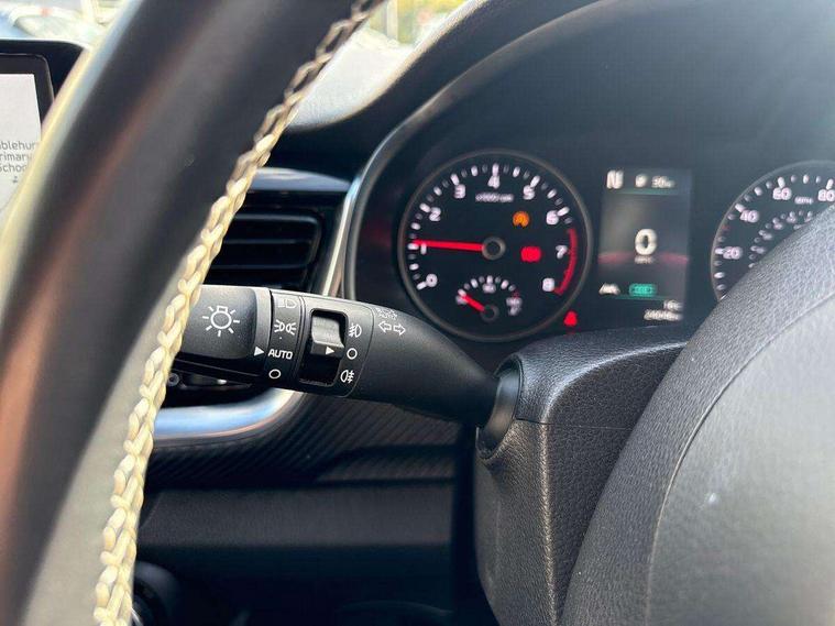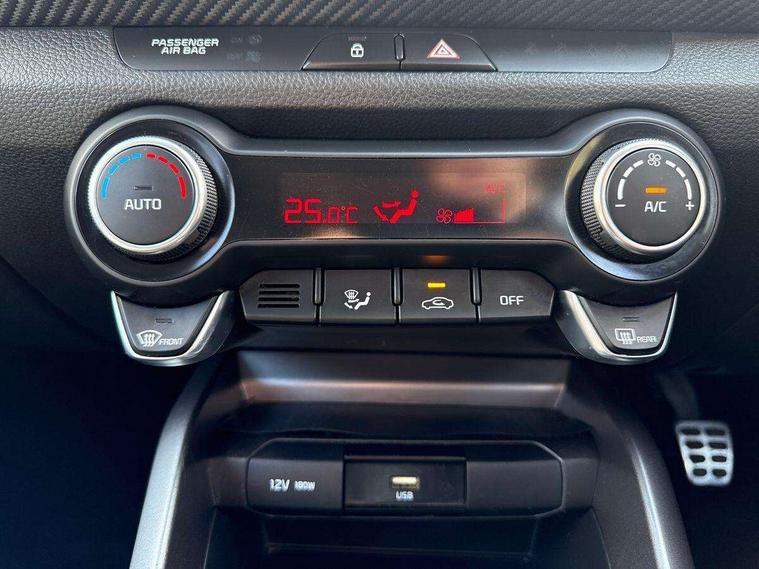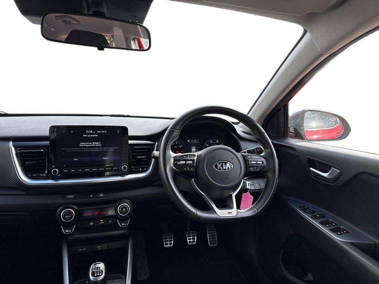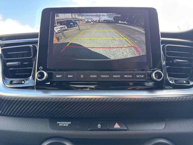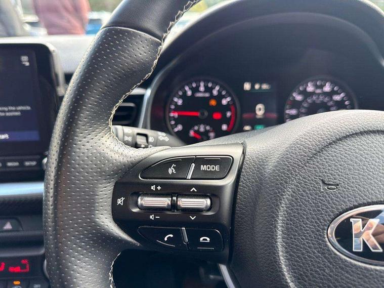 4.2" supervision colour cluster display, 8" touchscreen navigation, Apple car play/Android Auto with voice control, Cruise control + speed limiter, Drive mode selector, Electric power steering, Emergency stop signalling system, External temperature display, Forward Collision-Avoidance Assist (FCA) - City/Pedestrian/Cyclist, Kia connected services featuring TomTom live, Lane keeping assist system (LKAS), Driver attention warning (DAW) and High beam assist (HBA), Rear parking sensor, Reversing camera system, Trip computer, UVO connect, Intelligent Stop and Go, Audio system with 6 speakers, Bluetooth with music streaming, Front USB port, Rear USB port, Steering wheel mounted controls, Aero blade type windshield wipers, All round electric windows with drivers auto up/down function, Automatic defog system, Automatic headlights control, Black rear spoiler with high mounted braking light, Black side sill, door garnish and wheel arch trims, Black/body colour bumpers, Body coloured exterior door handles, Chrome side window trim, Electrically adjustable/heated/folding door mirrors with LED indicators, Front and rear silver skid plates, Gloss black door mirrors with matt black lower housing, GT-Line body kit, Headlight levelling device, Heated rear window, High gloss black and satin radiator grille, LED Bi-function projection headlights with static bending, LED daytime running lights, LED front fog lights, LED rear combination lights, Privacy glass - Rear windows and tailgate, Rear fog lights, Rear wash/wipe, Roof rails, Shark fin antenna, Solar windshield glass, Speed variable front wipers, Tinted glass, Welcome and follow-me home light functionality, Windscreen Washer Level Warning, 12V power point front, 60/40 split folding rear seat, Air filter, All-round height adjustable headrests, Aluminium pedals, Automatic air conditioning, Centre armrest storage box, Centre console with cupholders, D-Cut perforated leather trimmed steering wheel, Dash illumination dimmer switch, Driver's seat height adjuster, Dual Height Luggage Area Floor, Front and centre cabin lights, Front and rear door map pockets with bottle holder, Gear shift indicator, Glovebox illumination, GT-Line cloth/faux leather upholstery, ISOFIX Child seat top tethers and anchor fixings outer rear seats, Leather trimmed gearshift, Luggage area light, Luggage area parcel shelf, Luggage net with hooks, Overhead console lamp, Overhead console with sunglasses cases, Passenger front seatback pockets, Satin chrome interior door handles, Sunvisors with vanity mirror illumination (Driver and front passenger), Tilt/telescopic adjustable steering wheel, ABS with Electronic Brakeforce Distribution (EBD) and Brake Assist System (BAS), All round 3-point seatbelts, Electronic stability control (ESC) and vehicle stability management (VSM), Front passenger airbag cut-off switch, Front seatbelt pretensioners + load limiters, Height adjustable front seatbelts, Hill start assist control (HAC), Impact sensing auto door unlocking, Rear seat Occupancy alert, Seatbelt reminder warning, Twin curtain airbags, Twin front airbags, Twin front side airbags, Tyre pressure monitoring system, Alarm system, Door deadlocks, Engine immobiliser, Locking wheel nuts, Remote central door locking with fold away key, Speed sensitive auto door locking, Visible vehicle identification number, High gloss black centre fascia, 17" GT-Line alloy wheels, Tyre mobility kit,