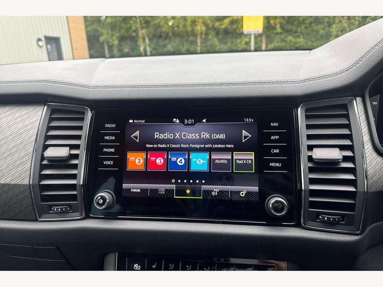 Bluetooth system, Digital voice enhancement, E-call, ECO Stop/start function, Exterior temperature indicator, Rear view camera, Smartlink wireless for apple carplay and wired for android auto, Speed limiter, Tailgate unlocking from outside, USB C Port x 2 in front centre console, Wireless charging, 8 Speakers, DAB Digital radio, Aero front windscreen wipers with intermittent function, Aero rear window wiper, Auto dimming rear view mirror, Black wheel arch surrounds, Body colour bumpers, Body colour door mirrors and handles, Chrome front grille, Chrome roof rails with chrome window surround, Daytime running lights, Electric adjustable/heated/folding door mirrors, driver side auto dimming with boarding sports and memory function, Electric front and rear windows, Extended rear spoiler with finlets in gloss black, Front fog lights, Full LED matrix headlights with AFS (adaptive front light system), cornering function and AWL (all weather lighting system), Headlight washers, Heated rear window, Invisible tailpipe, LED rear fog light, LED third brake light in rear spoiler, Light assistant (coming/leaving home/tunnel light), Off-road style lower front bumper element, Privacy glass, Rain and light sensors, Rear LED lights (high functionality) with welcome effect and dynamic indicators, Rear side wing doors, Safety reflectors on front and rear doors, Window control switches with black trim, 12V socket in boot, 2 rails with 2 hooks, 2 seat bench in 3rd row, 3 seat bench in 2nd row, 4 foldable roof handles with rear coat hooks, 60:40 foldable rear seat with sliding adjustment and backrest angle adjustment, Bottle holders in door panel in the 1.5 litre front and 1 litre rear, Cargo storage compartments, Chrome headlight control button, Chrome interior door handles, Coat hooks on B pillar, Covered storage compartment on driver side, Front centre armrest with storage compartment, cup holder and 12V socket, Front courtesy lights, Gear shift lever with chrome frame and black gloss insert, Grey stitching in front and rear armrests and door armrests + door inserts, Height adjustable front headrests, Illuminated and cooled glovebox, Illuminated glovebox, Illuminated luggage compartment, Isofix child seat fittings in outer rear seats with top tether, Manually adjustable steering column, Net programme in boot (1x horizontal Net, 2x vertical Nets), Overhead glasses storage compartment, Pollen filter, Rear centre armrest with cupholders, Single front passenger seat, Sliding trunk cover, Small Bags on the inner sides of the front backrests, Sunvisors with illuminated vanity mirrors, Three rear height adjustable headrests, Ticket holder on A Pillar, Umbrella in door panel, Variable boot floor, Auto door release and activation of warning lights in the event of an accident, Child locks on rear doors, Driver and front passenger airbag with knee airbag and front passenger airbag deactivation, Electronic parking brake with hill start assist, Emergency rear braking signal, ESC (incl. ABS+MSR+ASR+EDS+HBA+DSR+RBS+MKB), Front assist with autonomous emergency braking, Front side airbags with curtain airbags, Fuel cut off safety device, Height adjustable front 3 point seatbelts + pretensioners, Hill hold control, Rear disc brakes, Safety vest holder in door, Seat belt reminder for all seats, Three point rear seat belts, Two tone horn, Tyre pressure monitor, Alarm with interior monitoring and tilt sensor with safe function, Anti-theft wheel bolts, Immobiliser, Keyless entry and start system (KESSY), Remote central locking with 2 keys, Grey stitching in dashboard, Linear diamonds decorative inserts, Temporary spare wheel (space saver),