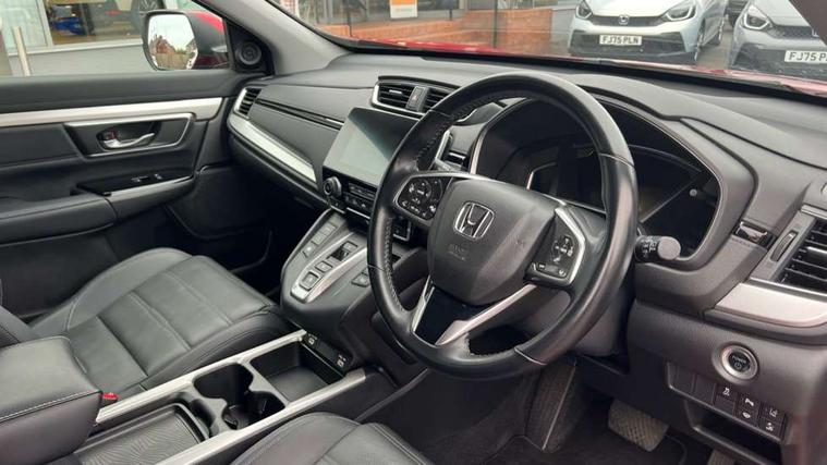 Adaptive cruise control, Agile handling assist, BLIS (Blind Spot Information System) with dual power heated blind spot mirrors, Bluetooth hands free telephone connection, E-call, Economy mode, Electric power steering, Emergency stop signalling system, Forward collision warning, Front parking sensors, Honda CONNECT with GARMIN Navigation + 7" touchscreen, DAB radio, Apple CarPlay, Android Auto, Aha app integration and internet browsing, Intelligent multi info display, Lane departure warning system, Lane keep assist system, Low speed following, Rear parking sensors, Rear view camera, Road departure mitigation, Speed limiter, Traffic sign recognition, Vehicle stability assist, 2 USB sockets in rear, 2x USB sockets in front, 9 speakers, DAB Digital radio, Dashboard centre speaker, Front tweeters, Steering wheel mounted controls, Subwoofer, Aspheric door mirrors, Auto dimming rear view mirror, Automatic headlights with dusk sensor, Body colour bumpers, Body colour door handles, Cornering light, Door mirrors tilt when reversing, Electric front windows/one touch facility, Electric rear windows + one touch facility, Electrically adjustable and heated door mirrors, Electrically retractable door mirrors, Front windscreen de-icer, High beam assist, LED daytime running lights, LED front fog lights, LED Headlights, LED rear lights, Rain sensor, Rear privacy glass, Rear side wing doors, Rear wiper, Roof rails, Shark fin roof aerial, Tailgate spoiler, Third brake light, Welcome home function, 3 seat bench in 2nd row, 60/40 split folding rear seat, Accessory sockets, Ambient interior lighting, AWD emblem rear, Cargo hooks, Courtesy lights, Driver's electric adjustable lumbar support, Driver/passenger front seatback pockets, Driver/passenger sunvisors with illuminated vanity mirrors, Dual zone automatic climate control, Electric lumbar adjustment on passenger's seat, Footwell ambient lighting, Front centre armrest, Front map lights, Front passenger seat height adjust, Heated front seats, Height adjustable driver's seat, Hybrid emblem, Illuminated glovebox, Instrument panel with garnish wood film, Isofix child seat preparation, Leather steering wheel, Leather upholstery, Paddle shift controls, Rear air vents, Rear centre armrest, Rear headrests, Rear reading lights, Rear seat conversation mirror, Silver interior door handles, Single front passenger seat, Sunglasses holder with mirror, Tilt/telescopic adjustable steering wheel, Tonneau cover, Trunk light, 5 x 3 point seatbelts, ABS/EBD, Anti-whiplash front headrests, Brake assist function, Collision mitigation braking system, Deflation detection system, Driver airbag, Electronic parking brake with auto hold, Front and rear curtain airbags, Front and rear seat belts with emergency locking retractor (ELR), Front side airbags, Hill start assist, Manual child lock in rear doors, Passenger airbag deactivate switch, Honda super locks, Immobiliser, Security alarm, Smart entry + Smart start, Ultrasonic security sensor, Tyre repair kit,