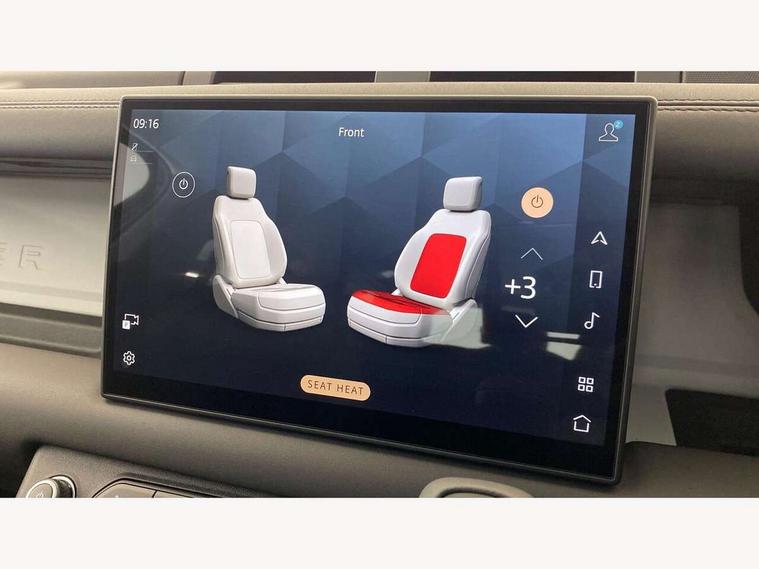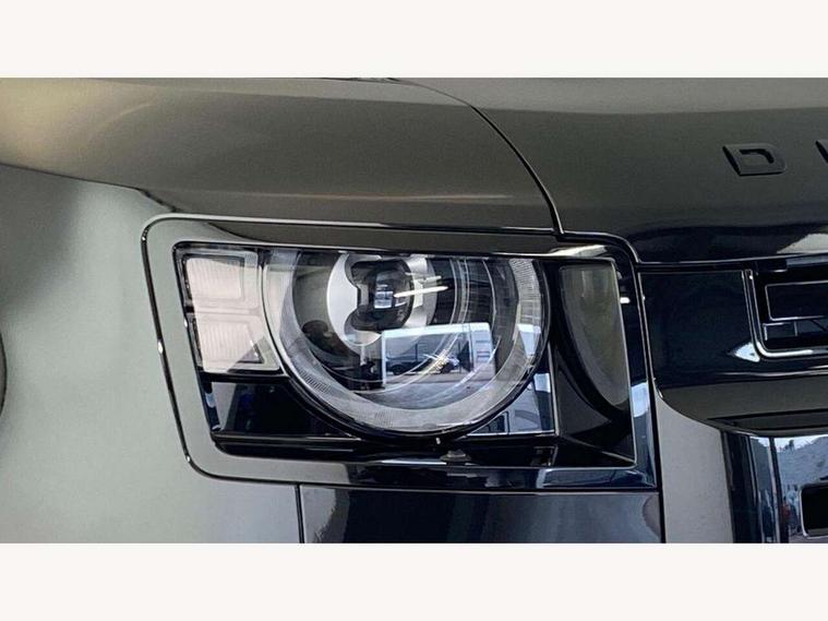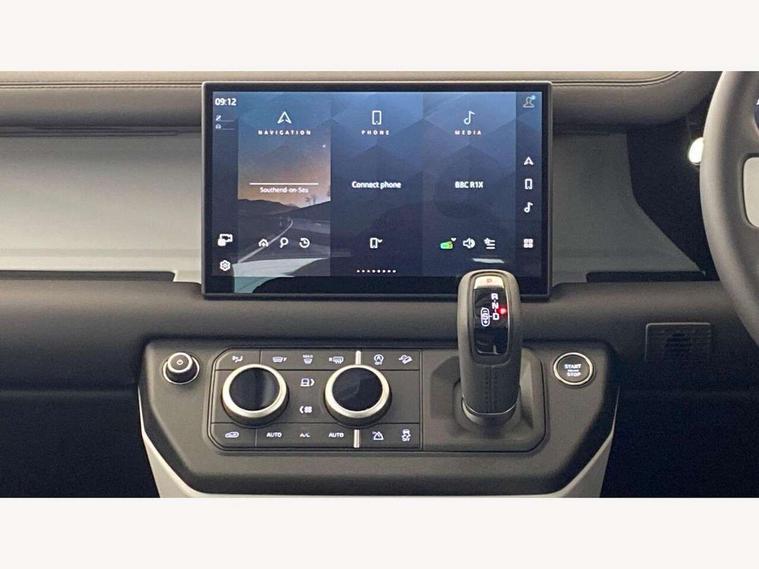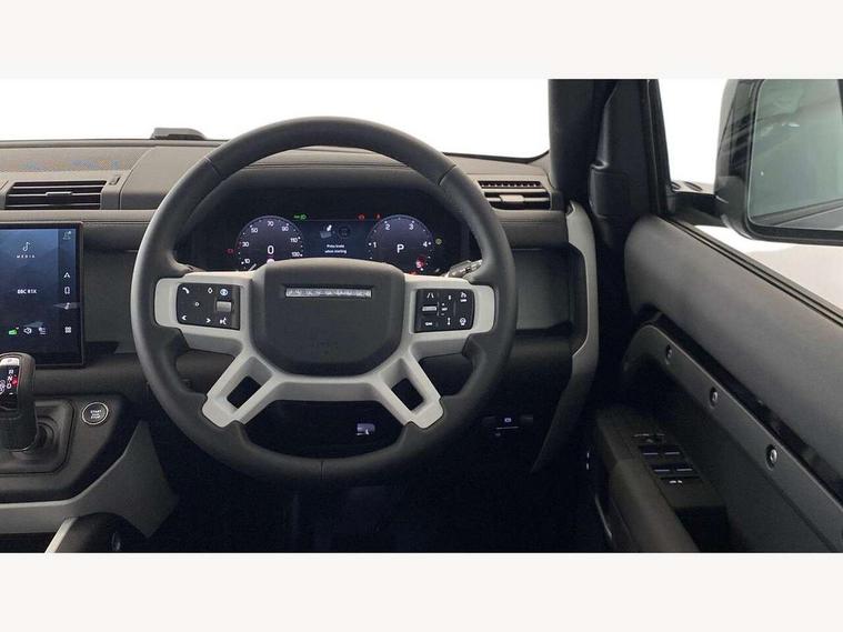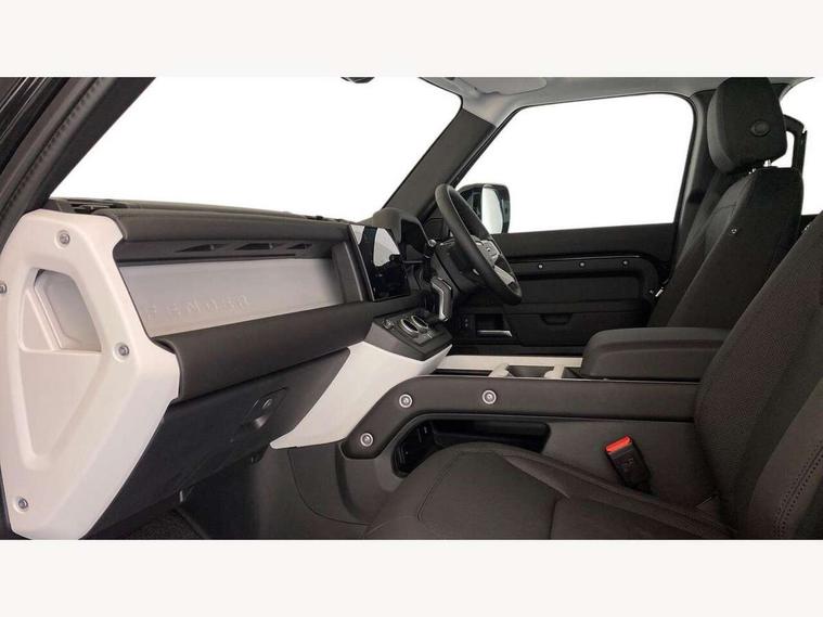 1 x USB-C (power only) & 1 x USB-C (power & data) in Row 1, 2 x USB-C in Row 2, 11.4" touchscreen, 360 degree parking aid, 3D Surround Camera with 360 View, 180 Rear View, Front Traffic Detection, Forward Vehicle Guidance, Tow Hitch Assist and clear sight Ground View, Adaptive cruise control, Android Auto, Apple CarPlay, Bluetooth system, Brake pad wear indicator, Clear exit monitor, Click and go integrated base unit, Connected navigation pro, Driver condition monitor, Electric power assisted steering (EPAS), Interactive driver display, Lane keep assist, Push button start, Traffic sign recognition with adaptive speed limiter, Trip computer, Wireless device charging, 8 speed automatic transmission, All wheel drive system, Twin speed transfer box, DAB Radio (Digital Audio Broadcasting), Meridian 400w sound audio system with 11 speakers and subwoofer, Pivi pro connected, Auto high beam assist, Automatic headlight levelling, Automatic headlights, Body coloured bonnet, Centre high mounted stop light, Electric heated/power fold door mirrors with approach lights and auto dimming driver side, Electric windows with one touch open/close and anti-trap, Follow me home lighting, Heated rear window with timer, Heated windscreen, LED tail lights, Premium LED headlights with signature DRL, Privacy glass, Puddle lights, Rain sensing windscreen wipers, Rear fog lights, Rear side wing doors, Rear wiper, Side hinged tailgate, Standard tail door, Trailer stability assist, 12 way heated semi powered front seats, 12V power socket in loadspace, 3 seat bench in 2nd row, Alpine lights, Durable rubber cabin flooring, Durable rubber loadspace flooring, Footwell lights, Front head restraints, Loadspace cover, Loadspace Hook, Multifunction steering wheel, No flat load floor storage, Overhead stowage for sunglasses, Premium non-leather steering wheel, Rear headrests, Rear ISOFIX, Rear reading lights, Resist gearshift, Single front passenger seat, Standard interior, Standard seat configuration, Storage glovebox, Sunvisors with illuminated vanity mirrors, Twin front cupholders, Non-smoker package, Online pack with data plan - Defender, 5 x 3 point seatbelts, ABS, Brake hold function, Cornering brake control (CBC), Cross car beam in light cloud powder coat brushed finish, Customer configurable autolock, Driver and passenger airbags, DSC - Dynamic Stability Control, EBD - Electronic brakeforce distribution, Electric parking brake (EPB), Emergency brake assist, Emergency braking, ESP + traction control, Front airbags with passenger seat occupant detector, HDC - Hill descent control, Hill launch assist, Low traction launch, Power operated child locks, Remote for (e-Call, Optimised assistance call, InControl app, Climate, beep and flash and door), RSC - Roll stability control, Seat belt reminder, TPMS (Tyre pressure monitoring system), Alarm, Immobiliser, Intrusion sensor, Keyless entry, Locking wheel nuts, Secure tracker pro,