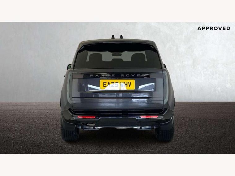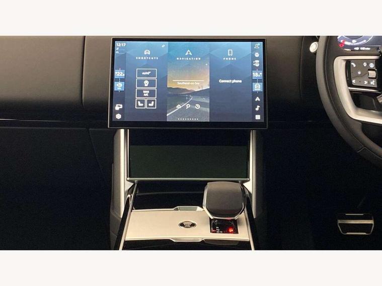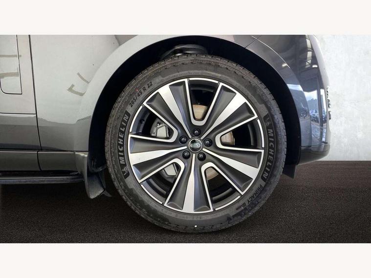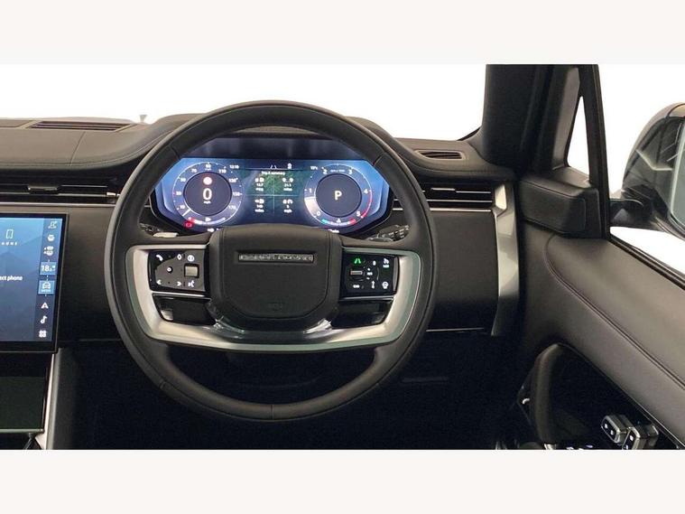 13.1" Touchscreen, 3D surround camera inc frwd traffic detection, vehicle clearance guidance, 3D view, clearsight ground view, manoevure light, 360 parking aid, wade sensing, Adaptive cruise control with steering assist, All Terrain Info Centre, All wheel steering, Blind spot assist, Bluetooth connectivity streaming, Driver monitoring and response with driver facing camera & driver distraction monitor, Eco mode, Electric power assisted steering (EPAS), Emergency call service, Front and rear parking aid, Head up Display, Interactive driver display, Lane keep assist, Park assist, Powered gesture tailgate/boot lid, Rear collision monitor, Rear traffic monitor, Remote, Traffic sign recognition with adaptive speed limiter, Wi-Fi Enabled with data plan, Wireless Apple CarPlay/Android Auto, Wireless device charging, 8 speed automatic transmission, Active damper technology system, Adaptive dynamics, Adaptive off-road cruise control, All Wheel Drive (AWD), Automatic access height, Terrain Response 2 Auto, Twin speed transfer box, Digital Audio Broadcast radio-DAB, Pivi pro including smart settings, Connected navigation pro, nuance speech, USB socket, Acoustic laminated windscreen, Animated directional indicators, Automatic headlights, Automatic levelling headlights, Centre high mounted stop light, Electric windows with one touch open/close and anti trap, Engine cover, Flush deployable exterior door handles, Front and rear recovery eyes, Front fog lights including cornering lamp, Headlamp power wash, Heated rear window, Heated washer jets, Illuminated aluminum treadplates with Range Rover script, LED tail lights, No badges, Power fold, auto-dimming, heated door mirrors with approach lights, Rain sensing windscreen wipers, Rear boot, Rear fog lights, Rear side wing doors, Side repeater indicators in mirror, Standard bonnet, Winter wiper park position, 3 seat bench in 2nd row, 30 Colours configurable cabin lighting with 4 lighting zones, Air quality sensor, Auto folding loadspace cover, Bright metal pedals, Cabin air purification pro, Customer configurable single point entry, Driver and passenger front seat armrests, Easy boot loading, Ebony Carpet, Front and rear cupholders, Front and rear grab handles, Front head restraints, Heated steering wheel, Hook in load space, Loadspace light, Luggage tie down in loadspace, Multifunction steering wheel, Rear centre armrest, Rear head restraints, Rear ISOFIX, Satin chrome gearshift paddles, Single front passenger seat, Soft close doors, Upper and lower glovebox, Online pack with data plan - Range Rover, 3x3 point rear seat belts, Anti-lock braking system (ABS), Brake hold function, Cornering brake control (CBC), Customer configurable autolock, DSC - Dynamic Stability Control, Electronic brake force distribution, Electronic parking brake, Electronic traction control, Emergency braking, Front airbags with passenger seat occupant detector, Front side airbags, Hill descent control, Hill launch assist, Low traction launch, Occupant protection assist, Power operated child locks, Roll stability control, Tyre pressure monitoring system (TPMS), Immobiliser, Intrusion sensor and alarm, Keyless entry, Locking wheel nuts, Remote central locking, Noble chrome controls,