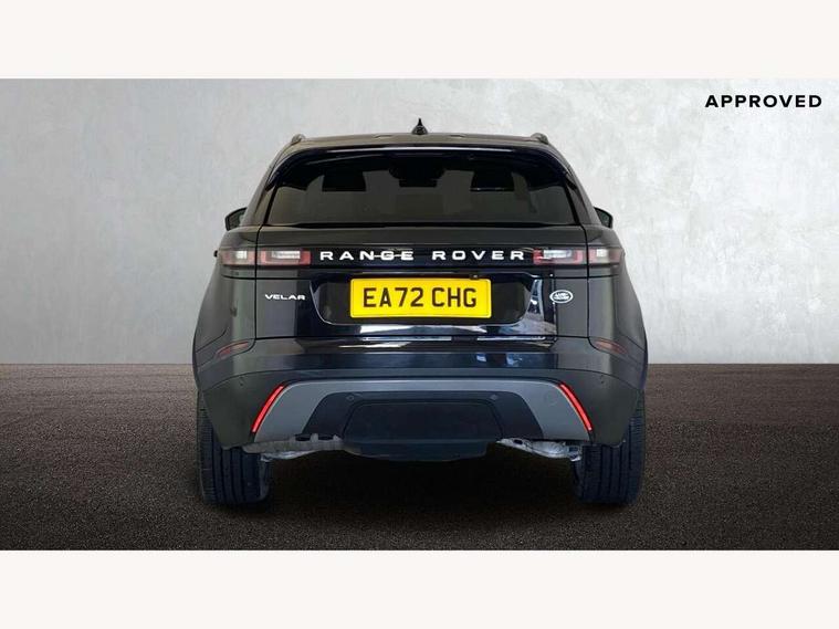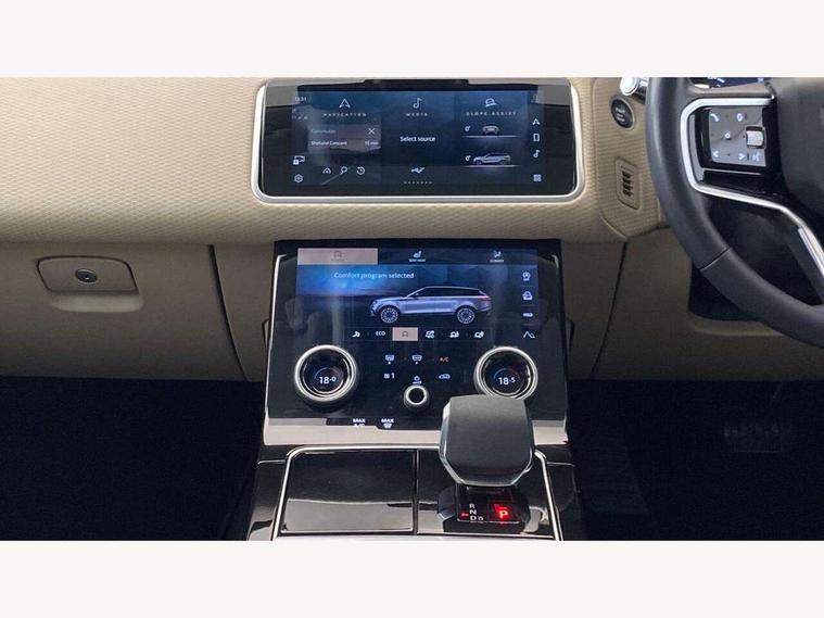 10" deployable touchscreen, Android Auto, Apple car play, Bluetooth connectivity, Brake pad wear indicator warning light, Driver condition monitor, eCall emergency call system, InControl remote, Land Rover InControl apps, Lane keep assist, Pivi pro with connected navigation, Push button start, Service indicator, Speed proportional electronic power assisted steering (EPAS), Traffic sign recognition with adaptive speed limiter, Trip computer, Voice control system, 8 speed automatic transmission, All terrain progress control, Open differential with torque vectoring by braking, Single speed transfer box, Digital Audio Broadcast radio-DAB, Steering wheel mounted controls, Acoustic laminated windscreen, Auto dimming interior rear view mirror, Automatic headlamp levelling, Automatic headlights, Body coloured bumpers, Boot protection plate, Electric heated/power fold door mirrors with approach lights and auto dimming driver side, Electric windows with one touch open/close and anti trap, Flush deployable exterior door handles, Follow me home headlights, Heated rear window with timer, Heated washer jets, Heated windscreen, LED 3rd brake light, Metal front tread plates, Metal load space scuff plates, No badge - Removes engine badge, Rain sensor windscreen wipers, Rear animated directional indicators, Rear fog lights, Rear side wing doors, Rear wash/wipe, Tailgate/boot lid spoiler, Trailer stability assist, Velar badge, 3 seat bench in 2nd row, Ambient lighting, Driver/passenger sunvisors with illuminated vanity mirrors, Isofix system on outer rear seats, Loadspace cover, Overhead lighting console, Overhead stowage for sunglasses, Passive front headrests, Rear air vents, Rear centre headrest, Satin chrome gearshift paddles, Single front passenger seat, Standard interior, Twin front cupholders, Twin sliding front centre armrest, Online pack with data plan - Velar, 355mm front brakes and 325mm rear brakes, 3x3 point rear seatbelts, Anti-lock braking system (ABS), Cornering brake control, Curtain airbags, Customer configurable autolock, Door side intrusion beams, Driver airbag, DSC - Dynamic Stability Control, Electronic brake force distribution, Electronic parking brake, Electronic traction control, Emergency brake assist, Emergency braking, Front and rear seatbelt reminder, Hill descent control, Hill launch assist, Low traction launch, Passenger airbag, Power operated child locks, Rear airbags, Roll stability control, Side airbags, Tyre pressure monitoring system, Unpainted brake calipers, Global lock and unlock switch on driver door, Immobiliser, Intrusion sensor, Keyless entry, Lock only switch on front passenger door, Locking wheel nuts, Perimetric alarm, Remote central locking, Standard IP end caps,