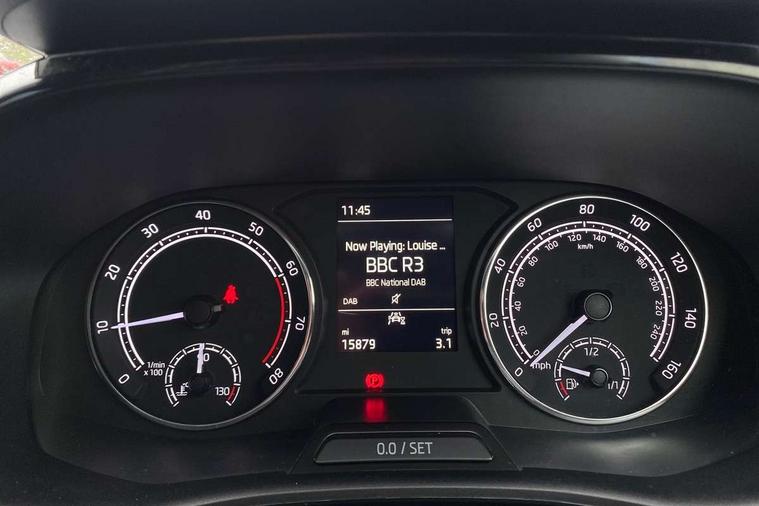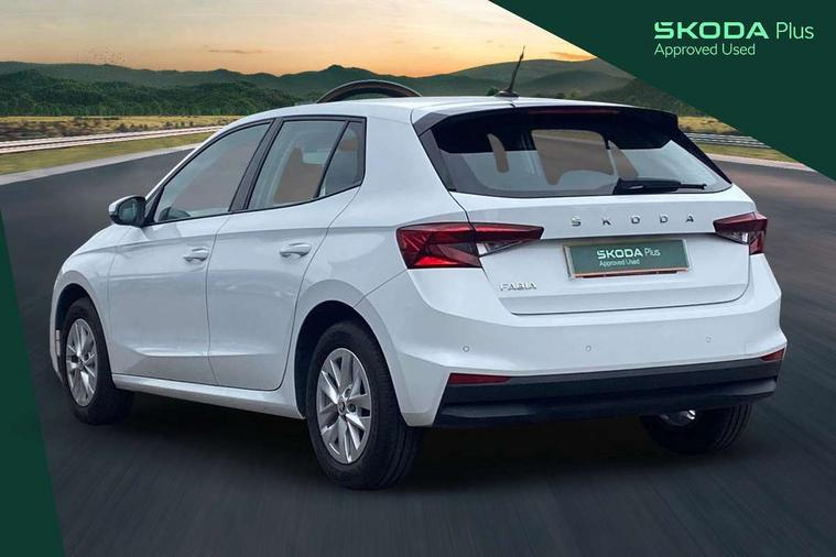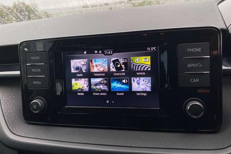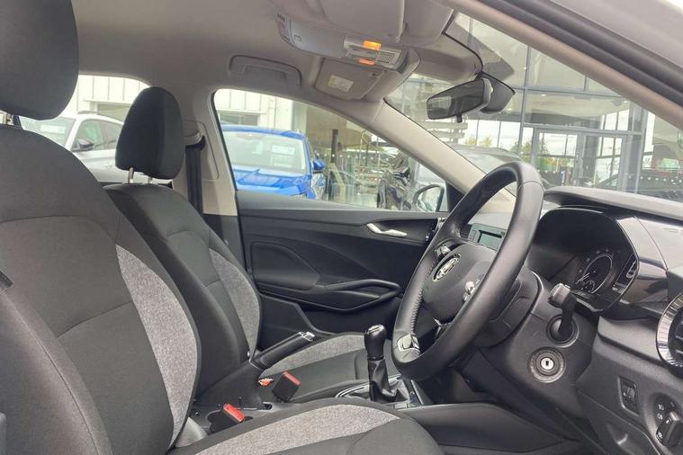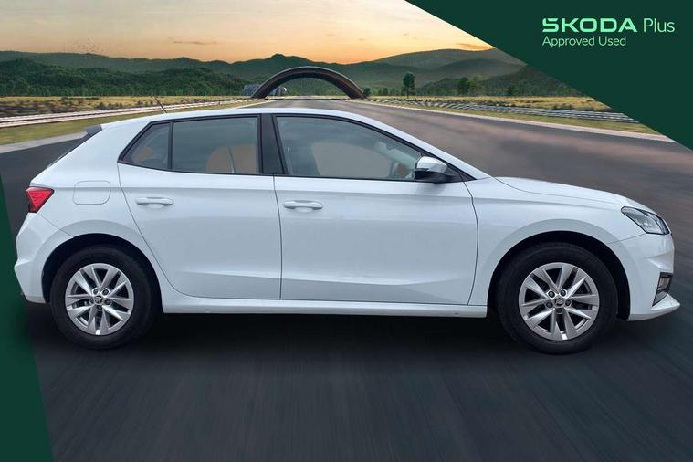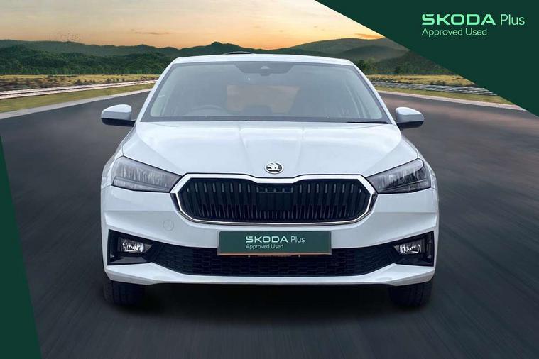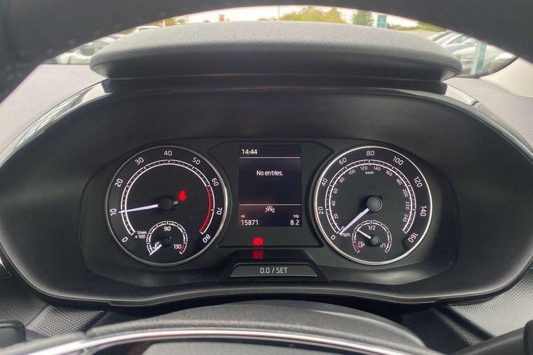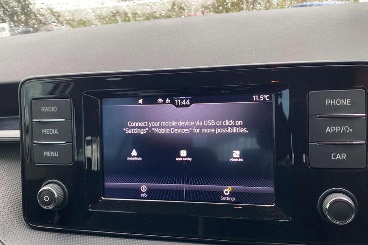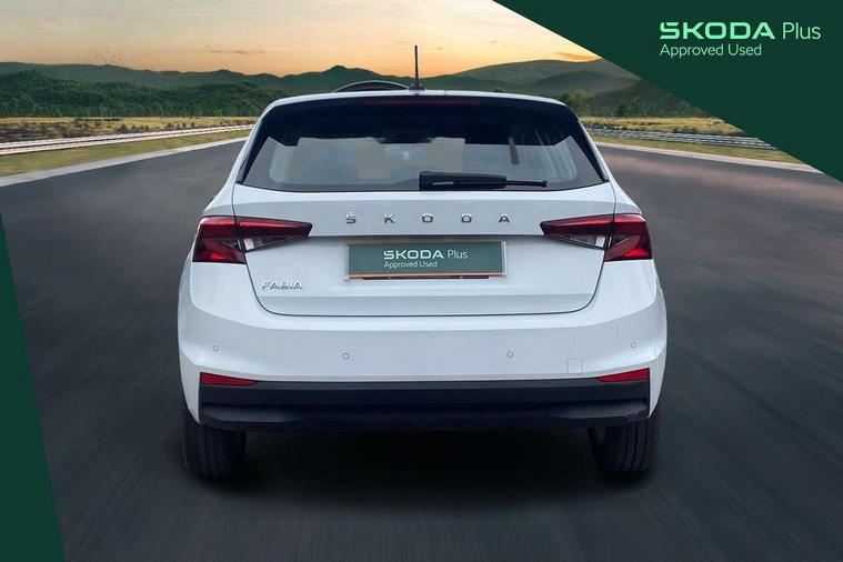 Bluetooth connection, Driver alert system - DAS, Electromechanical power steering, Exterior temperature gauge, Lane assist including road edge detection, Multifunction trip computer in black and white, Service interval indicator, Speed limiter, 2x USB-C in the front (for data transmission and charging), 4 speakers in front, Auxiliary socket for external MP3 player, DAB digital radio reception, Radio Swing with 6.5" colour display, Basic LED Headlights, Basic rear lights, Body colour door mirrors, Body coloured bumpers, Dimming rear view mirror with black frame, Door mirror integrated indicators, Electrically adjustable and heated door mirrors, Electrically adjustable front windows with function auto up/down, Front fog lights, Front window wiper intermittent control, Headlight range control - Automatic, Ice scraper in fuel cap, LED daytime running lights with coming and leaving home feature, Mechanical adjustable rear windows, Rain sensor, Rear LED fog light, Rear side wing doors, Rear window wiper with washing nozzles, Roof mounted spoiler, SKODA tailgate lettering in chrome, Third brake light, 2 reading lights in front and 2 reading lights in rear, 2 spoke leather multifunction steering wheel, 3 rear headrests, Backrest split and folding, Central console with fixed cup holder and storage box, Chrome handbrake release button, Fabric upholstery, Gearshift knob/handle in leather, Grain satin black interior door handles, Hand brake lever handle in leather, Height adjustable front headrests, Height adjustable front seats, Height adjustable steering wheel, ISOFIX and TopTether anchorage points to the outer rear seats, ISOFIX and TopTether on the front passenger seat, Luggage compartment lighting, Manual air conditioning, Manually adjustable lumbar support in front seats, Pollen filter, Rear seat bench unsplit, Single front passenger seat, Storm grey headlining, Sun visors with mirror and airbag label on passenger side, Ticket holder, 3-point height adjustable front seats belts with pretensioner and force limiter, Automatic warning lights in case of crash, Driver and passengers airbag with switch off function, e-Call+, ESC including ABS, MSR, ASR, EDS, HBA and XDS, Front and rear seat belt warning, FRONT ASSIST (AEB City and AEB Inter Urban), Front side airbags, Head airbags, One tone horn, Pedestrian protection, Three rear 3-points safety seat belts with pretensioner and force limiter including stop function for outer rear seat belts, Tyre pressure monitoring system, Anti-theft alarm system including immobiliser, interior monitoring, backup horn, and towing protection, Central locking with radio remote control, interior controls, SAFE function and 2 foldable keys, Black painted air vents, Glossy black decorative trim, Grain satin black central console cover, Grain satin black lower decorative trim, Satin black door and side trim panel in front, Anti-theft wheel bolts protection, Super-low rolling resistance tyres,