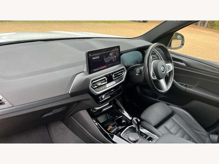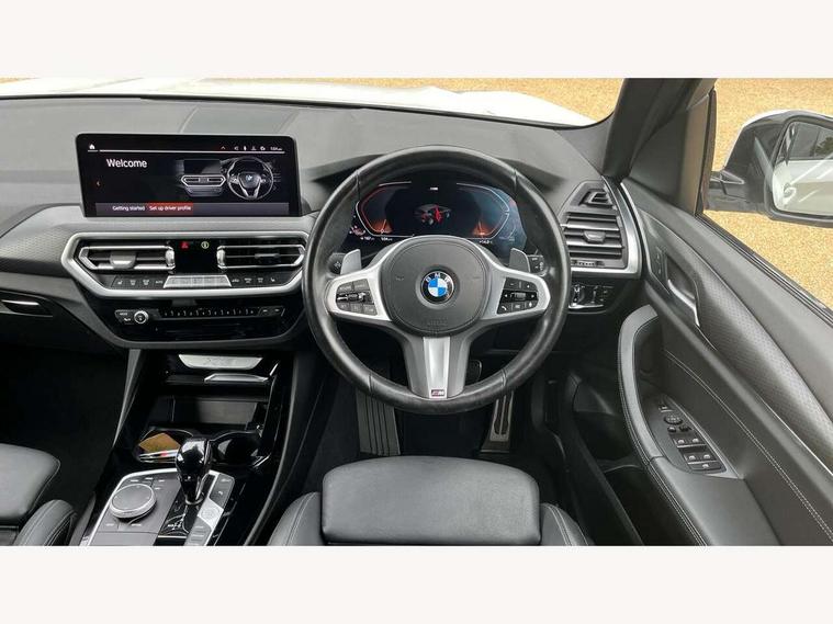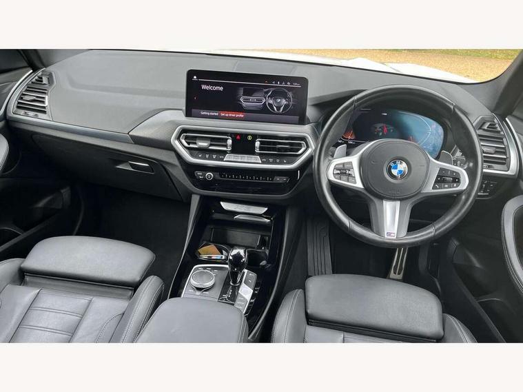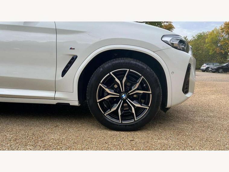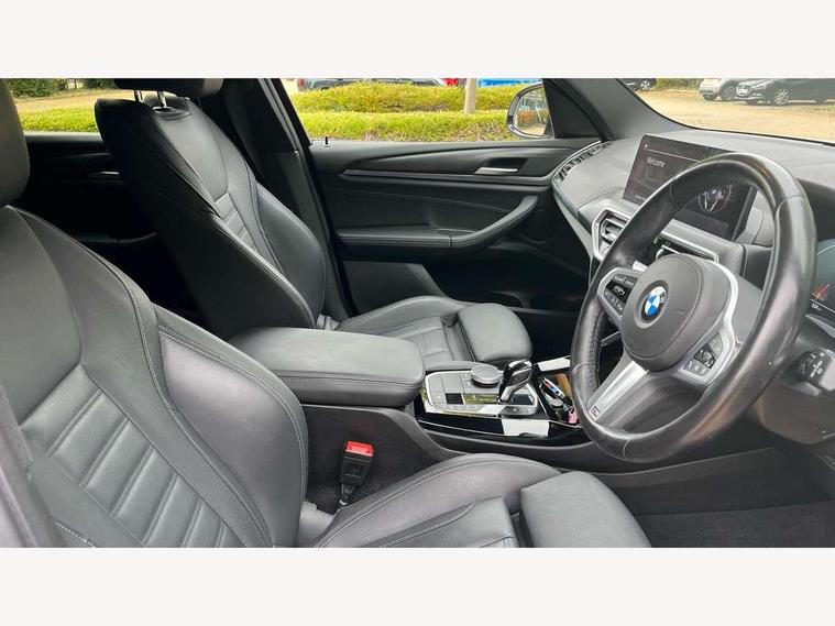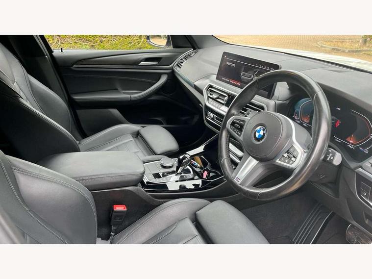 Active Guard, Attentiveness assist, BMW Live Cockpit Professional nav system including 12.3" instrument display + 12.3 high resolution control display, BMW Online services, BMW Teleservices, Brake pad wear indicator in front and rear, Check Control warning system for monitoring of lights and door/luggage compartment open warning, Condition based service - BMW service history, electronic service booklet, integrated owner's handbook, Connected drive services, Cruise control with brake function + speed limiter, Electric boot lid, Front/rear Parking distance control, iDrive Controller with 8 favourite buttons, Instrument cluster with speedometer with mph readout, tachometer, fuel gauge and oil temperature gauge, Lights on warning by audio warning signal when ignition is switched off, Oil sensor for level and grade, warning by check control system, On board computer - average speed+fuel consumption, service interval, clock/date, odometer/trip meter, outside temperature display and ice warning, Optimum shift indicator, Personal Profile - automatic lock when driving away selectable, Stop/start system, Variable sports power steering, Automatic transmission with gearshift paddles, Drive performance control with ECO PRO comfort + sport mode, Incorrect fuelling protection, M sport suspension, Multi-link rear suspension, Performance Control, BMW professional radio/CD/MP3, DAB tuner, Acoustic glazing, Automatic windscreen wipers and automatic headlight, Black finish on B pillars, Body colour door handles, Body colour electric adjust heated aspherical door mirrors, Body colour roof mouldings, Body coloured bumpers, Direction indicator, side repeaters, integrated in exterior mirrors, Dynamic brake lights, Exhaust tailpipes - dual, round, split left and right with chrome finisher, Fingertip control / anti-trap function on electric window, Folding wing mirrors with auto dimming, Follow me home headlights, Front and rear bumper system with replaceable deformation elements, Front and rear electric windows, Gloss chrome tailpipes finishers, Green tinted heat insulating glass, Heated windscreen washer jets, High beam assistant, High gloss black shadow line roof rails, High gloss shadowline exterior trim in decorative moulding side frame/recess cover/guide rail/B, C pillars/mirror frame and triangle with mirror base, High level 3rd brake light incorporating LED Technology, Interior rear view electrochromatic mirror with automatic anti dazzle function, LED tail lights, Lightweight engineering, M aerodynamic bodystyling, Model designation, Rear side wing doors, Rear wing door, Rear wiper, Shark fin antenna, Side exterior M designation badges, Visible VIN plate, Welcome lighting, Windscreen wipers with adjustable interval, 12V power socket in front centre console, 3 rear headrests, 3 zone automatic air conditioning, 4 lashing points to secure luggage, 40:20:40 split folding rear seat with loading system, 5 seats, Ambient lighting, Anthracite headlining, Automatic interior light when door is opened/ignition switched off or via remote key, Foldable storage floor with compartment, Four grab handles integrated in roof lining, Front and rear bottle holders integrated into door trim storage compartments, Front and rear side armrests integrated into door trim, Front centre armrest with storage compartment, Front footwell lights, Front head restraints, Front sports seats, Front/rear courtesy lights with soft on/off dimming, Front/rear reading lights, Heated front seats, Isofix rear child seat preparation, Leather gear knob, Luggage area underfloor compartment, Luggage compartment lighting, M sport leather steering wheel, Multifunction steering wheel, Parcel shelf removeable and storable under boot floor, Reach and rake adjustable steering column, Rear centre armrest with 2 cupholders, Removable / retractable luggage cover, Seat backrest width adjustment, Slope adjustable rear seats, Storage compartment in rear centre console and front/rear door trims, Sun visors with vanity mirrors and ticket pocket, Toolkit located in luggage compartment, Two front cupholders with removable oddments tray/lid, Vernasca leather upholstery, Connected pro pack - X3, Driving assistant pack - X3, ADB - Automatic Differential Brake, Anti-lock braking system (ABS) with brake assist, Automatic Stability Control (ASC), Battery safety cut-off, BMW emergency call, Brake drying, Brake energy regeneration, Braking pre-tensioning, Child locks on rear doors, Cornering brake control (CBC), Crash Sensor - activation of central locking release, hazard warning light and interior lighting, Deactivation of fuel pump in the event of a crash, Driver and front passenger front and side airbags with passenger deactivation and ITS front and rear head airbags, DSC+, Dynamic brake control, Dynamic Traction Control - DTC, Electromechanical parking brake, Hill descent control, Hill start assist, Seatbelt security check for front seats, Side impact protection, Three point seatbelts to all seats with front and outer rear pyrotechnic belt tensioners and seat belt force limiters, Two tone horn, Tyre pressure sensor, Ventilated front and rear disc brakes, Warning triangle and first aid kit, Central locking switch for all doors, fuel filler cap and luggage compartment, Electronic engine immobiliser, Locking wheel nuts, Remote control including two integrated key - one button for open/close all lockable content, windows and separate button for open luggage compartment, Remote control Thatcham category 1 alarm, Start/stop button with Comfort Go keyless engine start and auto Start/stop deactivation button, Low rolling resistance tyres,