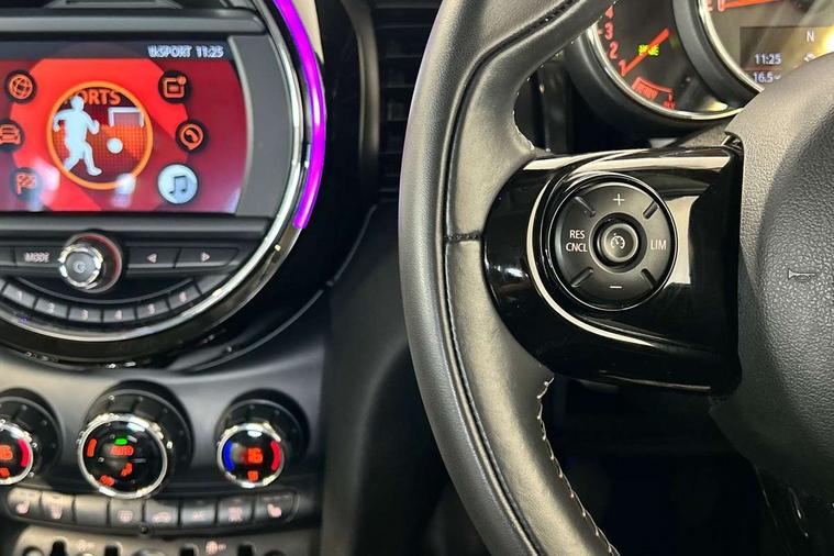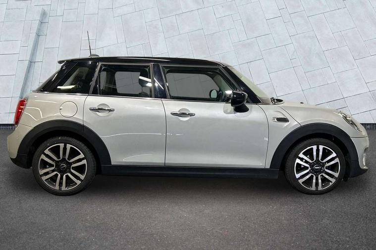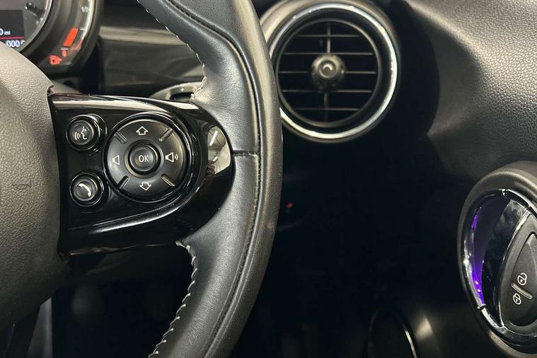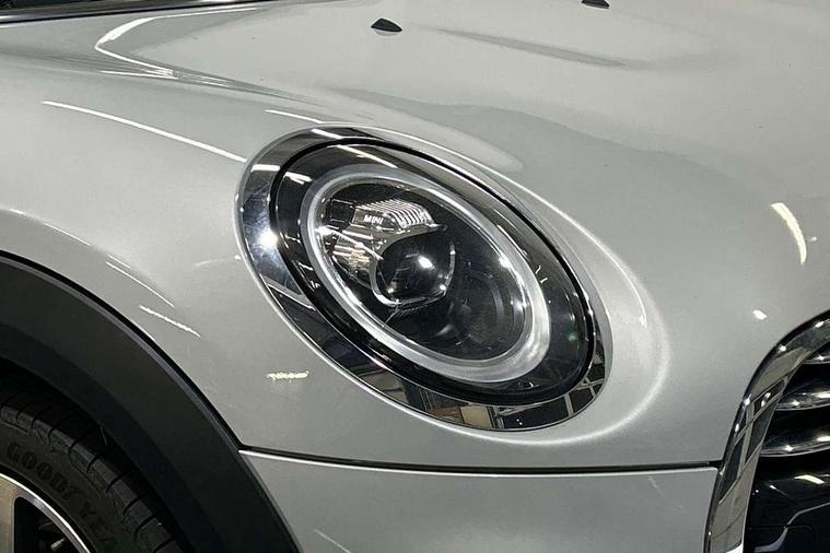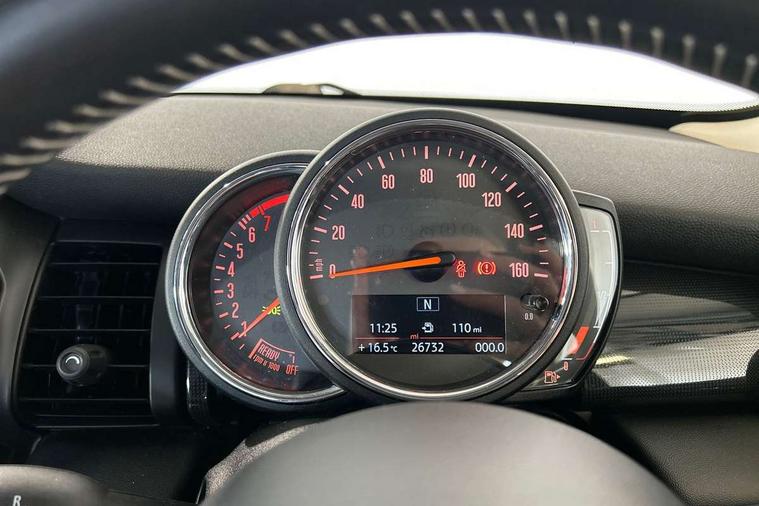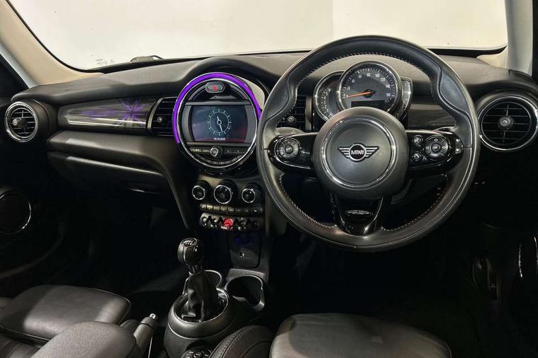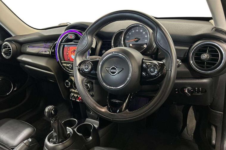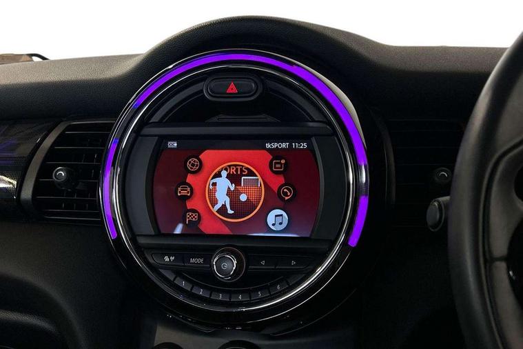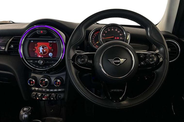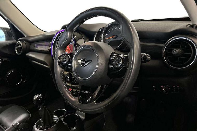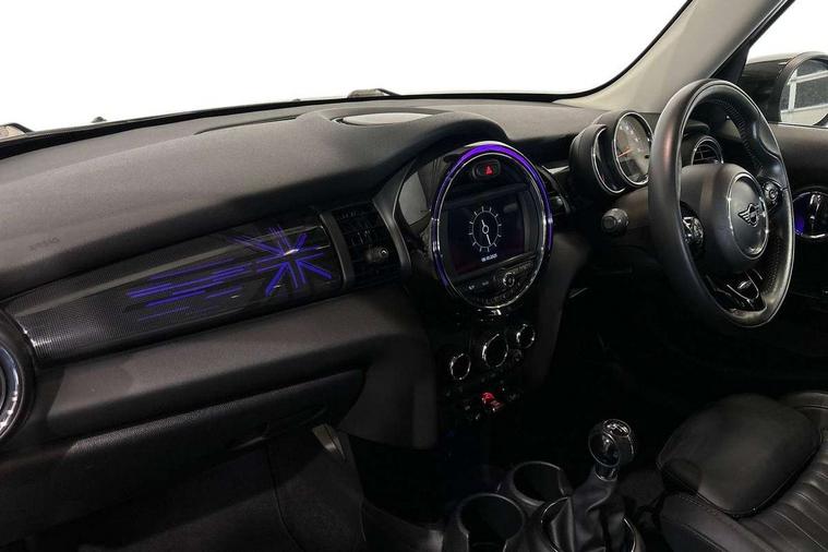 Automatic start/stop function with brake energy recuperation, Compatible mobile phone bluetooth with audio streaming, Electro-mechanical speed dependant steering assistance, Instrument cluster, Mini E-call, MINI TeleServices, On board computer, Service interval indicator, Double Vanos system, Fully variable valve control, High precision injection, 6.5" touchscreen with LED ring, FM tuner and DAB digital radio, Automatic headlight activation switch, Body colour fuel filler cap, Chrome border high gloss black slats radiator grille, Chrome line exterior, Dynamic brake lights, Electric front+rear windows, Heated rear window, Heated windscreen washer jets, LED headlight with closed ring and daytime driving lights, Left exhaust tailpipe with chrome finisher, Metal door sill strips with MINI imprint, Model logo Cooper on right of tailgate, Radiator grille bars, tailgate handle, lower front grille grating, rear central fog light in chrome, Rain sensor window wipers, Rear fog lights, Rear LED lights with union jack design, Rear window wiper, Side scuttle panel with integrated indicator, Sun/heat protection glass, White indicator lenses, 12V Accessory socket in centre console, 4 lashing eyes in luggage compartment, 60/40 split folding rear seat, Air vents, gear lever base, speakers in doors, door handles in chrome, Chrome interior highlights, Cupholders, Front and rear head restraints, Front and rear isofix with front passenger airbag deactivation, Glove compartment, Height and length steering column adjustment, Interior lighting with 12 basic colours selectable via toggle switch in roof, Leather gearshift lever and handbrake gaiters, LED reading lights, vanity mirror lights, front foot well light and spotlight on front seats, Manual air conditioning, Mechanical seat adjustment, driver seat height adjust, forward/back and front seats backrest, Mini logo projection on floor from drivers exterior mirror, MINI Yours leather steering wheel with silver contrasting stitching with MINI Yours badge, Multifunction steering wheel, Storage compartments in doors, Sunvisors with vanity mirrors, 3 point seatbelts on all five seats, 6 Airbags - front, side, head and seat belt tensioners, Anti-lock braking system (ABS), DSC - Dynamic Stability Control, Front and rear disc brakes, Hill start assist, Single tone fanfare horn, Tyre pressure monitoring system, Alarm system with tilt sensor, monitoring doors, bonnet interior and tailgate, Electronic vehicle immobiliser, Start/stop toggle with keyless go, Chrome line interior, Tool kit,
