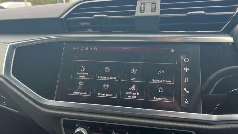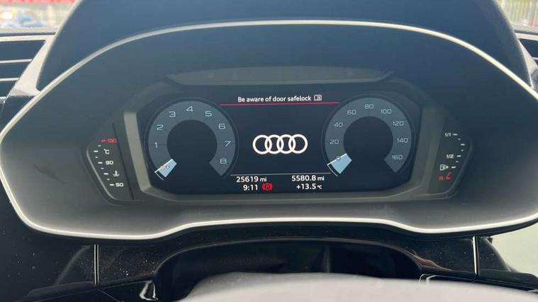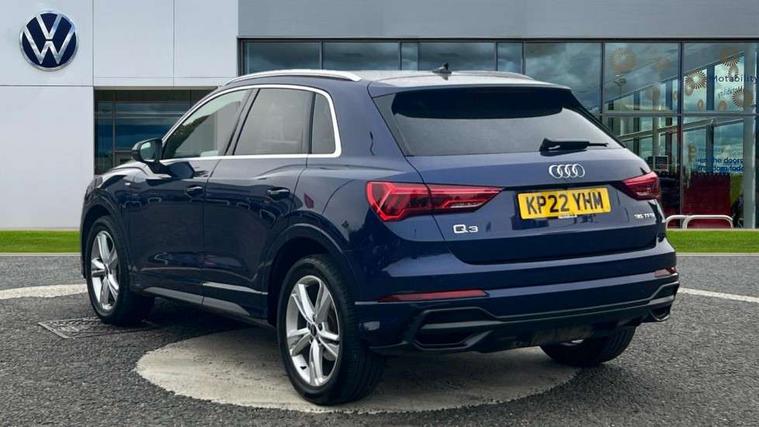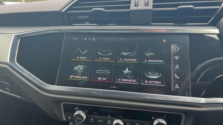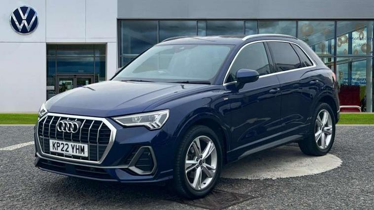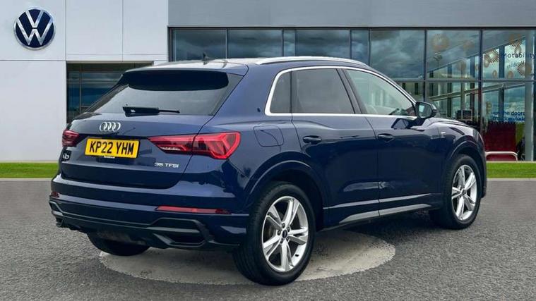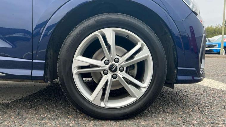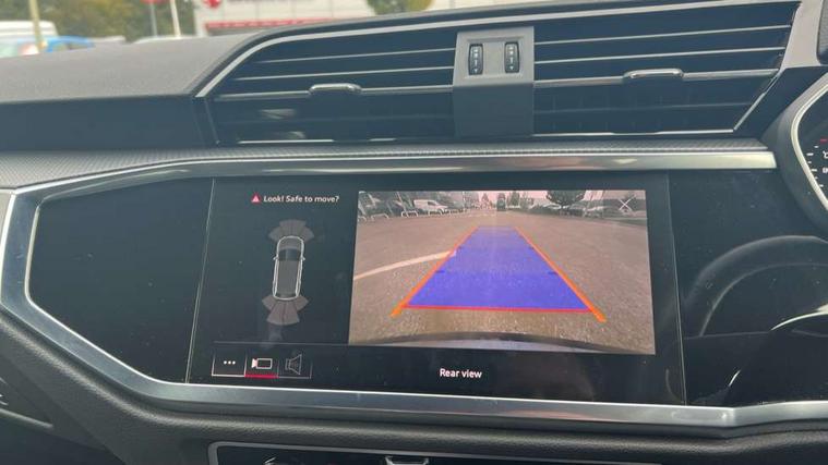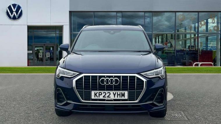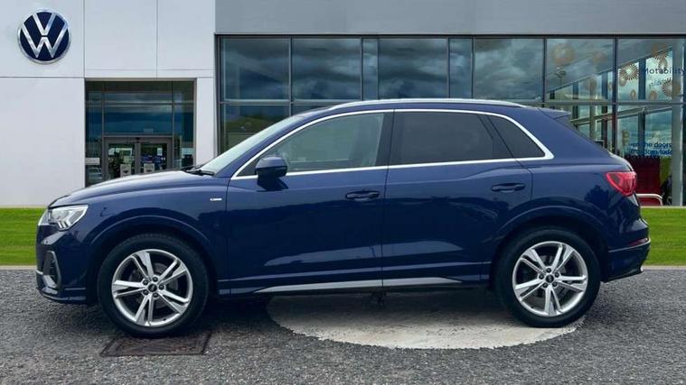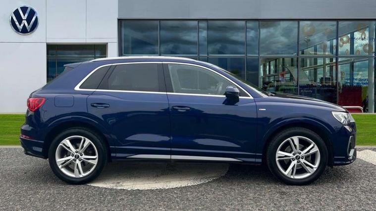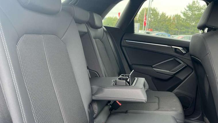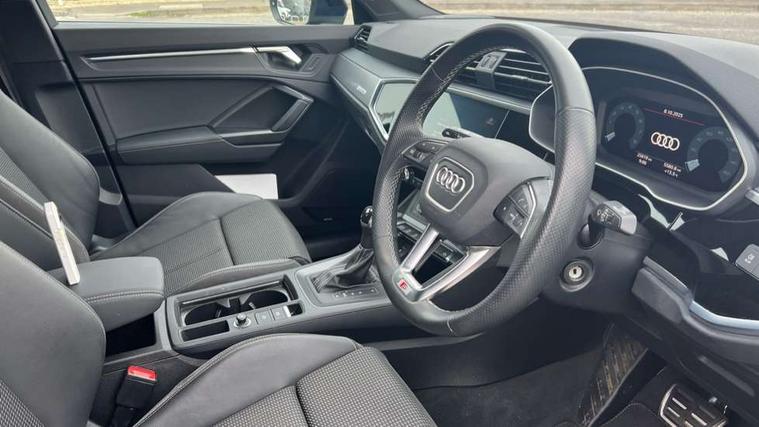 Amazon alexa Integration, Audi connect safety and service (e-call), Audi drive select, Audi lane departure warning, Audi Virtual Cockpit - 10.25" display, Bluetooth interface, Camera based traffic sign recognition, MMI Navigation Plus with high resolution 10.1 inch touchscreen colour display, Power operated tailgate, Progressive steering, Service interval indicator, Smartphone interface includes wireless Apple carplay/Android Auto, Start stop system with recuperation, Voice control system with natural language interaction, 48V Mild hybrid technology, Sports suspension, 2 USB-C ports with charge and data functions, 6 passive loudspeakers, DAB digital radio module, Acoustic windscreen, Aluminium roof rails, Aluminium window trim, Auto dimming frameless rear view mirror, Body coloured bumpers, Electrically folding, adjustable and heated door mirrors with integrated LED side indicators and kerb view function for passenger side, Front and rear electric windows, Front fog lights, Front side air inlets in matt platinum grey, Front spoiler blade in matt platinum grey, Grille vertical bars in aluminium silver/Matt, High gloss black finish B and C pillars, LED headlights with LED daytime running lights, LED rear lights, LED third brake light, Privacy glass dark tinted rear and rear-side windows (from B-pillar backwards), Rain and light sensors, Rear diffuser strip in matt titanium black, Rear side wing doors, Rear wiper, S line badges on front wings, S Line front and rear bumpers, Side skirt insert in matt Platinium grey, Silver chrome grille surround, Titanium black radiator grille, Variable front intermittent wipers, 12V socket in rear centre console, 3 seat bench in 2nd row, 40:20:40 folding with manual adjustment for 60:40 forwards/backwards position and backrest angle, Adjustable rear seat bench/backrest with centre armrest and cupholder, Black cloth headlining, Dual zone electronic climate control, Front and rear black floor mats with contrast stitching in rock grey, Front and rear headrests, Front and rear roof module including reading lights, Front centre armrest, Glove compartment lighting, Height and reach adjustable steering wheel, Illuminated door sill trims with S logo, ISOFIX child seat mounting for front passenger with airbag deactivation and outer rear seat including top tether attachment point for outer rear seats, Luggage compartment light, Manual front seats with height adjustment, Perforated leather gearknob, Single front passenger seat, Stainless steel luggage compartment sill finisher, Stainless steel pedals, Non smoking pack - Q3, 3x3 point rear seatbelts, 6 airbags - Driver, front passenger, curtain and side windows, Audi pre-sense front with pedestrain and cyclist recognition, Electromechanical parking brake, Electronic stabilisation control including ABS, ASR and EDL, Front seatbelt reminder, Hill descent control, Hill hold assist, Manual child lock in rear doors, Pre sense basic, Seatbelt monitoring, Tyre pressure warning, Warning triangle and first aid kit, Anti theft alarm, Anti theft wheel bolts, Immobiliser, Remote central locking, Dark matt brushed aluminium inlay, Detail dashboard around MMI touch colour display in glass look, black with surround in aluminium look, Leatherette door armrest, Tool kit, Tyre repair kit,