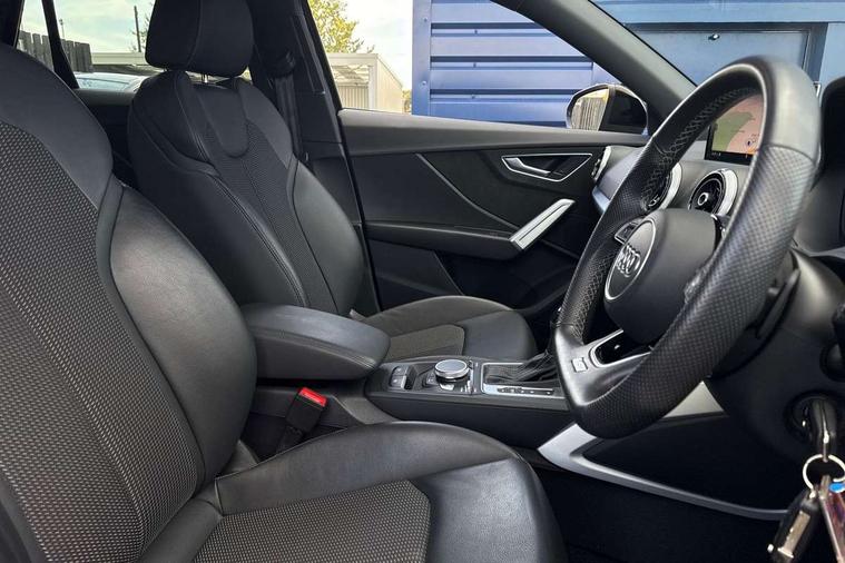 Audi connect navigation and infotainment includes innovative services, Audi connect remote and control connects your vehicle to your smartphone, Audi drive select - Power steering assistance + engine + gearshift, Audi drive select with efficiency, Audi smartphone interface, Audi virtual cockpit, Automatic start/stop system with recuperation, Bluetooth interface includes bluetooth audio streaming, Cruise control, E-call, MMI navigation plus with MMI touch, Power operated tailgate, Progressive steering, Rear parking sensors, 2 x SDXC card reader, 6 passive loudspeakers, DAB Digital radio, DVD Drive, Auto dimming rear view mirror, Black window trims, Bumper in full body colour paint finish, Electrically adjustable, folding, auto dimming and heated door mirrors with integrated LED side indicators, Front windscreen with grey tinted sunband, LED daytime running lights, LED headlights with LED rear lights, LED third brake light, Privacy glass - dark tinted rear and rear side windows from B-pillar backwards, Rear side wing doors, Rear wiper, Variable front intermittent wipers, Wheel arch trims in manhattan grey, 12v socket in front, 3 seat bench in 2nd row, 3 spoke flat bottomed multi-function leather sport steering wheel with gear shift paddles, 4-way electric lumbar support for front seats including seat height adjustment for both front seat, 60/40 split folding rear seat bench, Black cloth headlining, Front and rear head restraints, Front centre armrest, Front/rear floor mats, Height/reach adjust steering wheel, Illuminated door sill trims with S logo, ISOFIX child seat mounting in front passenger and rear outer seats, Single front passenger seat, Stainless steel pedals, Black styling pack - Q2, 3x3 point rear seatbelts, 6 airbags - Front, curtain and front side airbags, Electromechanical parking brake, Electronic stabilisation control including ABS, ASR and EDL, Front passenger airbag deactivation, Hill hold assist, Pre-sense front with pedestrian recognition, Seatbelt monitoring, Tyre pressure warning light, Warning triangle and first aid kit, Anti theft alarm, Anti theft wheel bolts, Electronically operated child locks, Remote central door locking, Aluminium interior element, Matt brushed aluminium trim inlays, Tool kit,