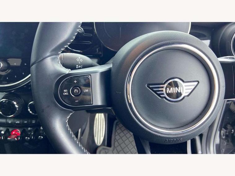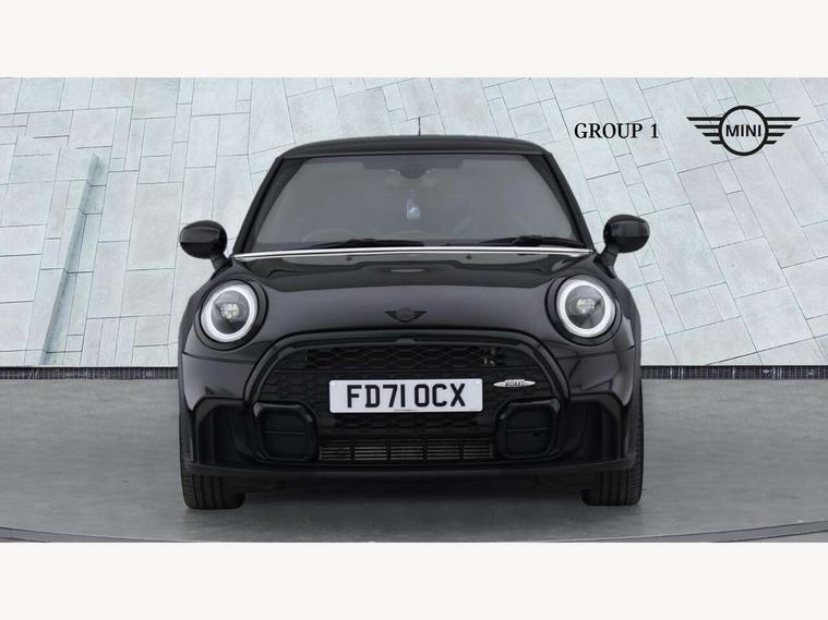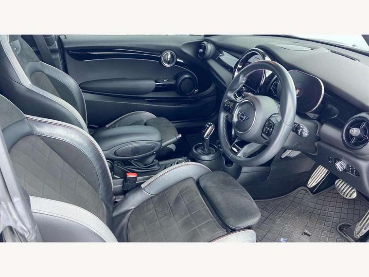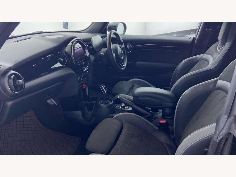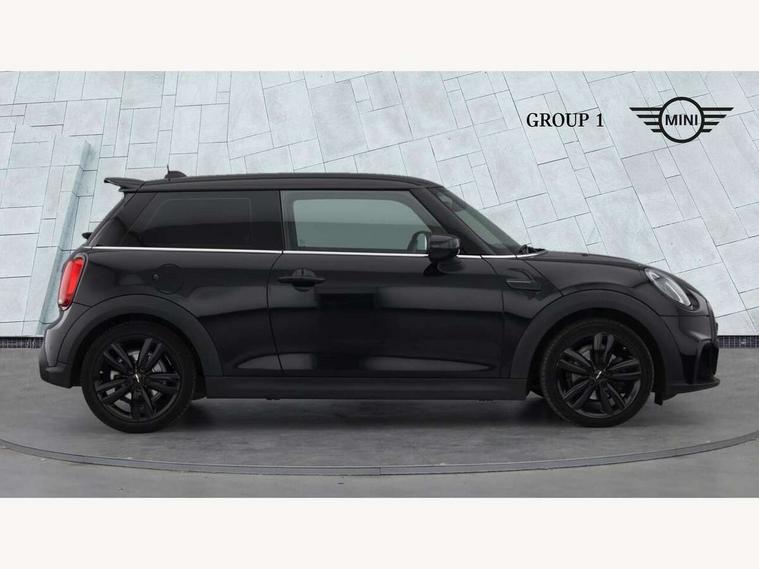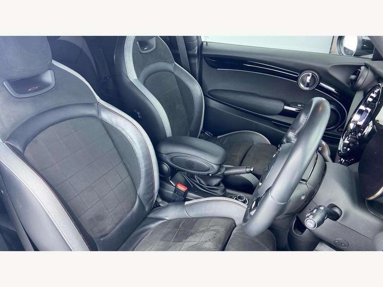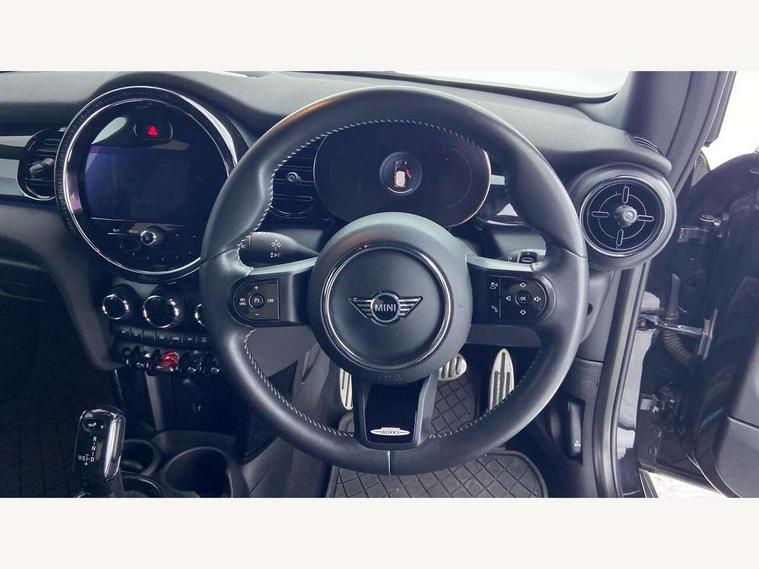 Apple CarPlay, Automatic start/stop function with brake energy recuperation, Compatible mobile phone bluetooth with audio streaming, Cruise control with brake assist, Electro-mechanical speed dependant steering assistance, Flexible car sharing preparation, Instrument cluster, MINI Driving Modes - centre toggle switch to control driving setting (sport, mid and green), Mini E-call, MINI TeleServices, On board computer, Rear park distance control, Service interval indicator, Double Vanos system, Fully variable valve control, High precision injection, Intelligent adaptive suspension, Performance Control, Steptronic transmission with double clutch, 8.8" touchscreen with LED ring, FM tuner and DAB digital radio, 3rd brake light, Automatic headlight activation switch, Body colour fuel filler cap, Chrome border high gloss black slats radiator grille, Dynamic brake lights, Electric front windows, Exhaust tailpipe on left with chrome finisher, Heated rear window, Heated windscreen washer jets, JCW Aerodynamic kit - Front and rear bumpers with sporty JCW styling and part-painted side sills with MINI John Cooper Works door sill finishers, John Cooper Works rear spoiler, LED headlight with closed ring and daytime driving lights, Metal door sill strips with MINI imprint, Model logo Cooper on right of tailgate, Rain sensor window wipers, Rear fog lights, Rear LED lights with union jack design, Rear window wiper, Side scuttle panel with integrated indicator, Sun/heat protection glass, White indicator lenses, 12V Accessory socket in centre console, 2 seat bench in 2nd row, 4 lashing eyes in luggage compartment, 60/40 split folding rear seat, Anthracite headliner including grab handles and clothes hooks, Carbon black colour line - Knee roll and door armrest, Chrome interior highlights, Cupholders, Front and rear isofix with front passenger airbag deactivation, Front floor mats in velour, Glove compartment, Height and length steering column adjustment, Interior lighting with 12 different colours across the dashboard, underneath door bezel with illuminated laser-engraved design on central display, JCW Sport seats with integrated headrests, adjustable thigh support and John Cooper Works logo, Leatherette gearshift lever and handbrake gaiters, LED reading lights, vanity mirror lights, front foot well light and spotlight on front seats, Manual air conditioning, Mechanical seat adjustment - forward/back & backrest for front seats and driver seat height adjust, Multifunction steering wheel, Passenger seat height adjuster, Single front passenger seat, Storage compartments in doors, Sunvisors with vanity mirrors, Tool kit, Walknappa leather steering wheel with grey seam and John Cooper Works badge on Piano Black lower steering wheel spoke, Piano black exterior pack - Mini Hatchback Cooper, 3 point seatbelts on all four seats, 6 Airbags - front, side, head and seat belt tensioners, Anti-lock braking system (ABS), DSC - Dynamic Stability Control, Front and rear disc brakes, Single tone fanfare horn, Tyre pressure monitoring system, Alarm system with tilt sensor, monitoring doors, bonnet interior and tailgate, Electronic vehicle immobiliser, Start/stop toggle with keyless go, Piano black interior trim,
