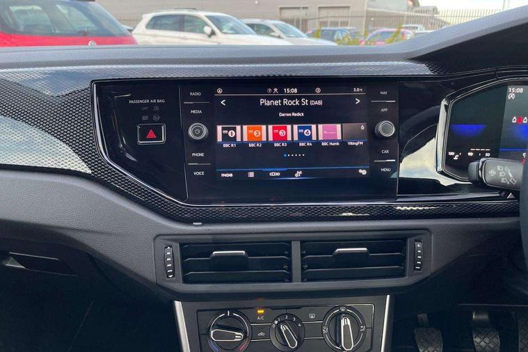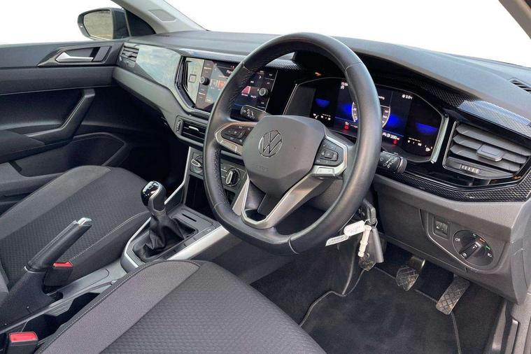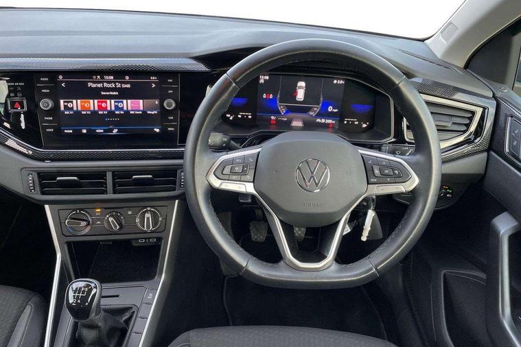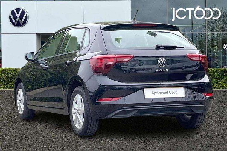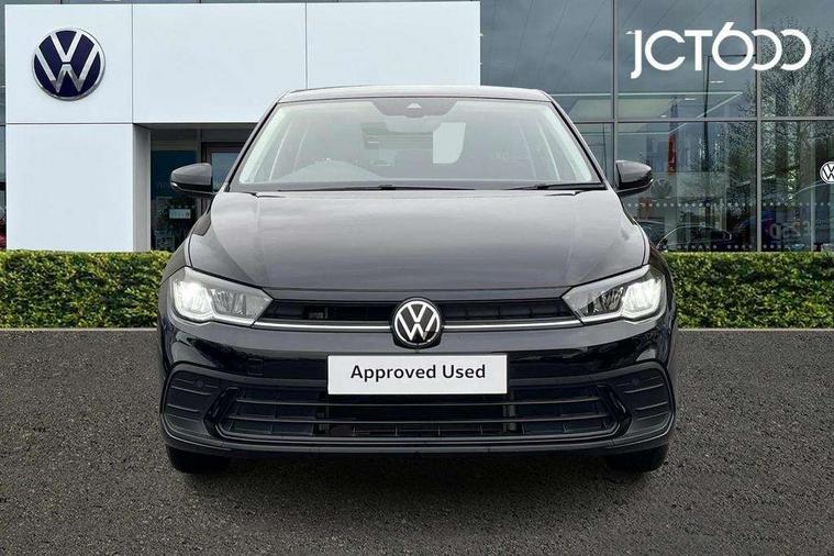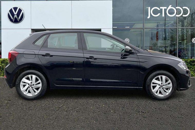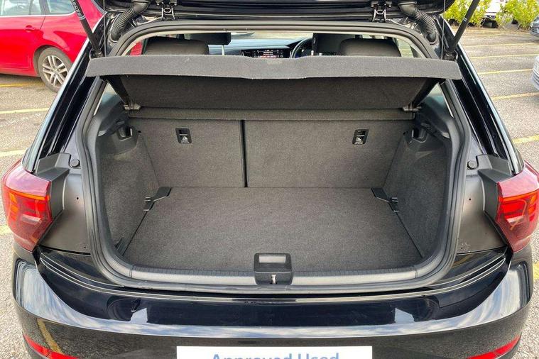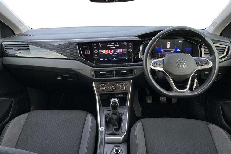 Adaptive cruise control without follow-to-stop and speed limiter, Bluetooth mobile phone interface, Driver alert system, Emergency call service, Front assist system, Power assisted speed sensitive steering, Preparation for We connect and We connect plus, Speedo and rev counter, electronic odometer, trip, service interval display and fuel gauge, Standard rear axle, Travel Assist - Lane keeping system and traffic jam assist, Travel assist including emergency assist, Trip computer, Warning signal and warning light for front and rear seatbelts not fastened, Washer fluid level indicator, Wireless app connect, Front wheel drive, Rear shock absorpion, Start-stop system with battery regeneration (recuperation - energy recovery during braking), DAB Digital radio, Diversity antenna for FM reception, Automatic dimming interior rear view mirror, Body colour bumpers, Body colour door handles, Body colour door mirrors, Chrome plated radiator grille inserts, air vent surrounds and light switch surrounds, Electric front windows, Heat insulating glass in side and rear windows, Heat insulating glass windscreen, Power folding adjustable/heated exterior mirrors and front passenger exterior mirror lowering function, Rain sensor, Rear electric windows, Rear fog light, Rear windscreen washer and wiper with interval delay, Third brake light, 12V power socket in centre console, 2 front and 2 rear reading lights, 2 USB-C ports in the front, 2 USB-C charging sockets on the center console in the rear, 3 rear head restraints, 60/40 split folding rear seat and rear seat bench not split, Ceramique headliner, Door and side trim panel, Driver and front passenger seat height adjustment, Driver/passenger sunvisors with illuminated vanity mirrors, Front centre armrest, Front seat backrest storage pockets, Front standard seats, Handbrake lever handle in leather, Hartley/Thomas cloth upholstery, Isofix child seat preparation easy-fit (for two outer rear seats, and front passenger seat) compatible with I-size, Leather trimmed gear knob, Luggage compartment cover, Luggage compartment floor, Luggage compartment lighting, Multifunction steering wheel, Standard pedal cluster, Light and vision pack - Polo, 3 point height adj front seatbelts + pretensioners, 3x3 point rear seatbelts, ABS, Driver and front passenger airbag with front passenger airbag deactivation, Drivers and front passengers safety optimised head restraints, ESC (Electronic stability control) + EDL (Electronic Differntial lock) and ASR (Traction control), Extended and predictive pedestrian/ cyclist protection, Front curtain and side airbags with center airbag, Front disc brakes, Hill hold control, Rear drum brakes, Single tone horn, Tyre pressure loss indicator, Alarm with interior protection, Anti-theft alarm system with interior monitoring, backup horn, and towing protection, Anti-theft wheel bolts, Electronic engine immobiliser, Lava stone black gloss/matt decorative inserts in dash and front door panels, Low rolling resistance tyres,