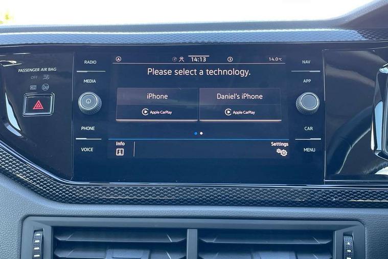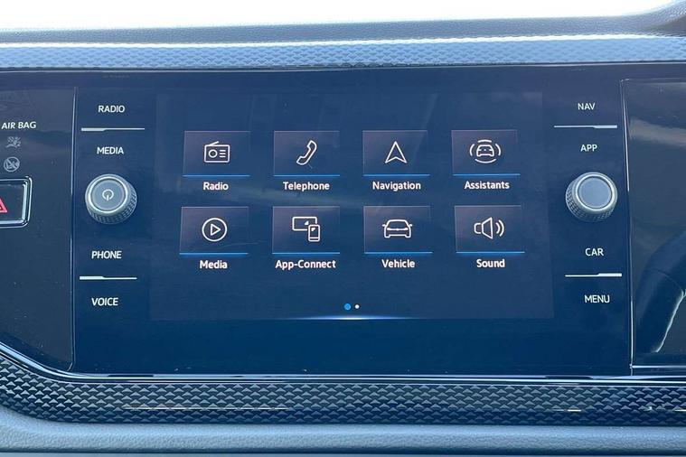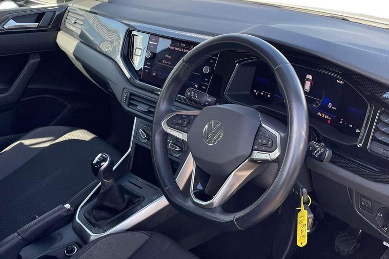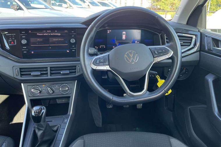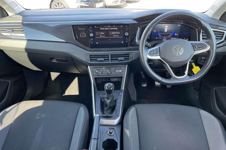 Adaptive cruise control without follow-to-stop and speed limiter, Bluetooth mobile phone interface, Driver alert system, Emergency call service, Front assist system, Power assisted speed sensitive steering, Preparation for We connect and We connect plus, Speedo and rev counter, electronic odometer, trip, service interval display and fuel gauge, Standard rear axle, Travel Assist - Lane keeping system and traffic jam assist, Travel assist including emergency assist, Trip computer, Warning signal and warning light for front and rear seatbelts not fastened, Washer fluid level indicator, Wireless app connect, Front wheel drive, Rear shock absorpion, Start-stop system with battery regeneration (recuperation - energy recovery during braking), DAB Digital radio, Diversity antenna for FM reception, Automatic dimming interior rear view mirror, Body colour bumpers, Body colour door handles, Body colour door mirrors, Electric front windows, Heat insulating darkened glass in side and rear windows, Heat insulating glass windscreen, Power folding adjustable/heated exterior mirrors and front passenger exterior mirror lowering function, Rain sensor, Rear electric windows, Rear fog light, Rear side wing doors, Rear windscreen washer and wiper with interval delay, Third brake light, 12V power socket in centre console, 2 front and 2 rear reading lights, 2 USB-C ports in the front, 2 USB-C charging sockets on the center console in the rear, 3 rear head restraints, 60/40 split folding rear seat and rear seat bench not split, Ceramique headliner, Chrome plated radiator grille inserts, air vent surrounds and light switch surrounds, Door and side trim panel, Driver and front passenger seat height adjustment, Driver/passenger sunvisors with illuminated vanity mirrors, Front centre armrest, Front seat backrest storage pockets, Front standard seats, Handbrake lever handle in leather, Hartley/Thomas cloth upholstery, Isofix child seat preparation easy-fit (for two outer rear seats, and front passenger seat) compatible with I-size, Leather trimmed gear knob, Luggage compartment cover, Luggage compartment floor, Luggage compartment lighting, Multifunction steering wheel, Single front passenger seat, Standard pedal cluster, Light and vision pack - Polo, 3 point height adj front seatbelts + pretensioners, 3x3 point rear seatbelts, ABS, Driver and front passenger airbag with front passenger airbag deactivation, Drivers and front passengers safety optimised head restraints, ESC (Electronic stability control) + EDL (Electronic Differntial lock) and ASR (Traction control), Extended and predictive pedestrian/ cyclist protection, Front curtain and side airbags with center airbag, Front disc brakes, Hill hold control, Manual child lock in rear doors, Rear drum brakes, Single tone horn, Tyre pressure loss indicator, Alarm with interior protection, Anti-theft alarm system with interior monitoring, backup horn, and towing protection, Anti-theft wheel bolts, Electronic engine immobiliser, Lava stone black gloss/matt decorative inserts in dash and front door panels, Low rolling resistance tyres,