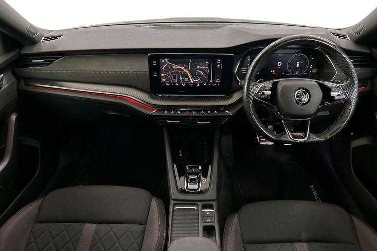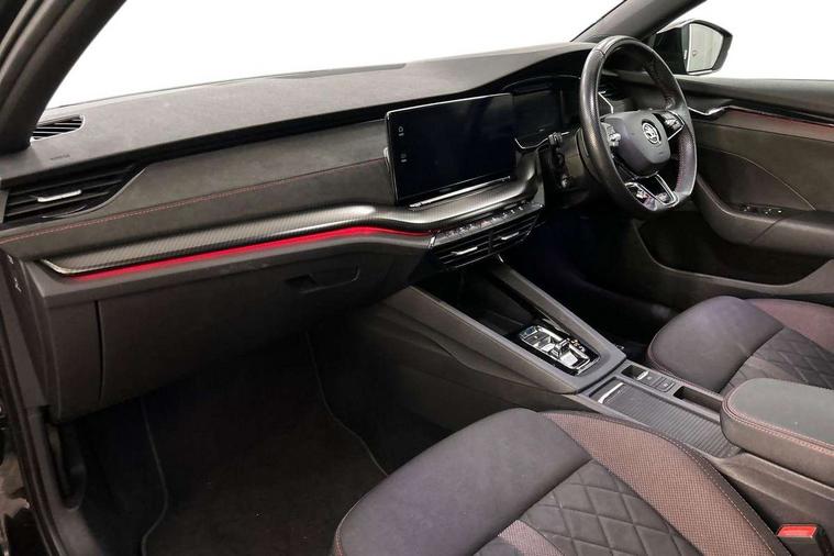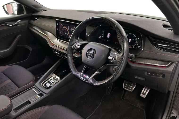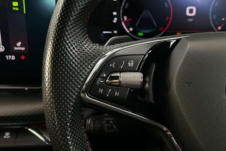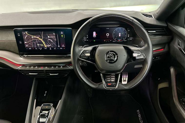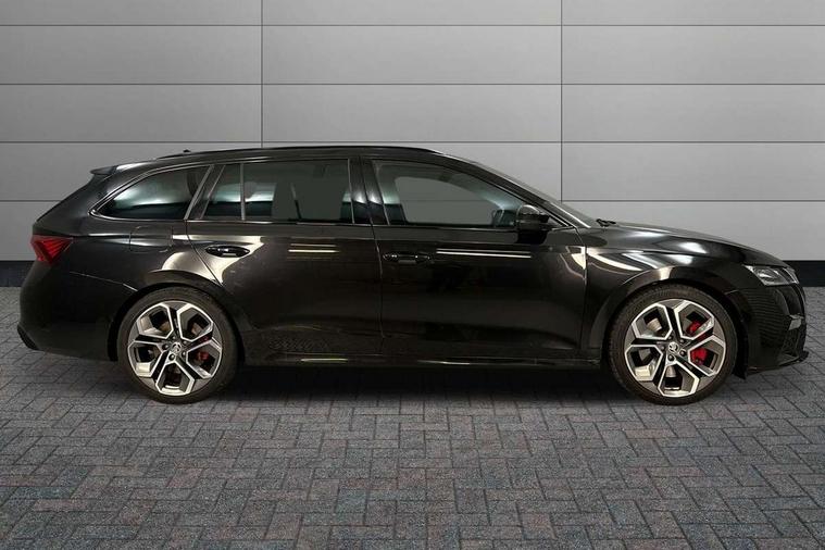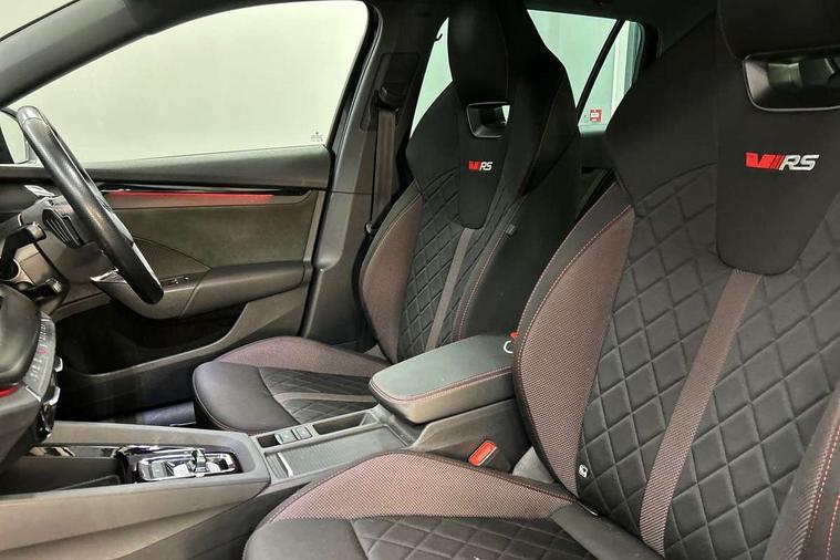 1x USB Type C port in rear view mirror (charging only), 2x USB Type C ports in rear of front centre armrest (charging only), Bluetooth system, Columbus satellite navigation with 10" touchscreen display, eCall emergency system, Front and rear parking sensors with manoeuvre assist, Front assist system, Progressive dynamic steering, Smartlink (includes android auto and mirrorlink), Speed limiter, Turn Assist, Virtual Cockpit - 10.25" digital display, Voice control system, Wireless SmartLink for Apple Car Play, Electronically controlled limited slip differential, Front and rear stabilizers, 2x USB Type C ports (for charging and data transfer), 8 Speakers, DAB Digital radio, Aero front windscreen wipers with intermittent function, Auto dimming rear view mirror, Black roof rails, Body colour door handles, Chrome exhaust tailpipes, Door sills with vRS logo, Electric front and rear windows, Exterior gloss black sports styling including front grille, side strip, window surrounds, door mirror and badging, Full LED Matrix headlights with AFS and cornering front fog lights, Headlight washers, Heated rear windscreen, High level third brake light, Ice scraper in fuel cap, LED daytime running lights, Rain and light sensors, Rear fog light on one side, Rear privacy glass, Rear side wing doors, Rear spoiler, Rear window wiper, 3 seat bench in 2nd row, 4 foldable roof handles, Aluminium pedals, Black headlining, Black microsuede padded dash panel with red contrast stitching, Chrome inner door handles, Front centre armrest, Front head restraints, Heated front seats, Illuminated air conditioned glovebox, Leather trimmed gearshift lever, Luggage compartment lighting with two side lamps, Mechanical rear seat release, Parcel shelf - rolling, Single front passenger seat, Sunglasses storage, Textile floor mat set, Three spoke leather sports multifunction steering wheel with paddles, Ticket holder, Umbrella in door panel, Unsplit rear bench seat and split folding backrest, LED interior light pack - Octavia, 3 point front/outer rear seatbelts+pre-tensioners, Alarm with interior monitoring, tilt sensor and back up horn, Automatic door unlocking in case of crash, Automatic fuel cut off in case of crash, Automatic warning lights in case of emergency braking, Curtain airbags and front side airbags, Driver and front passenger airbags, Drivers knee airbag, Electronic parking brake, Emergency call and proactive services, ESC including ABS, EBV, MSR, ASR, EDS, HBA, DSR, Front and rear disc brakes, Hill hold control, Hill start assist, ISOFIX on front passenger seat and outer rear seats, Manual rear child locks, Passenger airbag deactivate switch, Red brake calipers, Two tone horn, Tyre pressure monitor, Visual and acoustic seat belt reminder, Warning reflectors in front door, Door locks with immobiliser, Keyless entry and start/stop including rear doors, Remote central locking, Carbon optic decorative inserts, Gloss black air vent surrounds, 19" Altair anthracite alloy wheels,