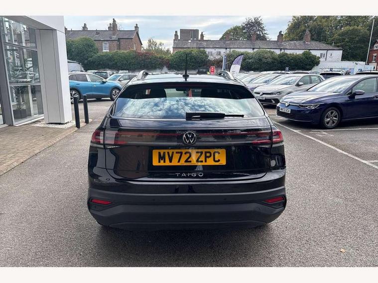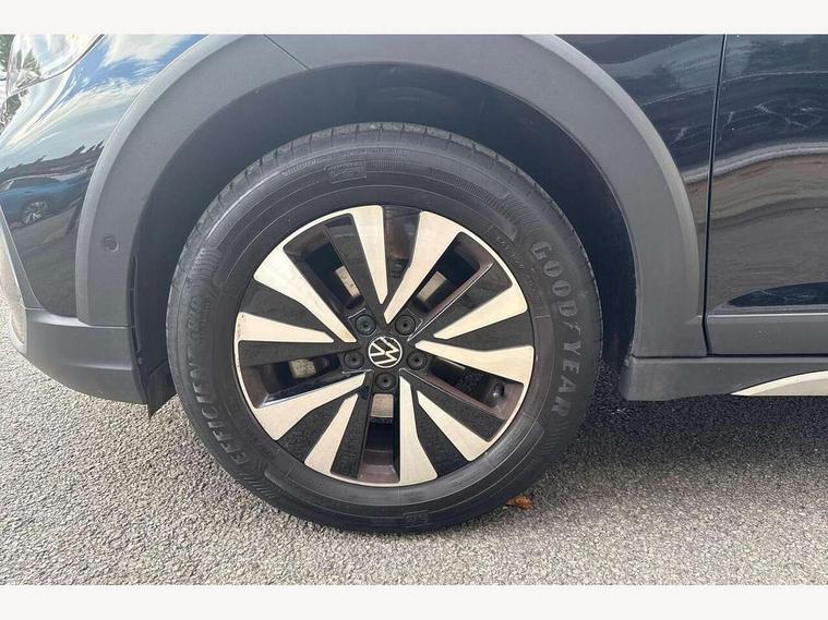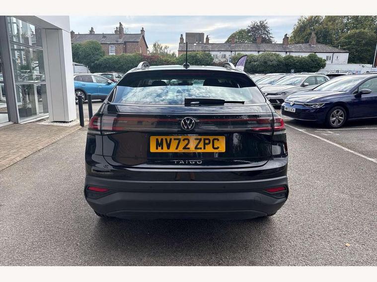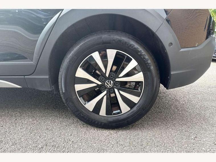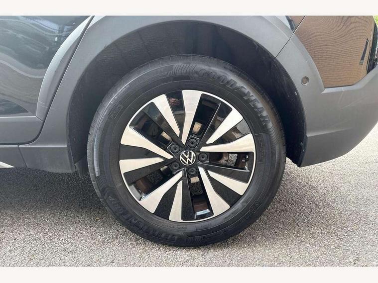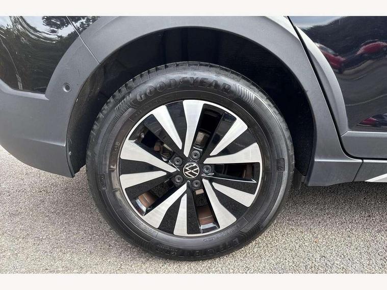 Adaptive cruise control, App-Connect including App-Connect Wireless, Driver alert system, e-Call (emergency call), Power Steering, Travel assist including emergency assist, Washer fluid level indicator, Wireless Charging including Bluetooth, Start-stop system with battery regeneration (recuperation - energy recovery during braking), Digital radio reception (DAB+), Diversity antenna for FM reception, WeConnect plus, Ambient lighting with logo projection, Aspherical driver's exterior mirror, Auto headlights, Body coloured bumpers, Body coloured exterior mirror housings and door handles, Electric windows, External USB type C socket and charging sockets, Front fog lamps with cornering function, Headlight range control, Heat insulating glass windscreen, LED headlamps, LED rear combination lamp, LED third brake light, Left convex exterior mirror, Power folding adjustable/heated exterior mirrors and front passenger exterior mirror lowering function, Rear fog light on one side, reversing light on both sides, Rear side wing doors, Rear wash/wipe with intermittent wipe setting, 'Slash/ Austin' Cloth upholstery, 12V socket in centre console, 2 front reading lights, 3 rear head restraints, 3 seat bench in 2nd row, Black carpets, Child seat anchor for child seat system i-Size, 2x top tether and child seat anchor in front on front passenger side, Door and side trim panels in titan black, Driver and front passenger seat height adjustment, Front centre armrest, Height and reach adjustable steering wheel, Leather trimmed gear knob, Leather wrapped multifunction steering wheel with paddle shift, Luggage compartment floor, Luggage compartment light, Lumbar support for driver's and front passengers seat, Seat covers in titanium black, Single front passenger seat, Split folding backrest with centre armrest and unsplit rear seat bench, Storage compartment under front seats, Sun visors with illuminated vanity mirrors, Chrome Package - Taigo, Drivers assistance pack - Taigo, Light and Sight pack including High beam assist - Taigo, 2 x 3-point seatbelts/outer rear seats with ECE label, 3-point seat belts in front with pretensioner and height adjustment, 3-point seatbelt for centre rear seat, Driver and front passenger airbags with front passenger airbag de-activation, front side and curtain airbags, Driver and front passenger safety-optimised head restraints, Electronic stability control, Extended and predictive pedestrian/ cyclist protection, Front and rear disc brakes, Front curtain and side airbags with center airbag, Hill start assist, Manual rear child locks, Single tone horn, Tyre pressure loss indicator, Anti-theft alarm system with interior monitoring, backup horn, and towing protection, Anti-theft wheel bolts, Lava stone black gloss/matt decorative inserts in dash and front door panels, Low rolling resistance tyres,