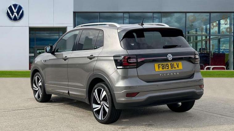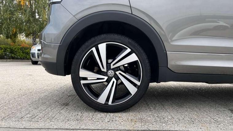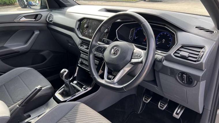 'Lights On' Reminder warning buzzer, Active Info display 10.25" high resolution TFT dash display with customisable menu and information, Adaptive cruise control including front assist, radar sensor controlled distance monitoring system, city emergency braking, cruise control/speed limit, Car-Net App-Connect with VW media control, Discover navigation system with 8.0" colour screen, radio/CD player, European map data, Driver alert system, Dusk sensor, eCall emergency call system, Lane assist with blind spot plus lane keeping system, Low washer fluid warning light, Multifunction computer with visual gear change recommendation for fuel consumption, Power assisted speed sensitive steering, Progressive steering, Side scan blind spot detection, Speedo, rev counter, electronic odometer, trip, service interval display, exterior temperature and fuel gauge, Stop/start system, Warning sound and light for doors and tailgate open, Warning sound and light for front seatbelts unfastened, Battery regeneration during braking, Misfuel prevention device, 2 USB sockets in rear, Composition Media with 8"colour touch screen including DAB/CD drive, MP3/WMA, AUX-in/SD slot, 1 USB port and Bluetooth telephone connectivity, Multi device interface (MDI) with USB connection, Premium USB cable for Apple or Android smartphone compatibility, Simultaneous pairing of 2 compatible mobile devices, Title and cover art display, Automatic dimming interior rear view mirror with rain sensor, Automatic hazard lights activation under emergency braking, Body colour door handles, Body colour door mirrors with integrated indicators, Body colour rear roof spoiler, Body coloured bumpers, Front and rear electric windows, Front fog lights with static cornering function, Galvanised body, Heated rear window, High level 3rd brake light, LED headlights with auto range adjustment + LED daytime running lights, Lower door sills and door pillars in black, Manual coming/automatic leaving home lighting function, Radiator grille with chrome lamelel and bumpers in wagon paint, Rear tail lights LED except turn signals, Rear tinted glass 65% approx light absorbing from B pillar backwards, Rear window aerial, Rear windscreen washer and wiper with interval delay, Reflectors in all doors, Silver roof rails, Stainless steel door sill protection, Tailgate with integrated roof spoiler, Unique R Line badging, Windscreen wipers/ intermittent wipe + 4 position delay, 12V Accessory socket in centre console, 2 Front and rear reading lights incorporating LED technology, 2 Zone electronic climate control with automatic air recirculation, 3 rear head restraints and 3 rear three point seat belts with ECE label, 60/40 split folding rear seat backrest, Aluminium pedals, Black headlining, Carbon flag cloth upholstery, Drawer under drivers seat, Driver and front passenger sunvisor with vanity mirror, Driver's sunvisor with ticket holder, Dust and pollen filter, Front + rear carpet mats, Front centre armrest with storage compartment and two rear air vents, Front comfort seats, Front seat back storage pockets, Front seat R Line logo with rear seat backrest, Front sports seat with height and lumbar adjustment, Glovebox, Heating and fresh air system with 4 stage blower, Height/reach adjust steering wheel, Instrument lighting white adjustable panel illumination, Interior light with delay, Isofix child seat preparation for 2 rear child seats, Luggage compartment cover, Luggage compartment lighting, Moveable and foldable Rear bench seat, Removable luggage cover, Storage compartment in driver and passenger doors, Three spoke multi-function leather trimmed steering wheel and gearknob, Variable boot floor, R Line styling pack - T-cross, 3 point seat belt with electric pre tensioner, Anti-lock Braking System (ABS) with Hydraulic Brake Assist (HBA), Automatic post collision braking system, Driver and front passenger safety-optimised head restraints, Drivers and Front Passengers airbags with front passengers airbag deactivation switch, ESC with EDL, ASR, EDTC and trailer stabilisation function, Extended and proactive pedestrian protection, Front and rear curtain airbags, Front seat side impact airbags, Front ventilated disc brakes and rear disc brakes, Height adjustable 3 point automatic front seatbelts with pretensioners, Hill start assist, Pre crash preventive occupant protection, Rigid safety cell with front and rear crumple zones, Tyre pressure loss indicator, Volkswagen roadside assistance, Alarm with remote central locking and interior protection, Central locking without safe fuse with radio remote control and 2 radio folding keys, Child security locks in rear doors, Electronic engine immobiliser, Remote tailgate unlocking using key fob, Race decorative inserts in dash and doors, 18" Nevada black alloy wheels + anti theft wheel bolts,