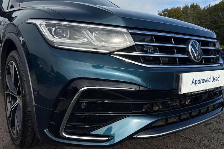 Adaptive cruise control ACC stop and go including speed limiter, App-Connect incl. App-Connect Wireless for Apple CarPlay and Android Auto, Bluetooth phone integration system, Digital Cockpit Pro - Active info display, Distance control assist, Driver alert system, Driver profile selection, Dynamic road sign display, eCall emergency call system, Electromechanical speed sensitive power steering, Lane keeping system Lane Assist, Lights on warning, Multifunction front facing camera, Outside temperature display, Premium multifunction display with multi colour display, Revision / skills operating concept travel assistant, Service interval indicator, Start/stop system with regenerative braking, Warning sound and light for doors and tailgate open, Battery regeneration during braking, Diesel particulate filter, Misfuel prevention device for diesel engine, XDS electronic differential lock for improved traction and handling, 2 USB-C ports in the front, 1 USB-C charging socket on the center console in the rear, Diversity antenna for FM reception, Radio, SD card slot, Simultaneous pairing of 2 compatible mobile devices, SMS functionality - read, compose and send SMS messages using touch-screen display, Title and cover art display, Auto dimming interior rear view mirror, Automatic headlight control system, Black roof rails, Body colour door handles, Body coloured bumpers in R Line style, Chrome moldings on the side windows, Coming/leaving home lighting function, Dynamic headlight range control, Front and rear electric windows, Heated rear window, High level 3rd brake light, Laminated safety glass windshield, heat and sound insulating, LED rear number plate lights, License plate carrier in front and rear, Poor weather light and cornering light, Privacy glass for rear side windows and rear window, R Line body kit, R Line side sills, Rain sensor windscreen wipers, Rear exhaust tailpipe, Rear fog lamp, Rear spoiler in R style, Rear windscreen washer and wiper with interval delay, Side and rear windows in heat insulating glass, Trailer Stability Programme, Unique R Line badging, Windscreen wipers/ intermittent wipe + 4 position delay, 12V outlet in center console rear and in luggage compartment, 2 cup holders in front, 2 LED front reading lights, 2 LED rear reading lights, 3 rear headrests, 4 load lashing points, 40:20:40 split folding rear seats, Air Care Climatronic 3 zone automatic climate control with enhanced air filter and controls in the rear, Backrest release for left front seat, Black headlining, Brushed stainless steel pedals and footrest, Carpet mats in front and rear with decorative stitching in Gray, Climate control unit rear with touch function, Door and side trim panel in foam film, insert in leatherette, Front footwell illumination, Front seats head restraints (x-adjustment), Height adjustable front seats, Height/reach adjust steering wheel, Instrument lighting white adjustable panel illumination, Interior light with delay, Isofix Preparation 2 Rear child seats, Leather gear knob, Lockable cooled glovebox, Luggage compartment lighting, Rear bench seat asymetrically split folding, longitudinally movable and folding with load-through hatch and center armrest, Remote unlocking for rear seat backrest, Removable luggage cover, Safety optimised front head restraints, Sliding/reclining rear seats, Standard rear seat release, Storage compartment in driver's door, Storage compartment in passenger's door, Storage compartment in rear doors, Storage compartments in luggage area left and right, Storage tray on dashboard, Sun visors with illuminated vanity mirrors, Tool kit, Top front comfort seats, Variable boot floor, height adjustable and removable, Ambience pack - Tiguan R Line, Driver assistance pack plus - Tiguan, 3 point seat belt for centre rear seats, 3 point seat belts with seat belt pretensioners for the outer rear seats, Active bonnet, Curtain airbags for front and rear passengers, Driver/Front Passenger airbags, Drivers knee airbag, Electronic parking brake with auto hold, Electronic Stability Control with driver steering recommendation, ABS, ASR, EDL, EDTC and trailer stabilization, Front assist with autonomous emergency braking (for Adaptive Cruise Control ACC up to 130 mph), Front disc brakes, Front passenger airbag deactivation, Front side airbags, Height adjustable front 3 point seatbelts + pretensioners, Hill hold control, Pedestrian monitoring system, Proactive passenger protection system in combination with front assist, Rear disc brakes, Rigid safety cell with front and rear crumple zones, Two tone horn, Warning sound and light for front seat belts if unfastened, Anti theft alarm system with interior monitoring, backup horn and towing protection, Anti theft wheel bolts, Electronic engine immobiliser, 20" Misano black with diamond turned surface alloy wheels with Airstop tyres,