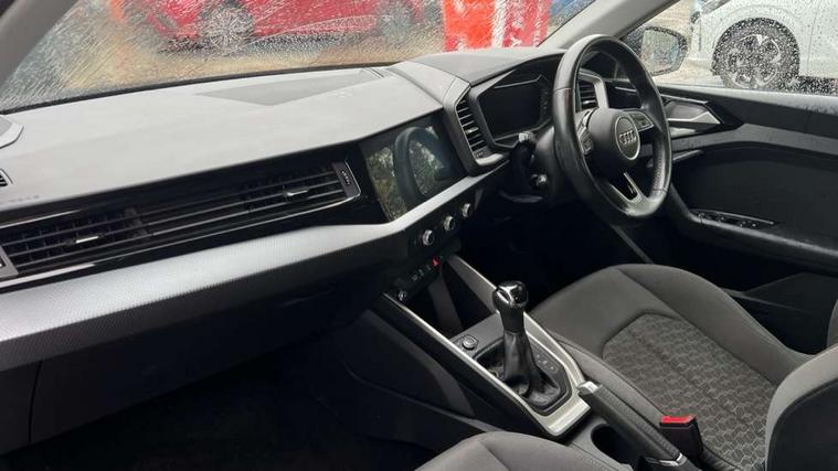 10.25" Digital instrument cluster display classis style instrument dials + speed, odometer, time, outside temperature, telephone menu + fuel level warning, Audi connect safety emergency and service including E-call, Audi drive select - power steering assistance + engine + gear shift 3 preset modes (auto, dynamic, efficiency and an Individual mode), Audi smartphone interface with connect compatible smartphone via USB directly MMI display + Nav, music, third party apps controlled via MMI controller, Automatic start/stop system, Bluetooth interface, Cruise control, Driver's information system, Electromechanical power steering, Lane departure warning system, Rear parking sensor, Service interval indicator, Speed limiter, Voice control system, Washer fluid level indicator, Dynamic suspension, 1 x SDXC card reader, 1 x USB type C and 1 USB type A charging points, DAB Digital radio, MMI radio plus with 8.8" colour MMI display screen and MMI touch, Auto dimming rear view mirror, Body coloured bumpers, Body coloured door mirrors, Electric front and rear windows, Electrically adjustable, heated, folding door mirrors with integrated LED side indicator, Front side air inlets in grained matt black and C frame in titanium black, Heat insulating glass windscreen and side windows, Heated rear windscreen, LED headlights with LED rear lights + dynamic rear indicators + headlight adjustment and high beam, turning light + LED daytime running lights, Radiator grille and rear diffuser in matt titanium black, Radiator protective grille frame in matt aluminium silver, Rain and light sensors, Rear fog lights, Rear wiper, Scandium grey tailpipe trim, Side front spoiler lips in grained matt black, 12V socket in centre console with two cup holders, 3 rear seats with headrests, 40:60 Split folding rear seat or folded fully, Door sill trims with aluminium inlay, Driver and passenger seat with manual height adjust with forward and backwards adjustment, Front head restraints, Front/rear floor mats, Height and reach adjustable steering wheel, ISOFIX child seat mounting for front passenger and outer rear seats including top tether attachment point of outer rear seats, Leather gear knob with aluminium trim, Leatherette handbrake grip, Luggage compartment light with front and rear reading lights, Manually adjustable lumbar support in front seats, Novum cloth upholstery with front sport seats, Titanium grey cloth headlining, Luggage compartment pack - A1, 3x3 point rear seatbelts, Audi pre-sense front with pedestrain and cyclist recognition, Brake assist function, Driver and front passenger airbag with front side and head airbags, Electronic Stability Control including ABS, EBD, ASR and EDL, Front and rear seatbelt reminder, Front passenger airbag deactivation switch, Hill hold assist, Seatbelt height adjustment for front seats, Seatbelt monitoring, Tyre pressure warning light, Warning triangle and first aid kit, Anti theft alarm, Anti theft wheel bolts and loose wheel warning, Immobiliser, Remote central locking with 2 foldaway keys, Aluminium trim for control switches, air vents and digital instrument cluster, Silver grey accent areas including air vents, door handle recesses and centre console in diamond paint finish, Slate grey inlays polygon structure in fine paint finish,