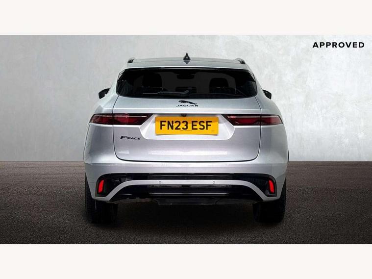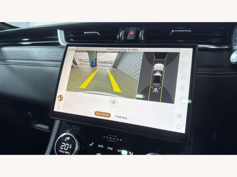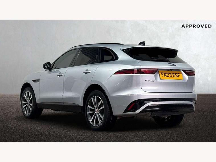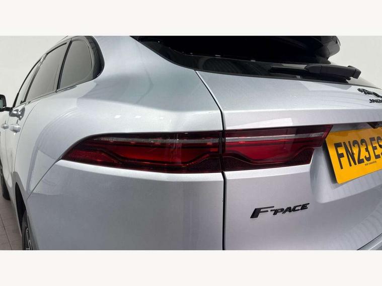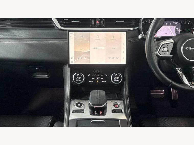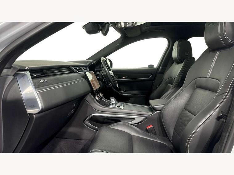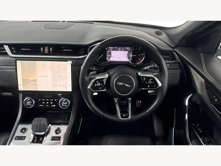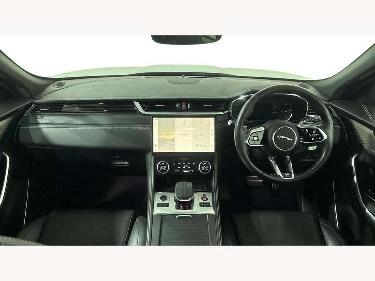 11.4" touchscreen, Android Auto, Apple car play, Bluetooth connectivity, Driver alert system, Driver condition monitor, eCall emergency call system, Eco driving style assistant, Electric power assisted steering, InControl remote, Jaguar Toggle shift selector, Lane departure warning system, Lane keep assist, Outside temperature gauge, Personalisation profile management, Pivi pro connected navigation system with app interface and media storage, Pro services and wifi hotspot, Push button starter, Service interval indicator, Speed proportional steering, Start up sequence with movement in dials and lighting, Traffic sign recognition with adaptive speed limiter, Trip computer, Voice control system, 8 speed automatic transmission, All terrain progress control, All Wheel Drive (AWD), Open differential with torque vectoring by braking, AM/FM radio, Bluetooth streaming, DAB Radio (Digital Audio Broadcasting), Dynamic volume control, InControl apps, InControl protect, iPod integration, 3 flash lane change indicators, Animated directional indicators, Approach Illumination, Auto dimming rear view mirror, Automatic headlights, Electric windows with one touch open/close and anti trap, F-Pace and R Dynamic badge, Gloss black door mirrors, Gloss black roof rails, Green tinted glass, Heated front windscreen + heated washer jets, Heated rear window with timer, Jaguar script and leaper, LED High level third brake light, LED tail lights, Non acoustic front windscreen, Privacy glass, R Dynamic badge on side door, Rain sensor windscreen wipers, Rear fog lights, Rear metal tread plates, Rear side wing doors, Rear wiper, Trailer stability assist, Variable front intermittent wipers, 12V power point front, 3 rear headrests, 3 seat bench in 2nd row, Air distribution speed, Bright metal foot pedals, Centre armrest console, Centre console with side storage, Deletion loadspace storage rails, Door sill tread plates, Fold flat front seats, Front centre armrest with storage compartment, Front door storage space, Glovebox finisher with jaguar script, Heated steering wheel, Hooks in loadspace, Illuminated glovebox, Interior front door handles with separate locking switches, ISOFIX on outer rear seats, Jaguar sense, Luggage tie downs in loadspace, Mist sensing, Multifunction steering wheel, Overhead lighting console, Overhead stowage for sunglasses, Passive front head restraints, Premium cabin lighting, Premium carpet mats, R-Dynamic branded leather steering wheel, Rear air vents, Rear armrest with twin cupholders, Rear centre headrest, Rear door storage space, Reversible boot floor, Satin chrome gearshift paddles, Shopping bag hook, Single front passenger seat, Sunvisors with illuminated vanity mirrors, Twin front cupholders with cover, Black Exterior pack - F Pace R-Dynamic/Sport, Exterior pack - F Pace R-Dynamic, Online Pack with data plan - F-Pace, 355mm front brakes and 325mm rear brakes, 3x3 point rear seatbelts, ABS, All surface progress control (ASPC), Brake pad warning light, DSC - Dynamic Stability Control, Electric parking brake (EPB), Emergency brake assist, Front airbags with passenger seat occupant detector, Front and rear seatbelt reminder, Front side airbags, Full length side window curtain airbag, Hill launch assist, Power operated child locks, Torque vectoring brake, Traction control, Tyre pressure monitoring system, Immobiliser, Keyless Start, Locking wheel nuts, Perimeter alarm, Remote central locking, Valet mode,