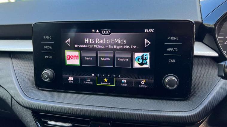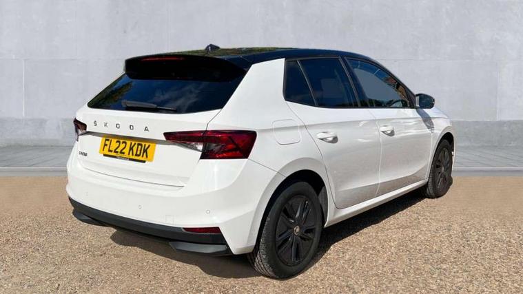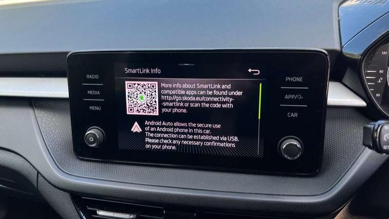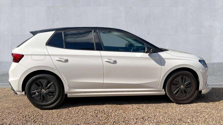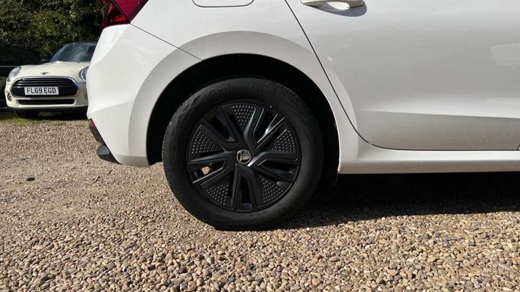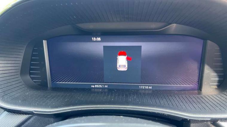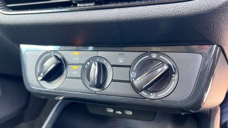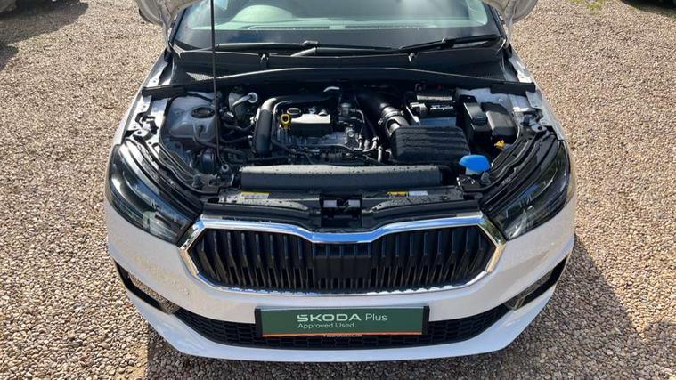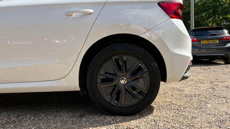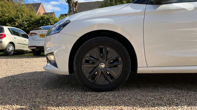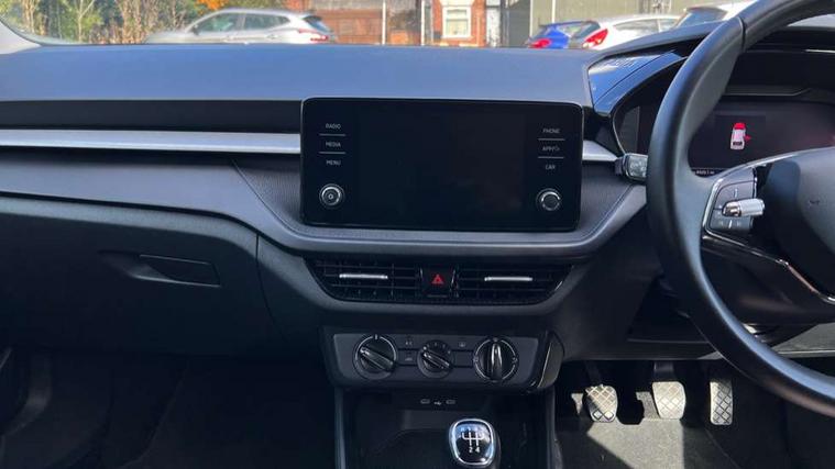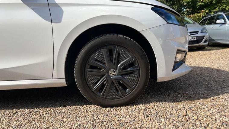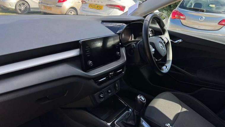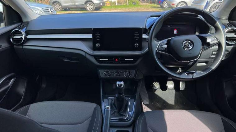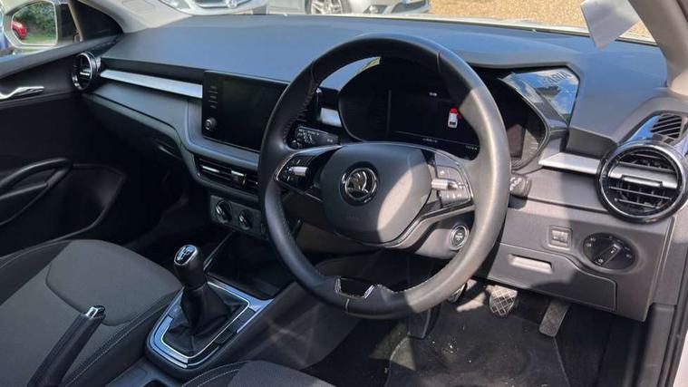 Bluetooth connection, Driver alert system - DAS, Electromechanical power steering, Exterior temperature gauge, Lane assist including road edge detection, Service interval indicator, Virtual cockpit with 10.25" colour display, 2x USB-C in the front (for data transmission and charging), 6 Speakers (4 in front and 2 in rear), Auxiliary socket for external MP3 player, Bolero radio with 8" colour display, DAB digital radio reception, Basic rear lights, Body coloured bumpers, Dimming rear view mirror with black frame, Door mirror integrated indicators, Electrically adjustable and heated door mirrors, Electrically adjustable front windows with function auto up/down, Front window wiper intermittent control, Headlight range control - Automatic, Ice scraper in fuel cap, LED daytime running lights with coming and leaving home feature, Mechanical adjustable rear windows, Privacy glass, Rear LED fog light, Rear side wing doors, Rear window wiper with washing nozzles, Roof mounted spoiler, SKODA tailgate lettering in chrome, Third brake light, 3 rear headrests, Backrest split and folding, Central console with fixed cup holder and storage box, Chrome handbrake release button, Fabric upholstery, Gearshift knob/handle in leather, Grain satin black interior door handles, Hand brake lever handle in leather, Height adjustable front headrests, Height adjustable steering wheel, ISOFIX and TopTether anchorage points to the outer rear seats, ISOFIX and TopTether on the front passenger seat, Luggage compartment lighting, Pollen filter, Rear seat bench unsplit, Single front passenger seat, Storm grey headlining, Sun visors with mirror and airbag label on passenger side, Ticket holder, Umbrella in drivers door, 3-point height adjustable front seats belts with pretensioner and force limiter, Automatic warning lights in case of crash, Driver and passengers airbag with switch off function, e-Call+, ESC including ABS, MSR, ASR, EDS, HBA and XDS, Front and rear seat belt warning, FRONT ASSIST (AEB City and AEB Inter Urban), Front side airbags, Head airbags, One tone horn, Pedestrian protection, Three rear 3-points safety seat belts with pretensioner and force limiter including stop function for outer rear seat belts, Tyre pressure monitoring system, Anti-theft alarm system including immobiliser, interior monitoring, backup horn, and towing protection, Anodized cross line upper decorative trim, Colour Edition air vents, Grain satin black central console cover, Grain satin black lower decorative trim, Satin black door and side trim panel in front, Anti-theft wheel bolts protection, Super-low rolling resistance tyres,