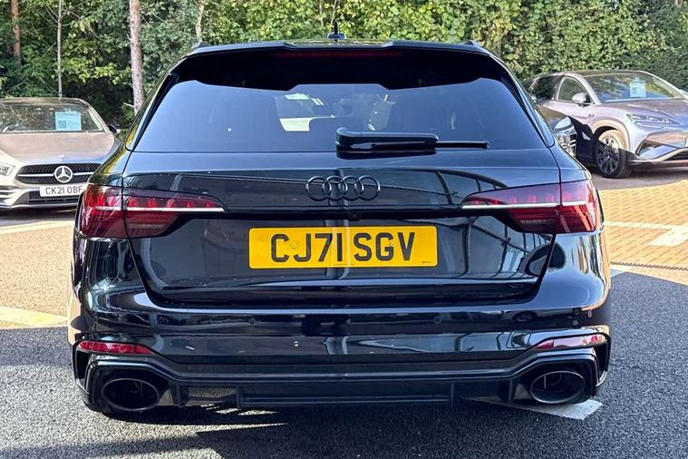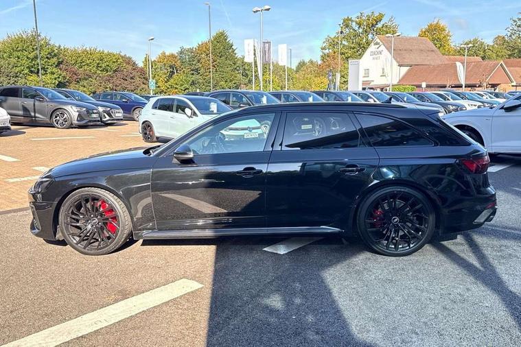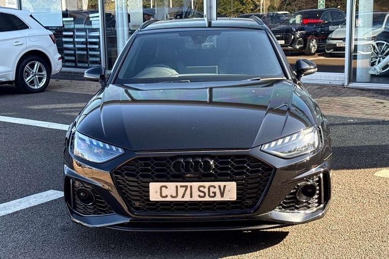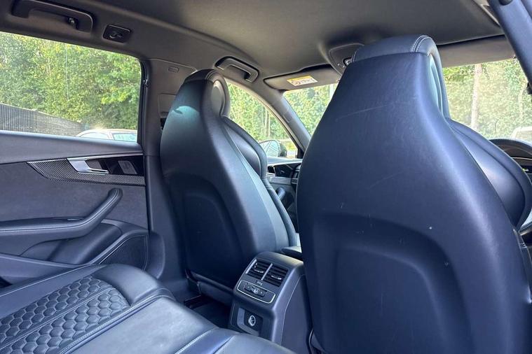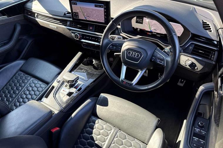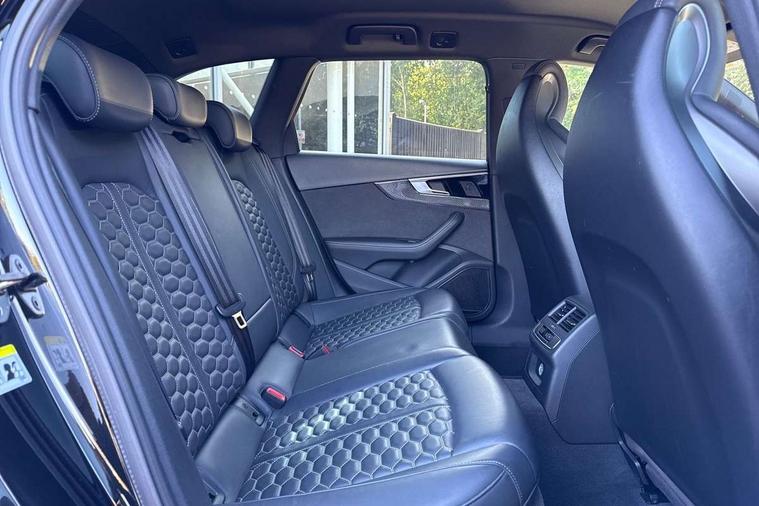 7" Colour driver information system, Amazon alexa Integration, Audi connect safety and service (e-call), Audi drive select, Audi parking system plus with front and rear sensors, Audi side assist, Audi smartphone interface, Audi virtual cockpit with RS specific display, Automatic start-stop system with coasting functionality and efficiency programme, Bluetooth interface, Electromechanical power steering, Email, calendar and text messages displayed via MMI, MMI Navigation plus with MMI touch includes 10.1" high resolution colour MMI display, 3D map, Power opening/closing tailgate, Rear view camera, Service interval indicator, Voice control system, 58 Litre fuel tank, Quattro sports differential, 2 USB charging ports, Audi sound system, DAB digital radio module, Acoustic windscreen, Audi matrix LED headlights with LED rear lights + dynamic front and rear indicators, Audi rings and lettering glossy black, Auto dimming rear view mirror, Automatic headlights + automatic windscreen wipers, Black roof rails, Blue tinted glass, Body colour door handles, Electric front windows, Electric rear windows, Electrically folding auto dimming/adjustable/heated door mirrors with memory function, LED side indicators and kerb view function for passenger side, Flared front and rear wheel arches, Front bumper with enlarged air inlets, Headlight range control, High beam assistant, High gloss black door mirror housing, High gloss black triangular aperture at rear door, Honeycomb design grille with quattro logo, Lateral air inlets next to front headlights, LED daytime running lights, LED indicators in door mirrors, Privacy glass with rear acoustic glazing, Rain and light sensors, Rear wiper, Roof spoiler, RS 4 badges on grille, the front wing panels and rear, RS4 dual branch chrome tailpipes with left and right oval pipes, 3 spoke multifunction plus leather steering wheel with heating and RS badging, 40/20/40 split folding rear seats with rear centre armrest, Black cloth headlining, Deluxe 3 zone electronic climate control, Electric load area cover, Electrically adjustable front seats, Fine nappa leather with contrast honey comb stitching + super sports seats with pneumatic massage function, Front centre armrest, Front headrests, Front/rear floor mats, Heated front seats, Height and reach adjustable steering wheel with full size airbag, Illuminated door sill trims with RS4 logo, ISOFIX child seat mounting and top tether, Leather door armrests and knee pad, Luggage compartment carpet, Rear headrests, Retractable load area cover, RS Specific perforated leather gear lever knob with contrast stitching, Stainless steel pedals, Sunvisors with vanity mirrors, Carbon black styling pack - RS4, LED Interior light pack - RS4, Non Smokers pack, 3 point seatbelts on all rear seats, Adaptive driver and front passenger airbags, Electromechanical parking brake, Electronic stabilisation control including ABS, ASR and EDL, Enhanced braking system, Front head airbags, Front seatbelt pretensioners + load limiters, Front side airbags, Hill hold assist, Multi-Collision braking, Pop-up bonnet for pedestrian protection, Pre sense city, Rear side airbags, Seatbelt monitoring, Traction control, Tyre pressure warning, Variable restraint system, Warning triangle and first aid kit, Anti theft alarm, Anti-theft wheel bolts, Immobiliser, Keyless Go, Remote central locking, Remote control key with RS emblem, Carbon twill inlays, 20" 5 segment spoke evo design glossy black sport alloy wheels, Tool kit, Tyre repair kit,