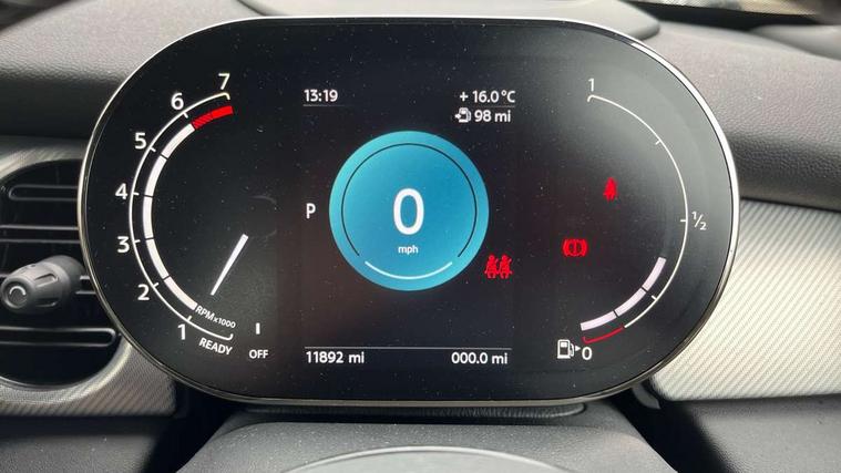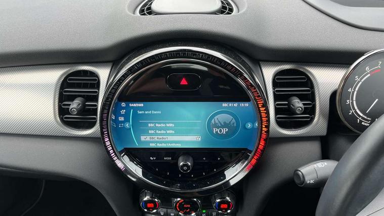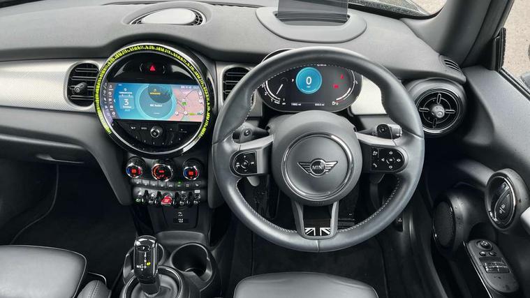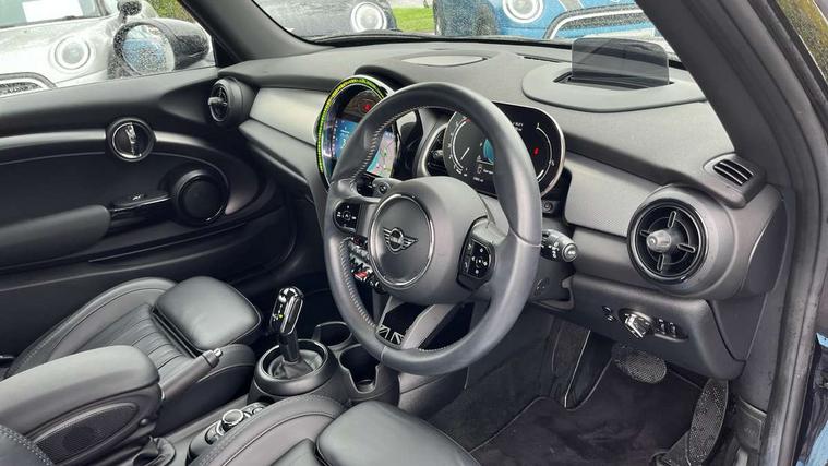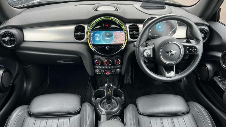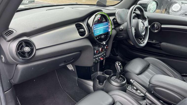 Automatic start/stop function with brake energy recuperation, Compatible mobile phone bluetooth with audio streaming, Cruise control with brake assist, Electro-mechanical speed dependant steering assistance, Flexible car sharing preparation, Instrument cluster, MINI Driving Modes - centre toggle switch to control driving setting (sport, mid and green), Mini E-call, MINI TeleServices, On board computer, Rear park distance control, Service interval indicator, Double Vanos system, Fully variable valve control, High precision injection, Performance Control, Steptronic sport transmission with double clutch and steering wheel paddles, 4 speakers in front door trims and underneath front seats, 8.8" touchscreen with LED ring, FM tuner and DAB digital radio, Automatic headlight activation switch, Bonnet scoop, Chrome line exterior - radiator grille bars, tailgate handle, lower front grille grating and rear central fog-light, Dynamic brake lights, Electric front windows, Heated rear window, Heated windscreen washer jets, LED headlight with closed ring and daytime driving lights, Metal door sill strips with Cooper S, Model logo Cooper S on right of tailgate, Rain sensor window wipers, Rear fog lights, Rear LED lights with union jack design, Rear window wiper, Side scuttle panel with integrated indicator, Sun/heat protection glass, White indicator lenses, 12V Accessory socket in centre console, 4 lashing eyes in luggage compartment, 60/40 split folding rear seat, Carbon black colour line - Knee roll and door armrest, Chrome interior highlights, Chrome line interior - air vents, gear lever base, door handles and speakers in doors, Cupholders, Front and rear head restraints, Front and rear isofix with front passenger airbag deactivation, Glove compartment, Height and length steering column adjustment, Interior lighting with 12 different colours across the dashboard, underneath door bezel with illuminated laser-engraved design on central display, Leatherette gearshift lever and handbrake gaiters, LED reading lights, vanity mirror lights, front foot well light and spotlight on front seats, Manual air conditioning, Mechanical seat adjustment - forward/back & backrest for front seats and driver seat height adjust, MINI yours badge on exterior pillar, Multifunction steering wheel, Passenger seat height adjuster, Satellite grey headlining including grab handles and clothes hooks, Storage compartments in doors, Storage pocket on back of front seats, Sunvisors with vanity mirrors, Velour floor mats, Walknappa leather steering wheel with grey seam and MINI Yours badge on Piano Black lower steering wheel spoke, 3 point seatbelts on all four seats, 6 Airbags - front, side, head and seat belt tensioners, Anti-lock braking system (ABS), DSC - Dynamic Stability Control, Front and rear disc brakes, Two tone horn, Tyre pressure monitoring system, Alarm system with tilt sensor, monitoring doors, bonnet interior and tailgate, Electronic vehicle immobiliser, Start/stop toggle with keyless go, Tool kit,