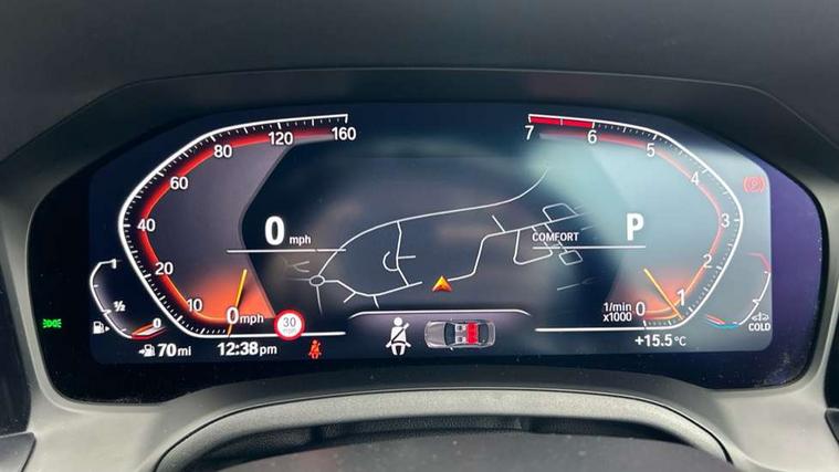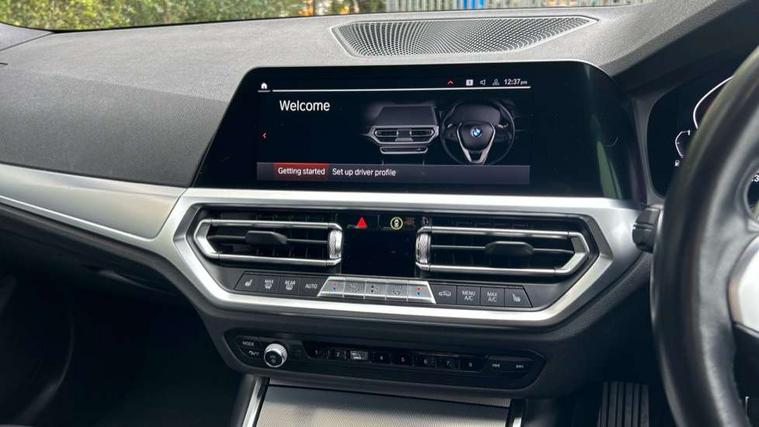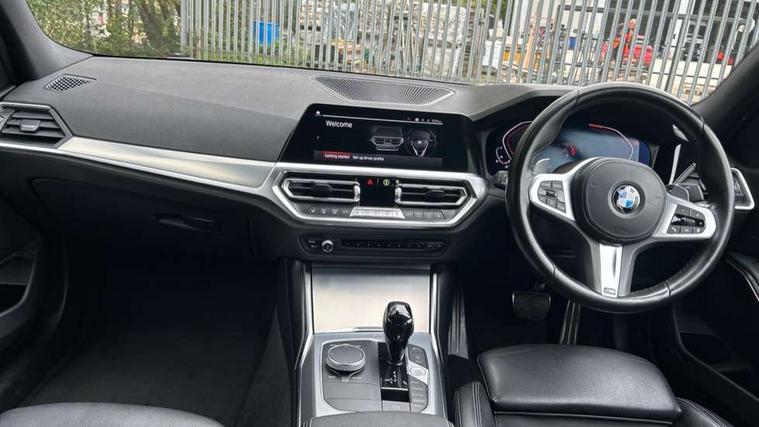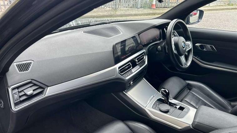 Active guard plus, Attentiveness assist, Auto start-stop, BMW iDrive controller on centre console, BMW Live Cockpit Professional Nav with 12.3" instrument display + 10.25" display, Intelligent Voice Assist, BMW OS 7, HDD, 2USB, 4G LTE connect, BMW service history, BMW Teleservices, Brake pad wear indicator in front and rear, Check Control warning system for monitoring of lights and door/luggage compartment open warning, Condition based service, Cruise control with brake function + speed limiter, Electric power steering with Servotronic steering optimised at all speed ranges, Instrument cluster with speedometer with mph readout, tachometer, fuel gauge and oil temperature gauge, Integrated owners handbook, Oil sensor for level and grade, warning by check control system, On board computer - average speed+fuel consumption, service interval, clock/date, odometer/trip meter, outside temperature display and ice warning, Optimum shift indicator, Personal Profile - automatic lock when driving away selectable, Variable sport steering, Balanced 50/50 weight distribution, Battery cut-out switch, Driving experience modes - Comfort, ECO PRO, Sport and Sport+ mode, Larger capacity fuel tank, M sport suspension, Petrol Particulate Filter, Stroke dependent dampers, DAB tuner, Electronic service booklet, Acoustic glazing, Active airstream chrome frame kidney grille with 8 high gloss black vertical slats, Automatic headlight beam throw control with load dependent regulating reaction, dynamic compensation of braking dive and acceleration squat, Black roof mouldings, Body colour door handles, Body colour front and rear bumpers, Body colour fuel filler flap, Body colour mirror caps with bottom segment in matt black, Dynamic brake lights, Electric windows - front and rear, with open/close fingertip control, anti-trap facility and comfort closing, Exhaust tailpipe - split left and right, Exterior mirrors - electrically folding with anti-dazzle, Fading support, Front and rear bumper system with replaceable deformation elements, Front black door sill finishers with BMW designation, Green tinted heat protection glazing, High gloss shadow line exterior trim, Interior rear view electrochromatic mirror with automatic anti dazzle function, LED daytime running lights, LED front fog lights, LED third brake light, Lightweight engineering, M designation on front side panels, left and right, Matt black exterior B pillar, Model designation on right side of tailgate, Rain sensor with automatic headlight activation, Rear boot, Rear side wing doors, Shark fin antenna, Two part LED tailights in L-shape with components in smoked glass, brake light, LED turn indicator and rear fog light, Visible VIN plate, Welcome lights in interior and door handle area, Windscreen wipers with integrated washing jets, 12V power socket in front storage compartment, 2 front cupholder in centre console with clamping elements and matt black inlay, 3 rear seats with non folding headrests with 3 point seat belts, 3 seat bench in 2nd row, 3 zone automatic air conditioning, 4 pieces lashing eyelets in luggage compartment, 40:20:40 split folding rear seat with loading system, Ambient lighting with welcome carpet light, Anthracite headlining, Armrest integrated in front and rear door trim + front centre console armrest, Backrest width adjustment, Centred top Luggage compartment lights, Four grab handles integrated in roof lining, Front and rear door exit lighting (left / right), Front and rear door pockets, Front and rear reading lights, Front and rear velour floor mats, Front head restraints, Front sport seats, Heated front seats, Height adjustable mechanically and infinitely variable steering column, Illuminated armrest storage compartment, Illuminated glove compartment with separate small compartment, Interior lighting - front centre over interior mirror with soft light, rear centre and front and rear footwell lighting, M sport leather steering wheel, Make-up mirror lights, Rear centre armrest with 2 cupholders, Rear centre console with storage compartment and ventilation grille, Single front passenger seat, Sunvisors with vanity mirrors and ticket pocket, Toolkit located in luggage compartment, Connected pack professional - 3 Series Saloon/Touring, M sport exterior styling pack - 3 Series Saloon/Touring, Parking assistant pack - 3 Series, 2 tone horn, BMW emergency call, Brake energy regeneration, Braking pre-tensioning, Child proof locking system in rear door, Child seat ISOFIX attachment rear outer seats, Coasting in idle in ECO PRO mode, Crash sensor activating of airbags, Unlocking doors, hazard warning lights, fuel cut off, interior lighting+activation of safety battery terminal clamp, Driver and front passenger side airbags, integrated in the door side seat backrest bolsters for all seat variants, Driver/Front Passenger airbags, Dry braking, Dynamic brake control, Dynamic stability control + (DSC+) - Anti-lock Braking System (ABS) with brake assist and cornering brake control + Automatic Stability Control (ASC), Dynamic Traction Control - DTC, Electric parking brake including automatic hold function and automatic release of the parking brake when driving off, Electronic differential lock control (EDLC), Front passenger manual airbag deactivation, Head airbags for all 4 outer seats, Hill start assist, Seat belt security check for driver and front passenger, Side impact protection, Three 3 point seat belts on all seats including front belt stopper, pyrotechnic belt tensioners and belt force limiters, Tyre pressure monitoring with three level warning strategy, Ventilated front and rear disc brakes, Warning triangle and first aid kit, Alarm system (Thatcham 1) with remote control and electronic engine immobiliser, Central locking switch for all doors, fuel filler cap and luggage compartment, Remote control with integrated key one button open/close vehicle and windows, sole opening of the luggage compartment lid and panic mode, Start/stop button with 