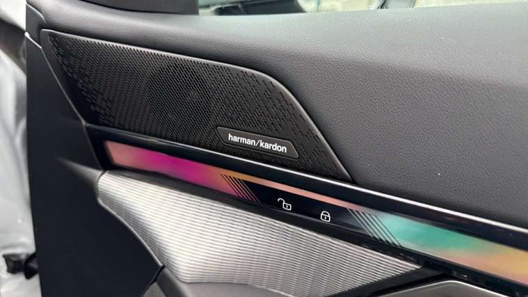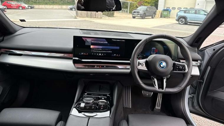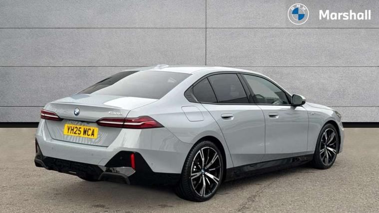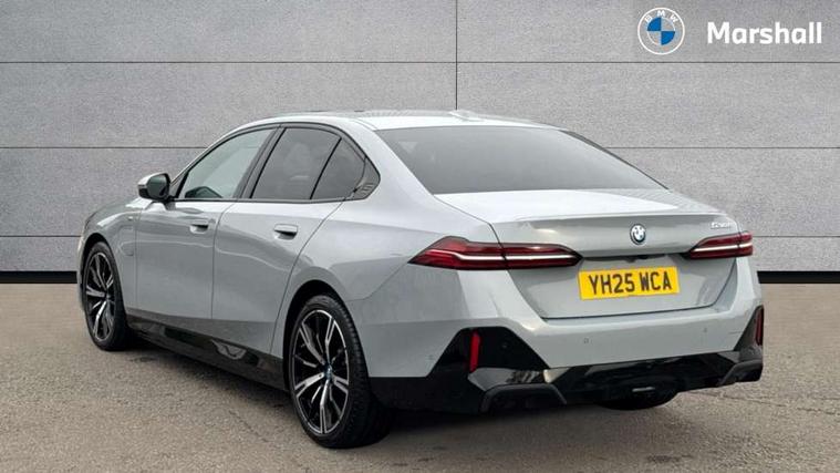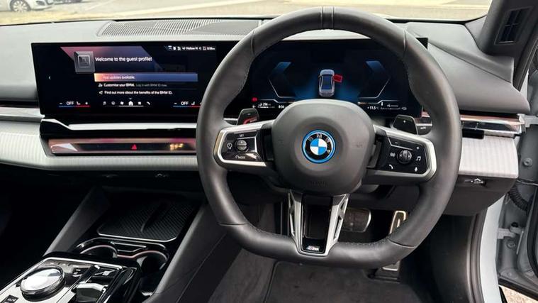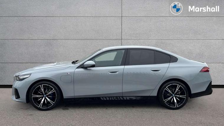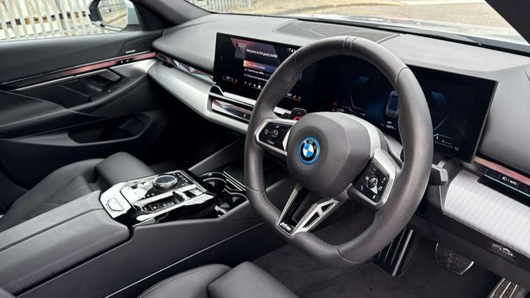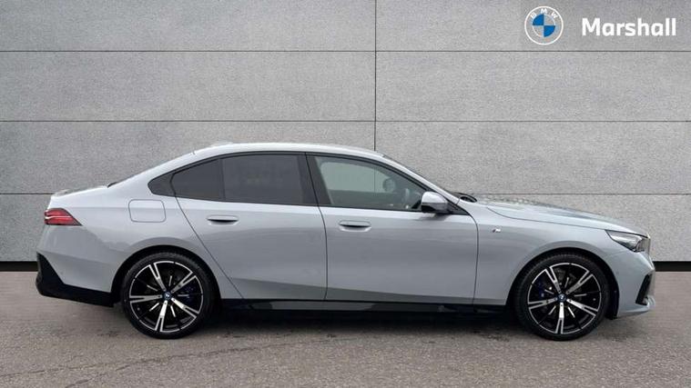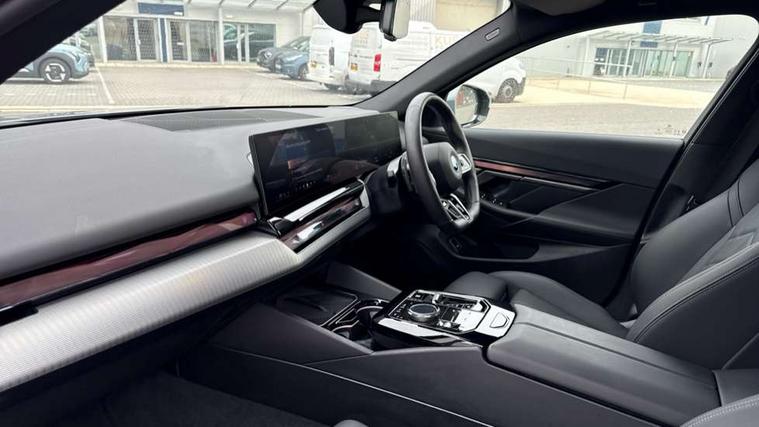 BMW ConnectedDrive online services, BMW Iconic sounds electric, BMW legal emergency call, BMW Teleservices, Brake pad wear indicator, Cruise control with brake assist, Driving Assistant Plus Preparation, Front collision warning with brake intervention, Lane departure warning with active return, Left turn warning with brake function, Multifunctional instrument panel, Oil sensor for level and grade, On board computer inc. average speed, fuel consumption, liquid crystal Info display, journey computer, outside temperature display, personal profile, On-board diagnosis - OBD, PAS, Personal e-SIM, Powered by Operating System 7.0, Run flat indicator, Service interval indicator, Speed limit Info with manual speed limit assist, Stop/start button, 8 speed automatic steptronic transmission with gearshift paddles, AC charging cable professional (mode 3) for public charging, DAB tuner, Acoustic glazing, Adaptive LED Headlights, Automatic cornering lights, Automatic windscreen wipers and automatic headlight, BMW selective beam, Body colour door handles, Body coloured bumpers, Dynamic brake lights with LED technology, Electric adjustable door mirrors, Electric front and rear windows with fingertip open/close + anti-trap facility and comfort closing function, Follow me home headlight function, Headlight elements in blue, Heated windscreen washer jets, LED daytime running lights, LED third brake light, Light colour close to that of ordinary daylight, Optimum, homogeneous illumination of the road, Rear boot, Rear side wing doors, 2 zone automatic air conditioning, 3 seat bench in 2nd row, 3 spoke leather M steering wheel in BMW M specific design with M badge, Armrest - front and rear integrated door trim, centre console includes storage compartment, rear centre includes 2 cupholders, Child seat ISOFIX attachment with rear outer seats includes top tether, Electric adjustable front sports seats, Electric adjustable steering column, Electrically adjustable lumbar support for driver and front passenger, Heated driver and front passenger seats, High-gloss black door switch cluster, power window switch and tailgate button on first and second row seat, M Anthracite headlining, M Sport pedal covers in stainless steel, Rear headrests, Single front passenger seat, Through loading system with 40/20/40 rear seat backrest split, Velour floormats, Wireless charging tray, Ambient lighting pack - 5 Series/I5, Connected package professional - 5 Series/I5, Driving assistance pack - 5 Series/I5, Expanded exterior mirror package - 5 series/I5, M high gloss shadow line pack - 5 Series/ I5, M Sport exterior styling pack - 5 Series/I5, 3 rear three point seatbelts, Active protection, Airbag deployment is controlled with respect to the intensity and scope, Anti-lock braking system (ABS), Brake assist, Brake energy regeneration, Cornering brake control (CBC), Crash sensor activating central locking release, hazard warning lights, fuel cut off and interior lighting, Driver and front passenger airbags, Driver central airbag, Driver/front passenger side airbags, DSC - Dynamic Stability Control, Dynamic brake control, Dynamic Traction Control - DTC, Electromechanical parking brake with automatic drive away release and auto hold function, Electronic brake force distribution, Engine drag torque control, Front and rear brake discs with interior ventilation, Front and rear curtain airbags, Front head restraints with anti-whiplash, Head airbags for first and second row seats, Hill start assist, Locking of doors after driving off, M Sport brakes in dark blue metallic painted brake callipers with M designation, Mechanical child proof lock on rear doors, PC iBrake PostCrash approach control warning with light braking function, Side impact protection, Trailer stability control, Two tone horn, Tyre pressure monitoring system, Warning triangle and first aid kit, Alarm system, Locking wheel bolts including wheel bolt adapter, Tyre repair kit plus,