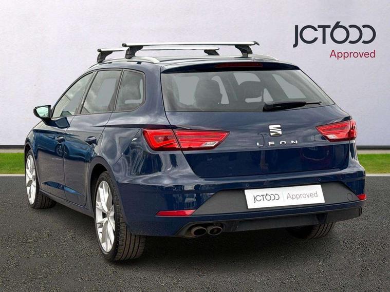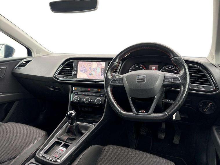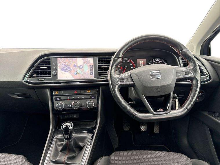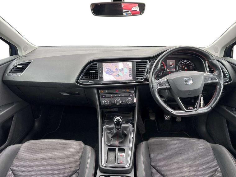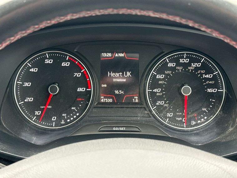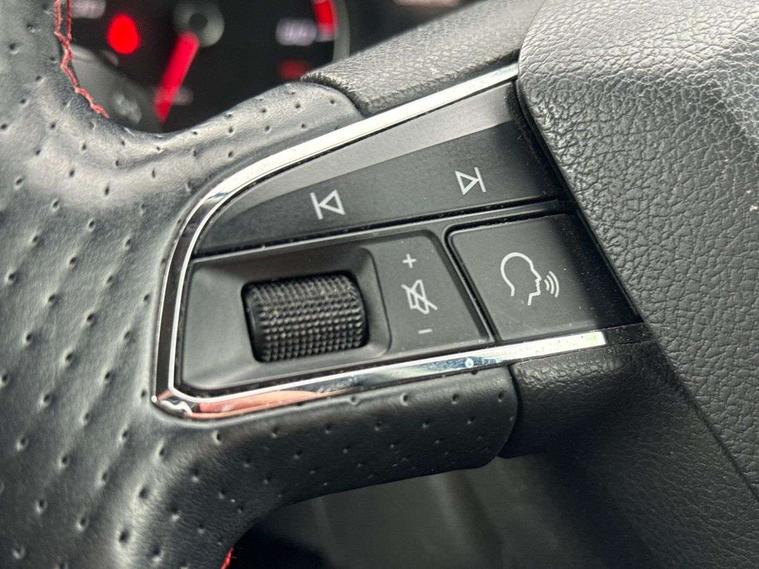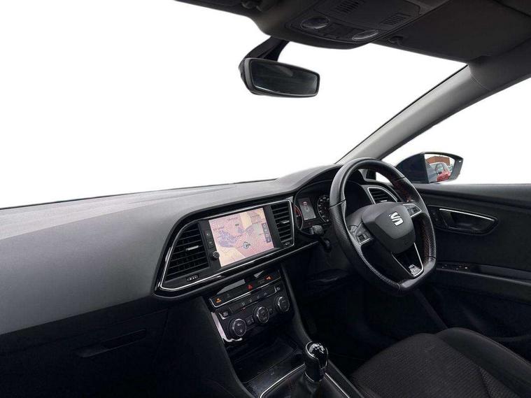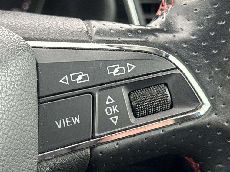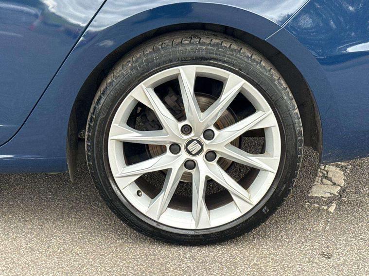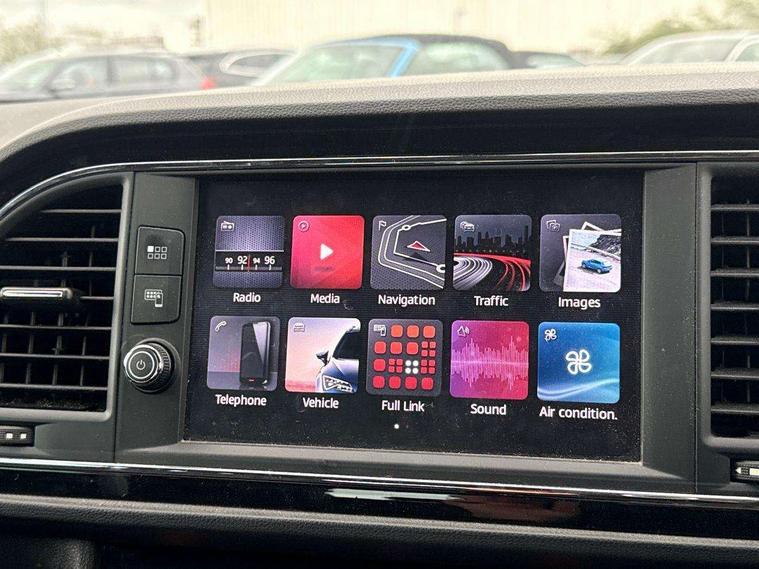 'Lights On' Reminder warning buzzer, 8" touch screen, Bluetooth Handsfree Phone Connection, Low fuel warning light, Outside temperature gauge, Rear parking sensors, Remote fuel flap release, SEAT Drive profile, SEAT logo boot release, Service interval indicator, Touch screen display, Trip computer, Voice control system, XDS electronic differential lock, 2 USB ports, 2 USB sockets in rear, 2x SD card slot, Auxiliary input socket, Bluetooth audio streaming, DAB Digital radio, Radio/CD + MP3, Steering wheel mounted audio/phone controls, Aluminium front door sills, Black grille with chrome surround, Body colour door handles, Body coloured bumpers, Body coloured door mirrors, Dark tinted rear windows, Electric adjustable/heated/folding door mirrors, Electric front/rear windows with one touch/auto up/down, Electric headlamp adjustment, High gloss black finish B and C pillars, LED daytime running lights, LED front fog lights, LED Headlights, LED indicators in door mirrors, LED number plate light, LED tail lights, Rear wash/wipe, Reverse activated kerb-view adjustment on passenger's door mirror, Twin exhaust pipes, 12v power point in centre console, 3 height adjustable rear headrests, 60/40 split folding rear seat, Active head restraints, Additional heating and ventilation outlet in rear of centre console, Boot net, Chrome loading sill, Driver seat lumbar adjustment, Driver/passenger sunvisors with illuminated vanity mirrors, Dual zone climate control, Dust/pollen filter, Front adjustable head restraints, Front armrest with storage box, Front cupholders x 2, Front map reading lights, Front seat and rear pockets, Front sports seats, Front/rear floor mats, Height/reach adjust steering wheel, Illuminated door sills, Illuminated glovebox, Instrument lighting with brightness control, Leather handbrake, Luggage compartment cover, Luggage tie-down hooks, Passenger seat height adjuster, Passenger seat lumbar adjust, Perforated leather steering wheel with red stitching + gear knob, Rear reading lights, Rear top tether child seat ISOFIX attachment, Rear window curtains, Storage boxes under front seats, 3 point seatbelts on all rear seats, ABS + traction control, Child proof door locks, Collision mitigation braking system, Curtain airbags, Driver/Front Passenger airbags, Drivers knee airbag, Electronic parking brake with auto hold, ESP+EBA, Front assist including city emergency braking, Front seatbelt pretensioners, Front Seatbelt warning, Front side airbags, Hill hold control, Passenger airbag deactivation system, Tyre pressure monitoring system, 2 folding remote keys with window open/close function, Engine immobiliser, Locking wheel bolts, Remote central locking + deadlocks, Volumetric alarm with back up horn, Chrome interior trim,