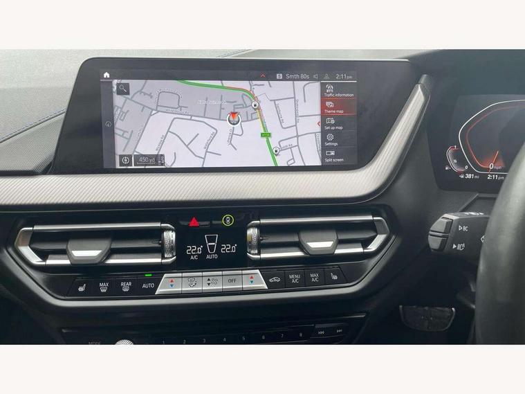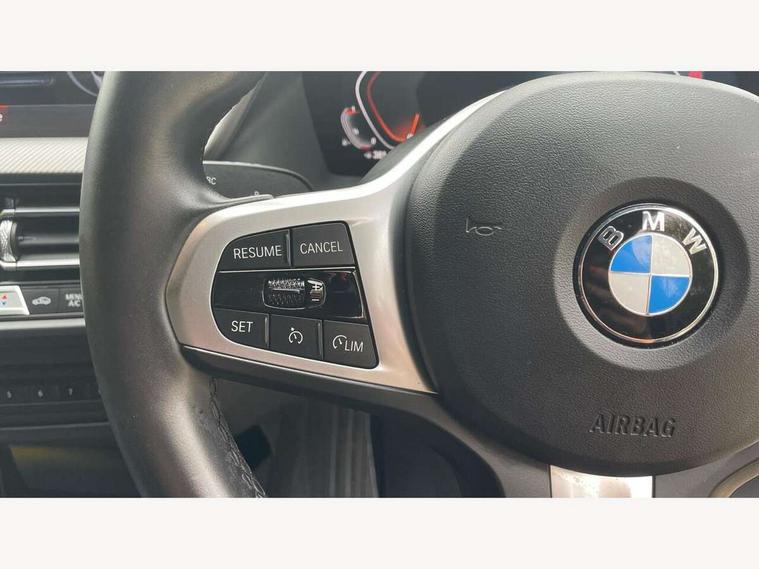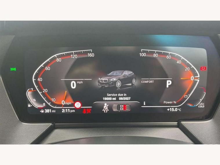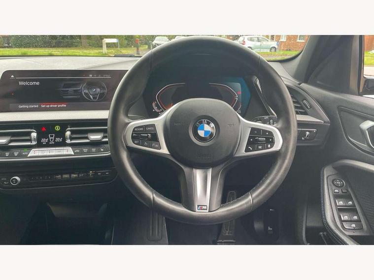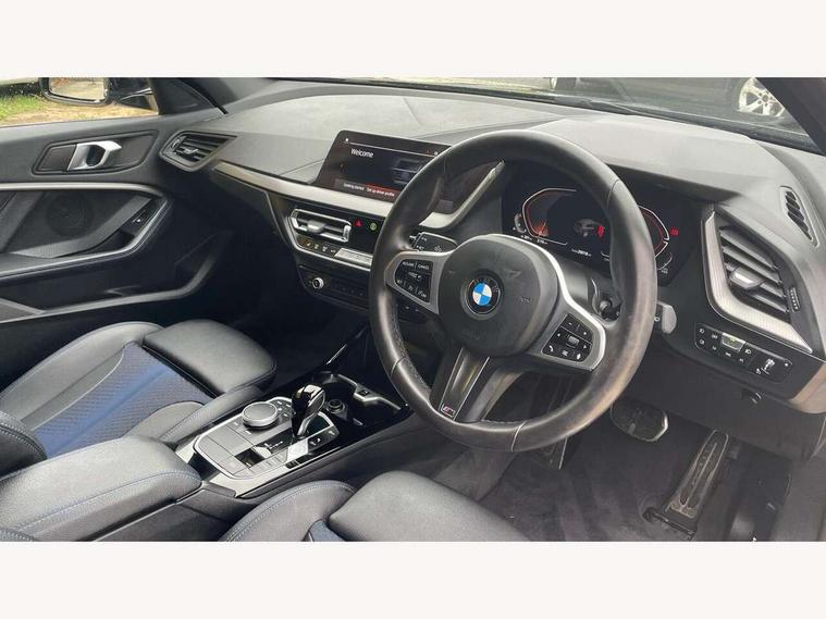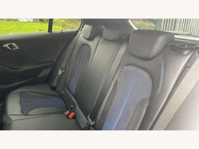 Active guard plus, Attentiveness assist, BMW ConnectedDrive online services, BMW Teleservices, Check Control warning system for monitoring of lights and door/luggage compartment open warning, Cruise control with speed limiter, Eco pro mode, Front axle single joint with specific axle kinematics to minimise drive influences on steering + provide increased rigidity agile driving behaviour, Integrated owners handbook, Lane departure warning system, Oil sensor for level and grade, On board computer, Optimum shift indicator, Personal Profile, Pull away assistant, Rigidly mounted rear subframe - Multi link construction with separate spring / damper configuration and excellent driving characteristics, Speed limit Info including no-overtaking indicator, Aluminium lightweight construction, Anti roll bar front and rear, Balancer shaft, Double VANOS twin scroll turbocharging system, Drive Performance Control, Electronic differential lock, High precision injection, M sport suspension, Petrol Particulate Filter, Twin tube gas filled shock absorbers with degressive characteristic curve, VALVETRONIC engine management, DAB Digital radio, Auto dimming rear view mirror, Automatic headlight beam throw control, Automatic windscreen wipers and automatic headlight, Body colour door handles, Body colour mirror caps, Body colour roof trims, Chrome 'M' logo side designation, Chrome exhaust twin tailpipes round 90mm in left, Chrome kidney grille frame with Satin Aluminium struts, Direction indicator side lights in exterior mirrors, Electrically adjustable exterior mirror with mirror adjustment switch on drivers armrest and aspheric on driver side, convex on passenger side, Fading support, Folding side mirrors with auto dimming/folding wing mirrors with auto dimming, Follow me home headlights, Front and rear bumper system with replaceable deformation elements, Front and rear electric windows with open and close fingertip control, anti trap facility and comfort closing, Front door sill finishers in black plastic with M designation in metallic look, Green tinted heat protection glazing, High gloss shadowline window frame, Recess cover mirror frames and B/C pillar embelisher trim, High level third brake light, Integrated front windscreen with washer jets, LED daytime running lights, LED eyebrow turn indicators, LED front fog lights, Lightweight engineering, Matt black air guide grilles, Matt black wheel arch trim, Model designation on electric bootlid, Nearside reverse light in rear light cluster, Preparation for high beam assistant, Rear fog lights, Rear side wing doors, Rear window wiper, Shark fin antenna, Trailer stabilisation logic, Visible VIN plate, Welcome lighting, 12V power socket in front centre console with blanking plug, 3 rear seat head restraints, 3 seat bench in 2nd row, 3 spoke sports leather steering wheel with black leather and stitching, pearl chrome decorative finish, specific M Badge, Anthracite headlining, Black boot net with lashing eyes, Cargo function on 2nd seat row, Child seat ISOFIX attachment for two outer rear seats and front passenger seat with anchorage points, Conditioned based service, Driver and front passenger backrest net on rear, Driver and front passenger seat heating, Driver side folding compartment in instrument panel, Folding rear clothes hook, Four grab handles integrated in roof lining, Front and rear door pockets with bottle holders, Front and rear side armrest integrated into door trim, Front armrest, Front sports seats, Glove compartment, Height adjustable front head restraints, Luggage compartment for bag hooks on left and right, foldable luggage compartment liner and four lashing eyelets, Manual adjust steering wheel, Multi-function controls for steering wheel, Single front passenger seat, Storage compartment in centre console, Storage compartment in luggage compartment, Stowage of the parcel shelf in luggage compartment trim, Sun visors with vanity mirrors and insert tab, Two front centre console cupholders, Two zone automatic air conditioning, Type C two USB ports in rear centre console, Velour floor mats, Additional interior lighting pack - 1 Series, BMW live cockpit professional pack- 1 Series, Connected pack professional - 1 Series, Interior lights pack - 1 Series, M Sport exterior styling aerodynamics pack - 1 Series, 2 tone horn, 3 point seatbelts on all seats, front pyrotechnic belt tensioners, stopper and belt force limiters, rear coded belt buckles, Airbags - Front driver/passenger, front and rear curtain head protection, front side, manual deactivation of front passenger airbag, Anti lock braking system (ABS) with brake assist, BMW emergency call, Brake drying, Braking readiness, Child proof locking system in rear door, City braking function, Comfort modes, Cornering brake control, Crash sensor activating of airbags, Unlocking doors, hazard warning lights, fuel cut off, interior lighting+activation of safety battery terminal clamp, Driver and front passenger seat belt security check, Dynamic stability control + (DSC+), Dynamic Traction Control - DTC, Electrically operated hand brake including automatic hold function, Front and rear disc brakes, Seatbelt warning, Side impact protection, Tyre pressure monitoring system, Warning triangle and first aid kit, Central locking switch for all doors, fuel filler cap and luggage compartment, Deadlocking function system to all doors, Drive away locking system on all doors and luggage compartment with de-activated in iDrive settings, Locking wheel bolts, Remote control with integrated key with High-gloss Black inlay and M designation and 1 button for open/ close lock, window, open luggage compartment, Start/stop button illuminated in centre console with keyless engine start and auto start stop deactivation button, Thatcham Cat.1 alarm and immobiliser, Wheel slip limitation close to the actuator (ARB), Contrast stitching on instrument panel, 18" Burnished M double spoke bi-colour alloy wheels finished in orbit grey - styl