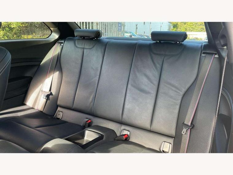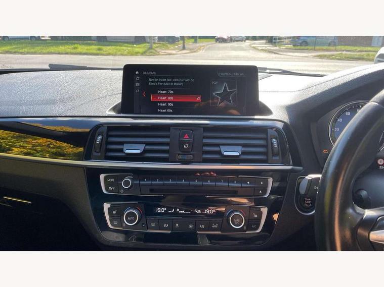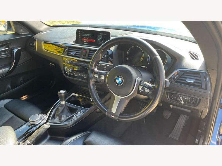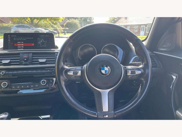 Apple CarPlay preparation, Auto start-stop, BMW ConnectedDrive, BMW Online services, BMW remote services, BMW Teleservices, Door/boot open warning, Front and rear Brake pad wear indicator, Instrument cluster with speedometer with miles per hour read out, tachometer and fuel gauge, Lights on warning by audio warning signal when ignition is switched off, Oil temperature display via on board computer in instrument cluster, On board computer - average speed+fuel consumption, service interval, clock/date, odometer/trip meter, outside temperature display and ice warning, Optimum shift indicator, Personal Profile - automatic lock when driving away selectable, Real time traffic information, Speed limiting function, Traffic message channel (TMC), Aluminium lightweight construction including crankcase, Battery age recognition function, Diesel particulate filter, Double VANOS, Drive performance control - ECO PRO, comfort, sport and sport+ modes, Engine cover with BMW roundel twin power turbo designation, High precision direct injection, Oil dipstick, Single twin scroll turbo charger, VALVETRONIC engine management, DAB Digital radio, 2 speed adjustable intermittent wipers with wash/wipe function, Air intake in gloss black, Automatic headlight beam throw control, Automatically dimming rear view mirror, Body colour door handles, Body colour front bumper, Body colour mirror caps, Body colour roof mouldings, Chrome exhaust single tailpipe, round, Clear lenses direction indicator lights, Darkened rear lights with LED light bars, Daytime driving lights, Direction indicator side lights integrated exterior mirrors, Dynamic brake lights, Electric windows - front and rear, with open/close fingertip control, anti-trap facility and comfort closing, Follow me home headlights, Front air inlet with high gloss black finish, Front and rear bumper system with replaceable deformation elements, Green tinted heat protection glazing, Headlight range control, Heated windscreen washer jets, Heated, electrically adjustable exterior mirror aspheric on driver side, convex on passenger side, High gloss shadow line, High level third brake light, LED front fog lights, LED welcome home lights, M aerodynamic body styling, M logo designation in chrome on left and right front wings, Model designation, Model specific design elements, Rain sensor with automatic headlight activation, Rear bumper with high gloss black finish, Rear fog lights, Rear window aerial, Reversing light in rear light cluster, Shark fin roof aerial, Visible VIN plate, 12V power socket in centre console, 12V power socket in passenger footwell, 3 spoke nappa leather steering wheel, Anthracite headlining, Conditioned based service, Front and rear side armrests integrated into door trim, Front door sill finishers with M designation, Front door storage bins, Front floor mats in velour, Front head restraints, Front sliding armrest, Front sports seats with electric side bolster adjustment, Glove box handle with chrome surround, Interior lighting, front centre over interior mirror and rear centre automatic interior light activation when door is opened, Isofix child seat for two outer rear seats, Leather gearknob, Leather handbrake lever, Luggage compartment access via BMW roundel, M designation short gear shift lever, Manually adjustment steering wheel column, Multi-function controls for steering wheel, Rear coat hooks, Rear folding head restraints, Storage compartment in rear centre console, Two cupholders with sliding cover and inlay mat, 2 rear 3 point safety belts, Active differential brake (ADB), electronic differential lock in DSC-OFF mode, Airbag - Front driver and passenger, front and rear head, front side, curtain head protection, manual deactivation of front passenger airbag possible, Anti lock braking system (ABS) with brake assist, Automatic Stability Control (ASC), BMW emergency call, Brake drying, Brake energy regeneration, Braking readiness, Cornering brake control (CBC), Crash sensor activating central locking release with hazard warning lights and interior lighting + battery safety cut-off, Dynamic brake control, Dynamic stability control + (DSC+), Dynamic Traction Control - DTC, Front pyrotechnic belt tensioners and belt force limiter, rear coaded belt buckles, Hill start assist, Rear brake discs, Seat belt security check for driver and front passenger, Side impact protection, Twin horns, Tyre pressure monitoring with 3 level warning strategy, Ventilated front disc brakes, Warning triangle and first aid kit, Central locking switch for all doors, fuel filler cap and luggage compartment, Check control system for monitoring of lights and door/luggage compartment open warning, Locking wheel bolts, Remote control including integrated key with blue insert, Start/stop button with Comfort Go keyless engine start and auto Start/stop deactivation button, Thatcham category 1 alarm + immobiliser, Reduced rolling resistance tyres,