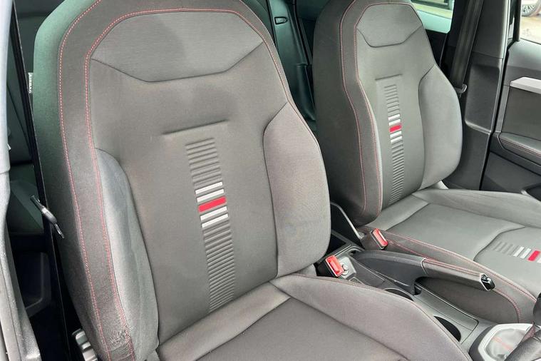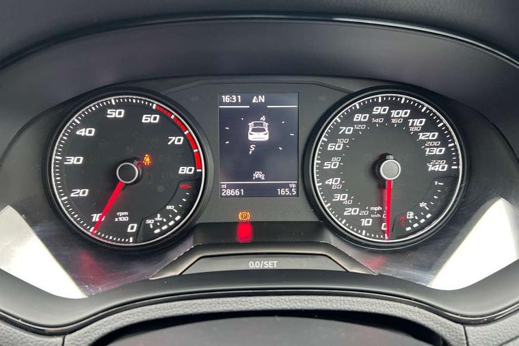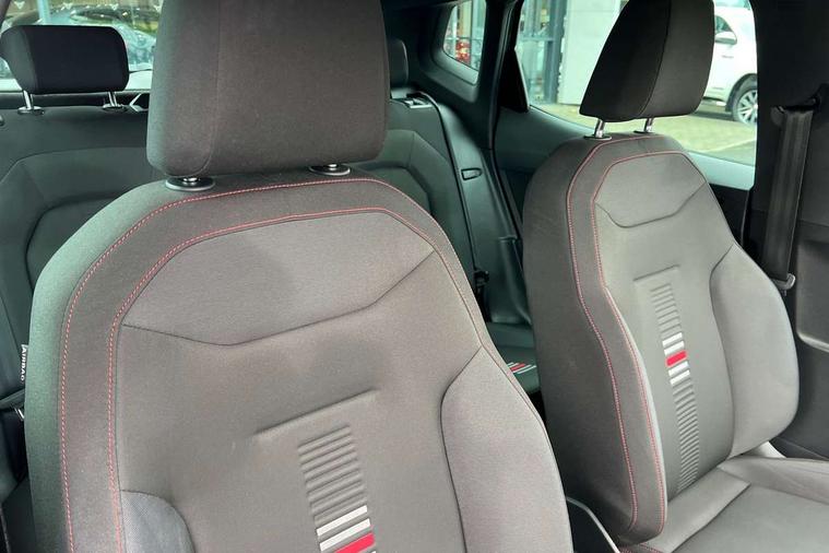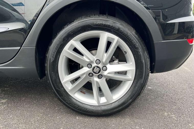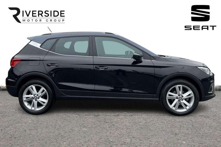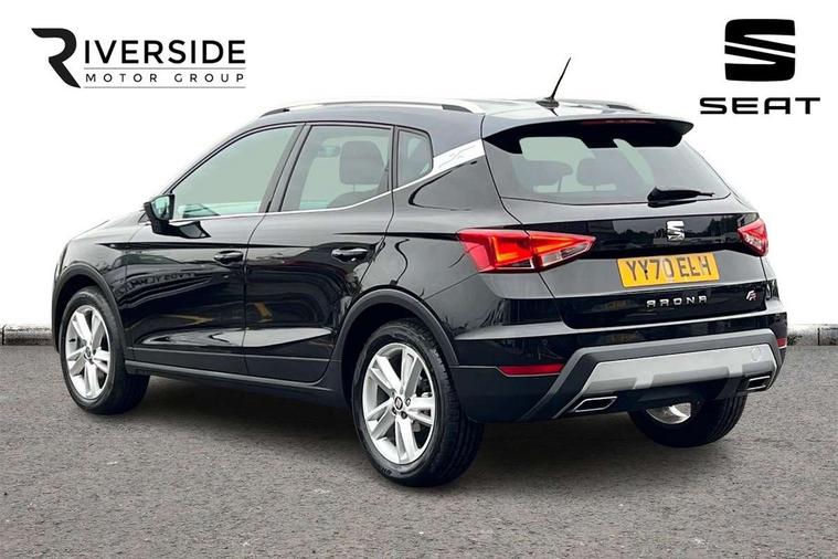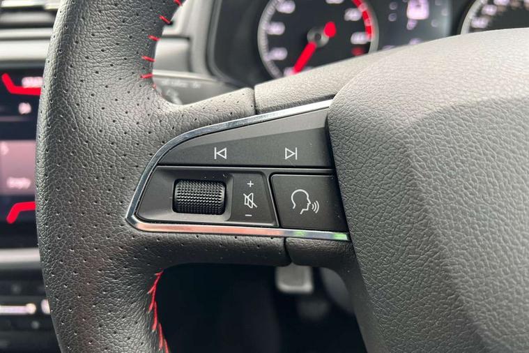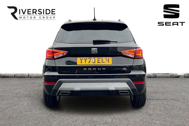 'Lights On' Reminder warning buzzer, Cruise control, Digital clock, Electric speed sensitive power steering, Full Link Smartphone Integration with Mirror Link, Apple Car Play, Google Android Auto with USB Type C cable for Apple and Android compatibility, Low fuel warning light, Outside temperature display, Rear parking sensor, RPM counter, SEAT Drive profile - Four different models normal-sport-eco-individual, steering response, throttle response, Trip computer, Sports suspension, 6 speakers, Bluetooth interface for hands free and audio streaming, DAB digital radio and AM/FM radio, Steering wheel mounted audio controls, Anti theft roof antenna, Auto dimming interior rear view mirror, Automatic activation of hazard warning lights, Automatic headlights, Body coloured bumpers, Body coloured door handle inserts, Chrome front grille frame, Chrome roof rails, Chrome window trim, Coming/leaving home lighting function, Dark tinted rear windows, Electric front/rear windows with one touch/auto up/down, Electrically adjustable, heated and folding door mirrors, Full LED headlights dipped and mainbeam + front and rear fog lights, LED daytime running lights, LED rear tail lights and licence plate lights, Rain sensing wipers, Rear window wash/wipe, Roof colour door mirrors, Twin exhaust pipe styling hidden exhaust pipe, Visible VIN plate, Windshield wiper with intermittent control and potentiometer, 2 cupholders, 60/40 split folding rear seat, Black interior roof, Double boot floor, Driver sunvisor with covered mirror + card holder, Dual zone climate control, Dust/pollen filter, Front courtesy light with front reading lights, Front sport seats, Gear shift indicator, Height adjustable front seats, Height/reach adjustable steering column, Illuminated boot, Instrument lighting with brightness control, Interior footwell lighting, ISOFIX points in outer rear seats with top tether anchorage points, Multi-colour ambient interior lighting, Nora cloth upholstery, Passenger sunvisor with vanity mirror, Perforated flat bottomed leather steering wheel/gear knob/handbrake with red stitching and FR logo, Two front and three rear height adjustable headrests, Connectivity pack plus - Arona, Interior chrome pack - Arona, 3 point seatbelts on all rear seats, ABS, Active front headrests, Child locks on rear doors, Driver and front passenger airbags with front passenger airbag de activation, front side and curtain airbags, Electronic stability control, Emergency Brake Assist (EBA) and front assist, Front and rear seatbelt reminder, Hill hold control, Multi-Collision braking, Tiredness recognition system, Traction control, Tyre pressure monitoring system, 2 folding remote keys with window open/close function, Alarm with back-up horn, Electronic engine immobiliser, Locking wheel bolts, Remote central locking + deadlocks, Tow away protection, Interior chrome line trim, Leatherette dashboard, 17" Dynamic alloy wheels,